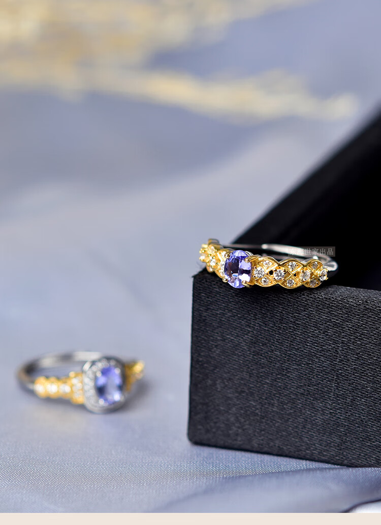 Qianjun tanzanite ring women's s925 silver niche design ring tanzanite bare stone self-discipline couple ring style 1 s925 silver tanzanite ring