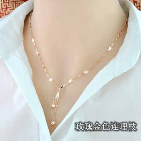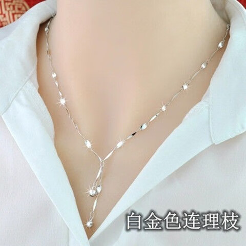Hong Kong duty-free 999 alluvial gold necklace women's 24k gold with branches temperament simple Japanese and Korean clavicle gold chain children's gold chain branch necklace