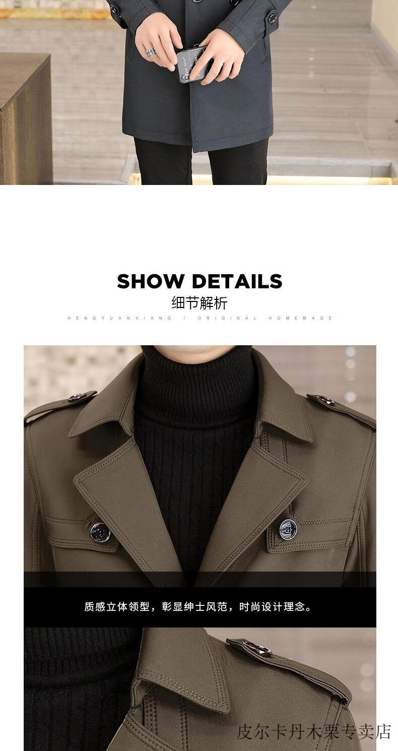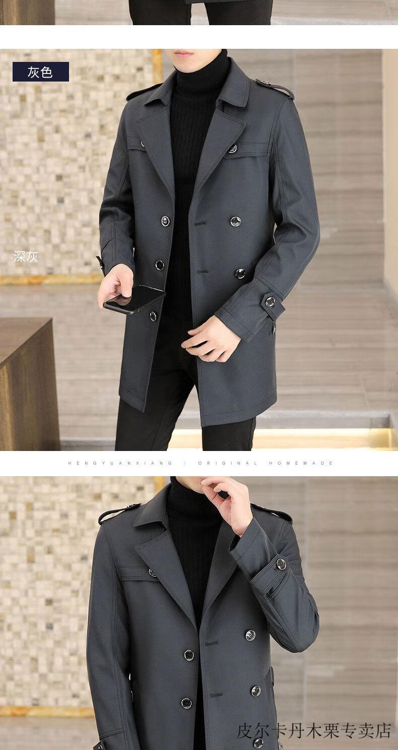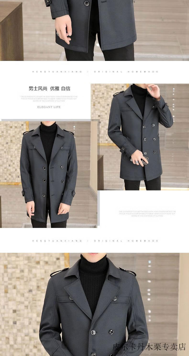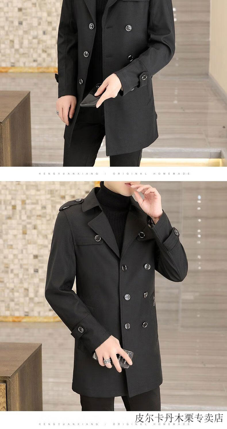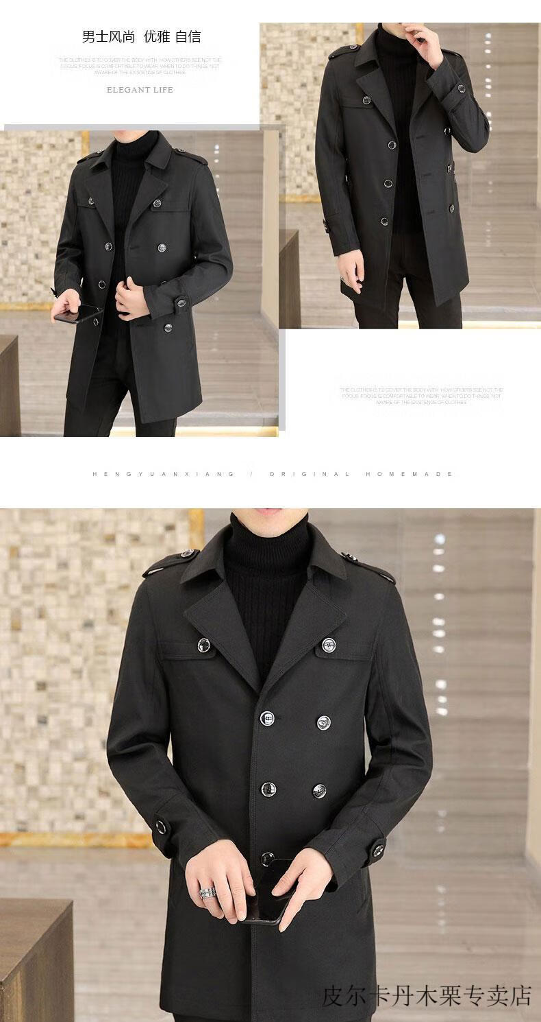 Pierre Cardin light luxury mid-length windbreaker men's coat autumn and winter 2026 new double-breasted high-end jacket men's coat 2158 black 190