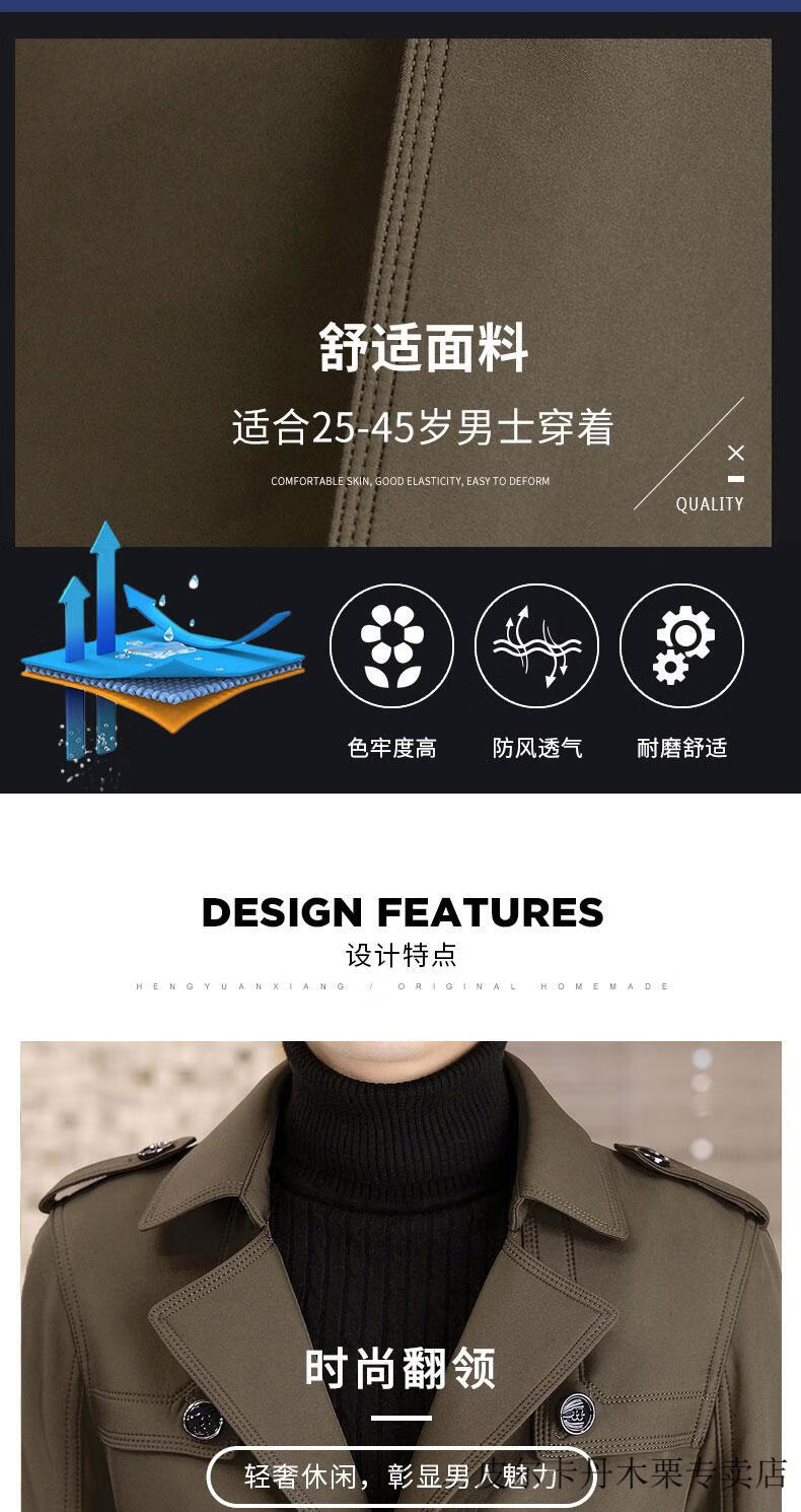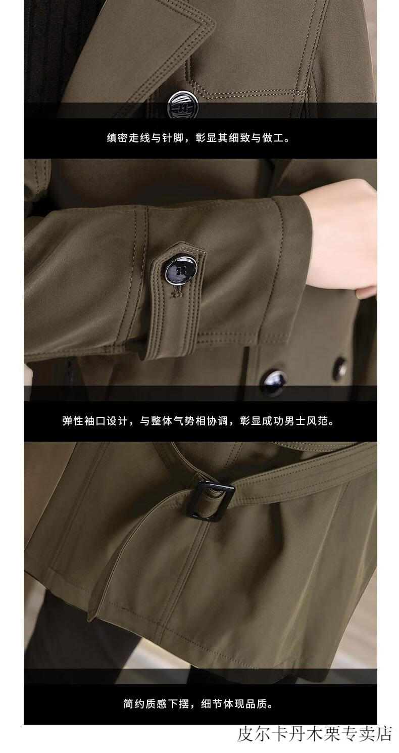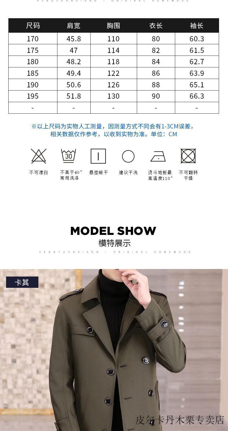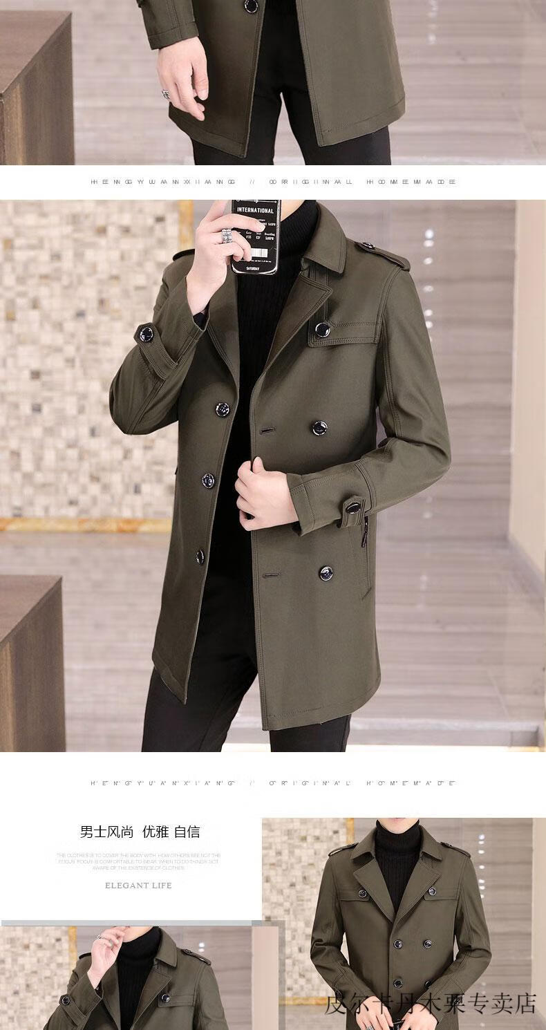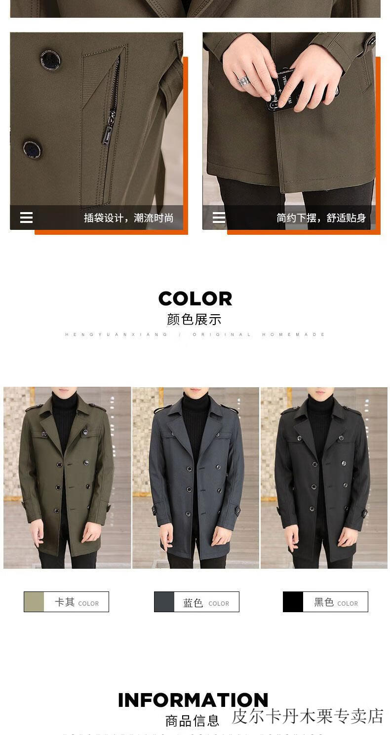 Pierre Cardin light luxury mid-length windbreaker men's coat autumn and winter 2026 new double-breasted high-end jacket men's coat 2158 black 190