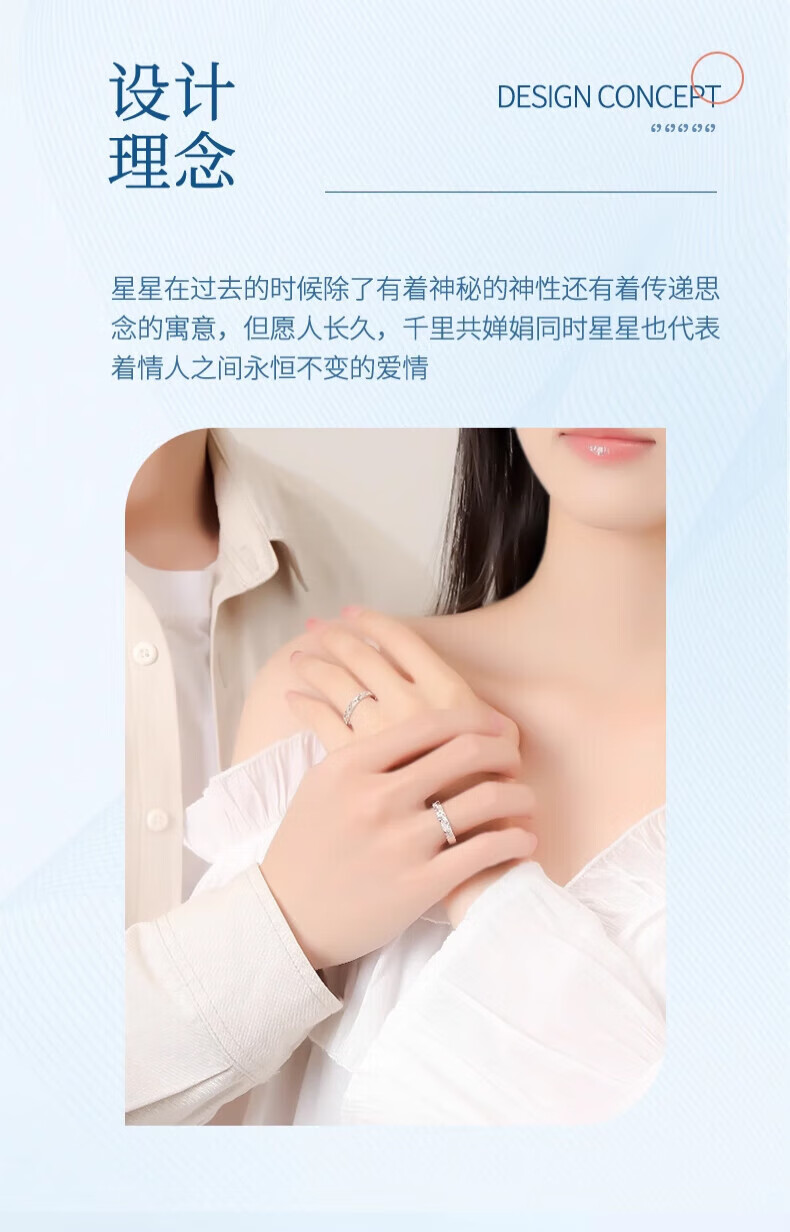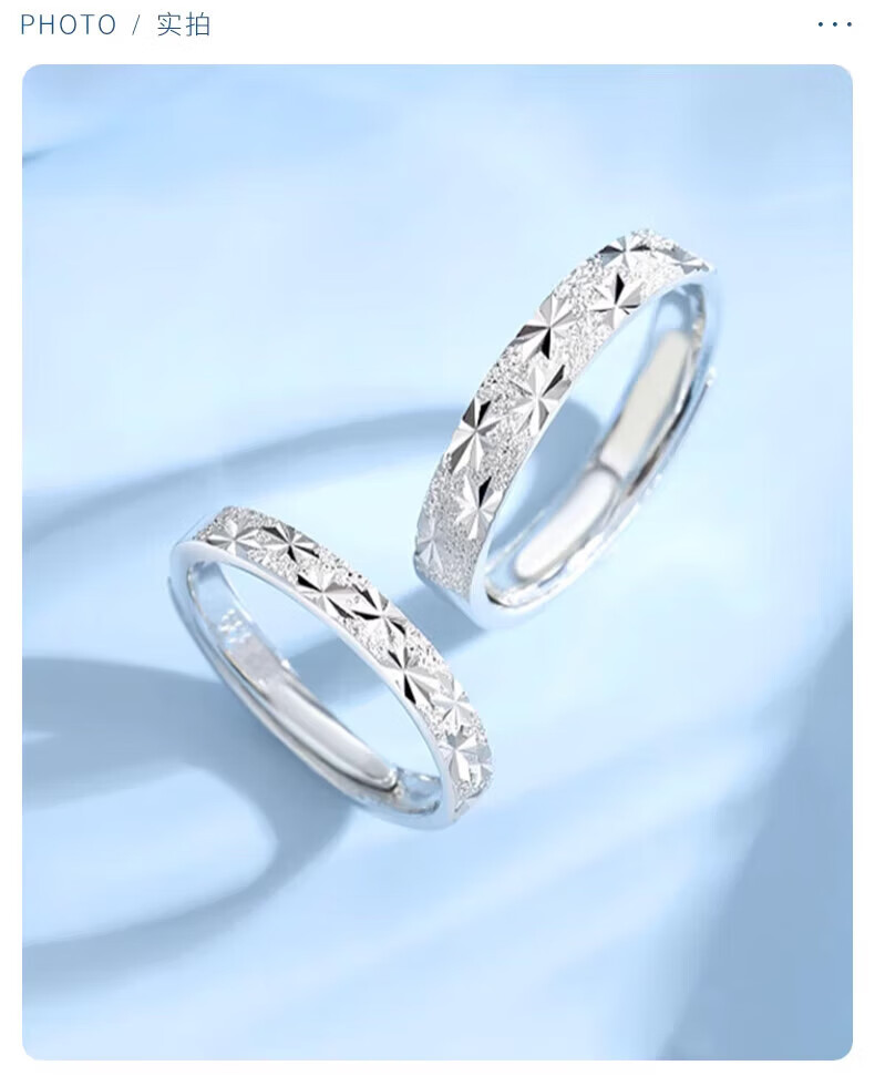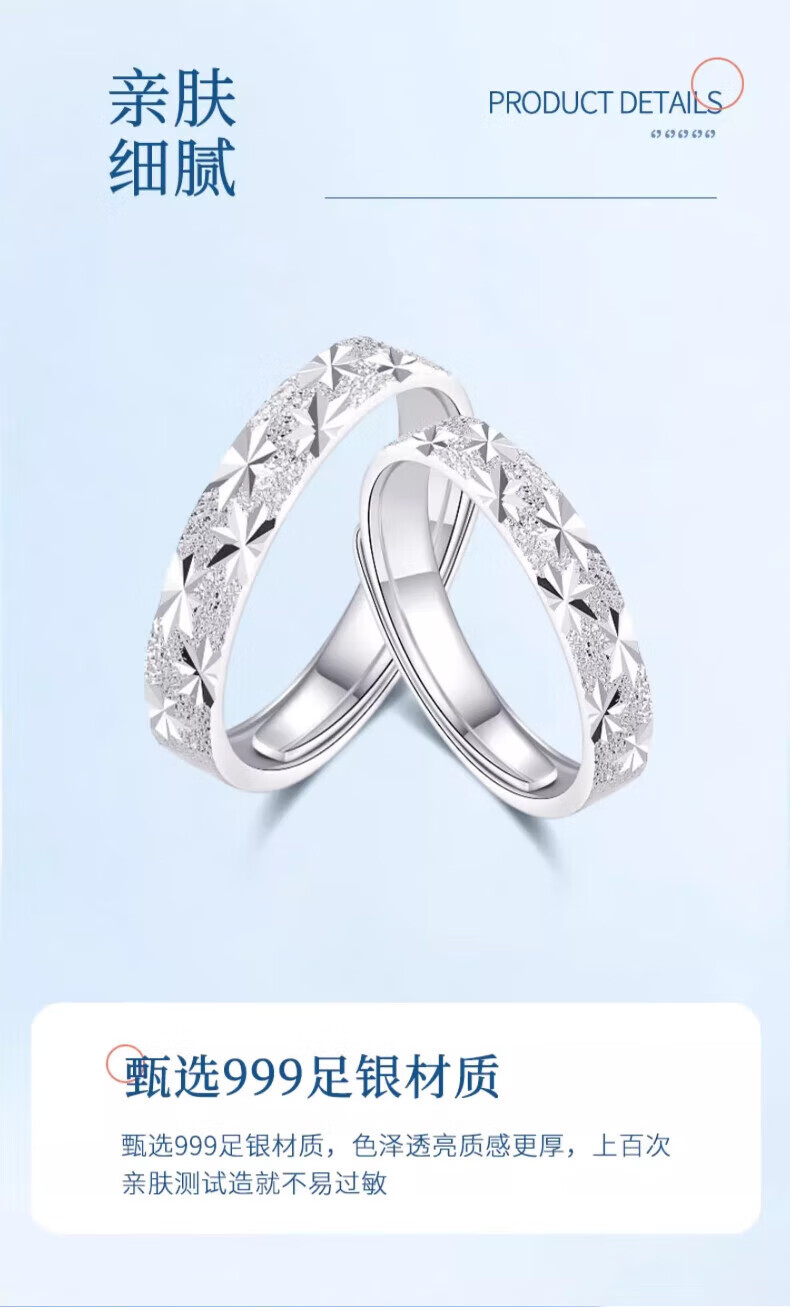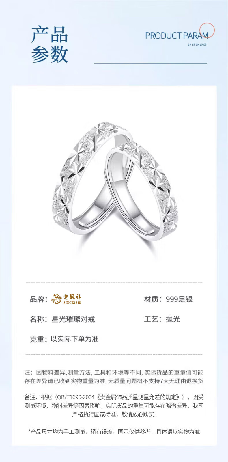 Lao Fengxiang pure silver gypsophila couple ring pair 2025 new couple ring classic anniversary birthday gift ghostwriting greeting card/engraving gypsophila couple ring