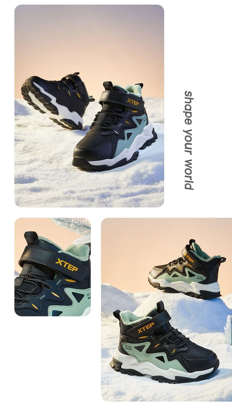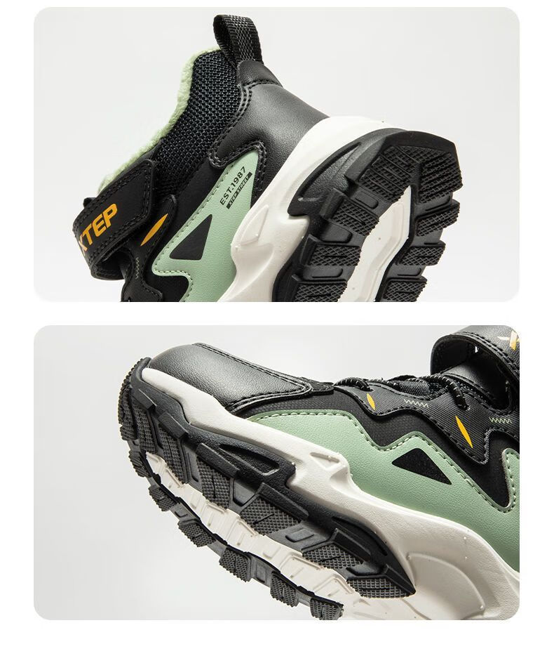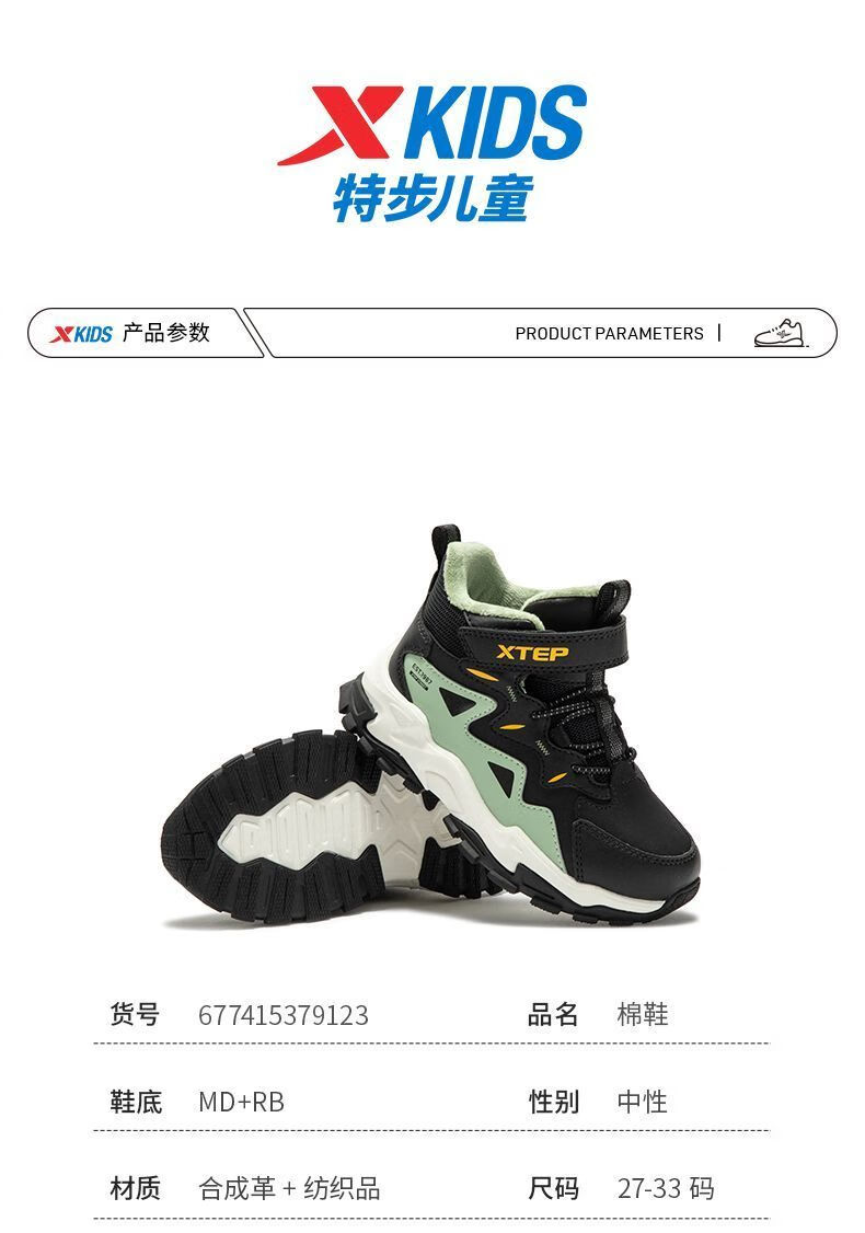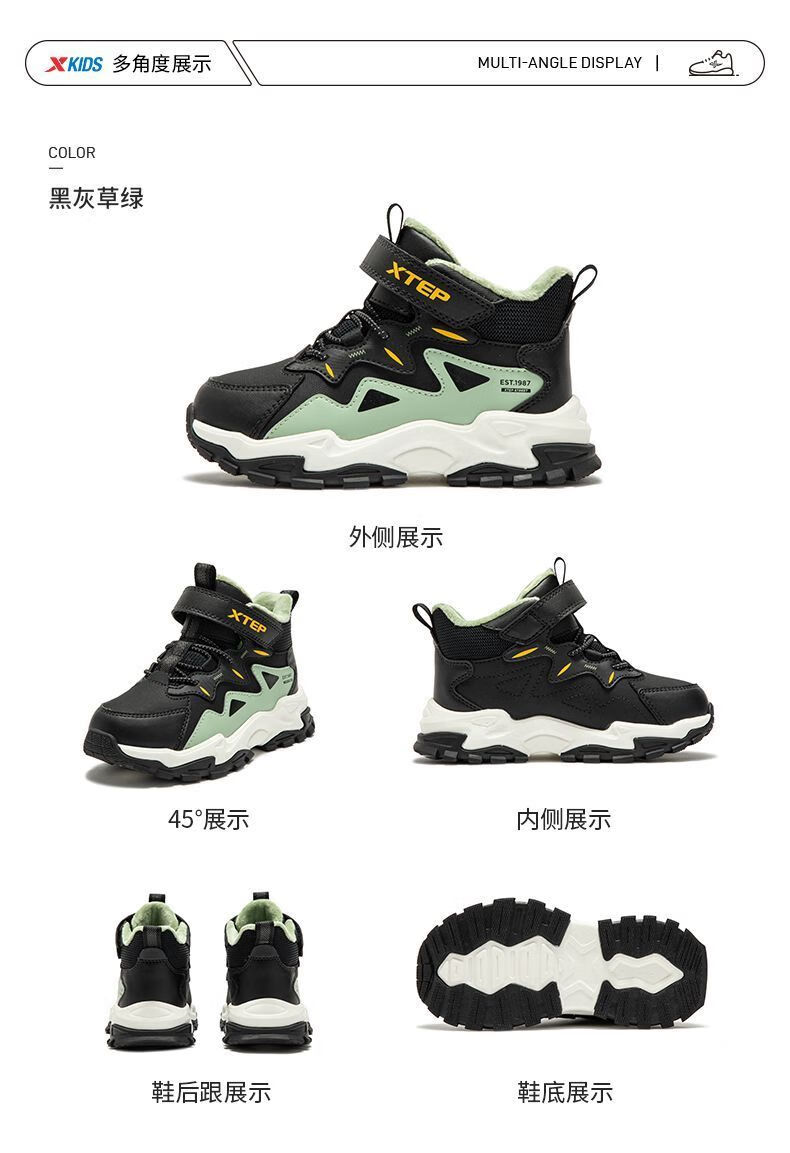 XTEP (XTEP) XTEP Children's 2025 Autumn and Winter New Children's Velvet Warm Anti-Slip Household Versatile Casual Cotton Shoes Winter Boys Fashion Black/Gray Grass Green 27