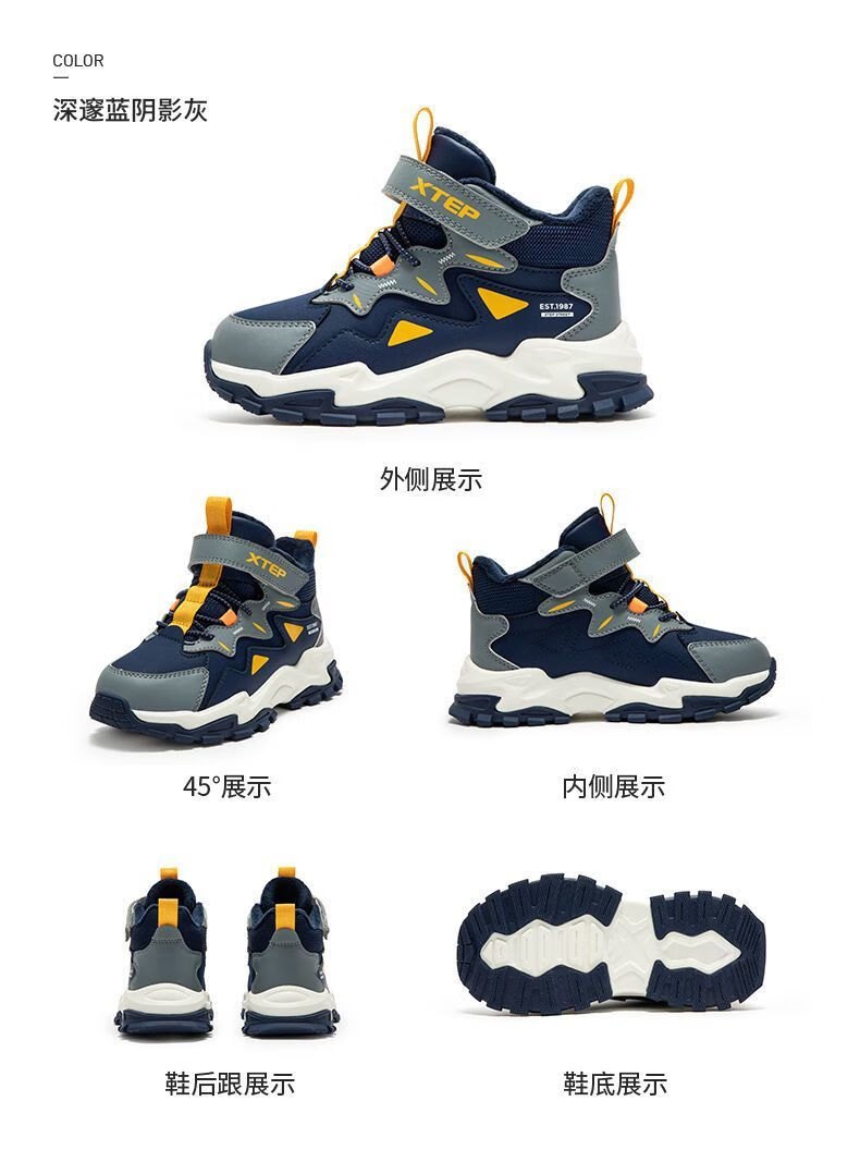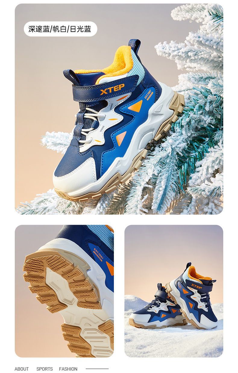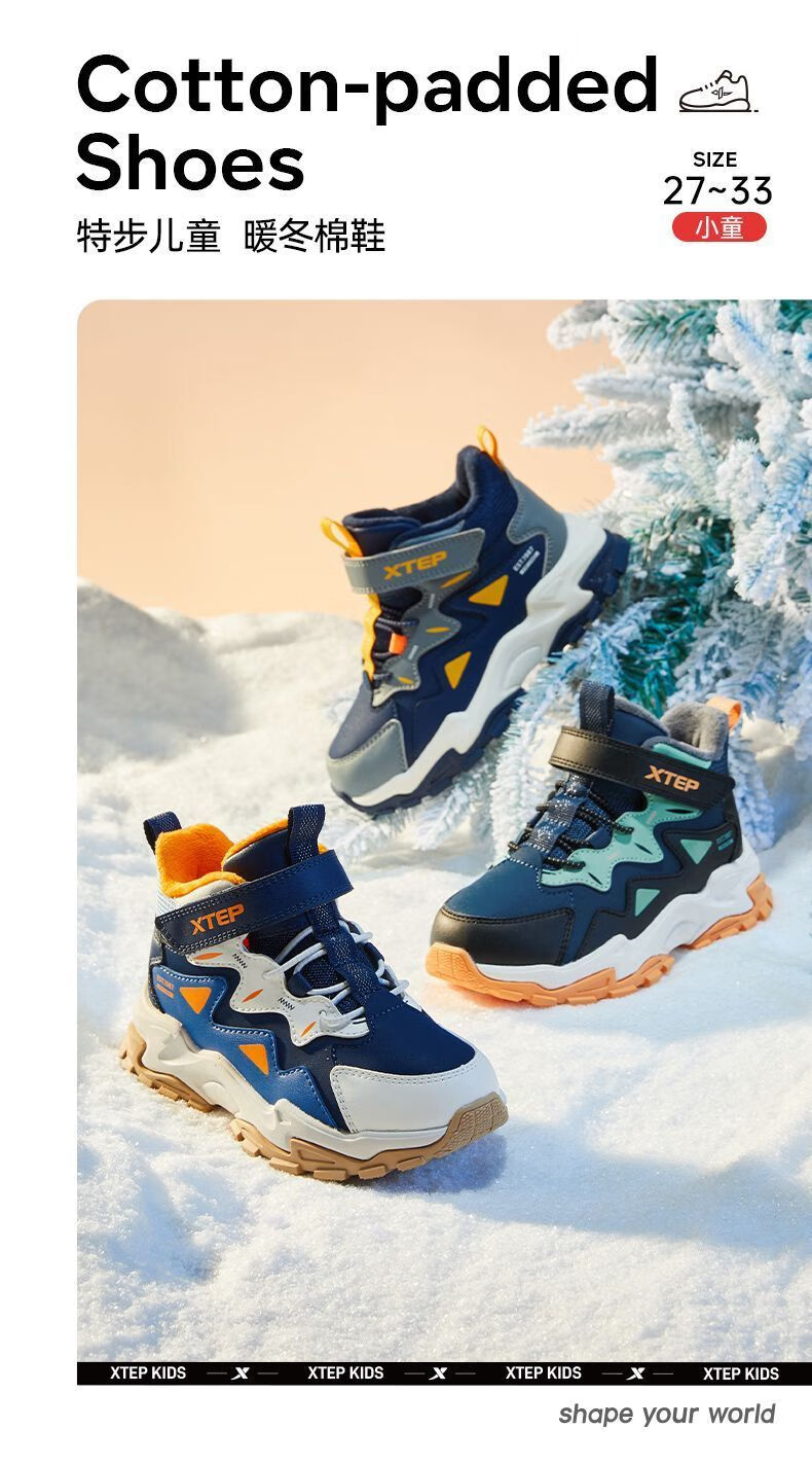 XTEP (XTEP) XTEP Children's 2025 Autumn and Winter New Children's Velvet Warm Anti-Slip Household Versatile Casual Cotton Shoes Winter Boys Fashion Black/Gray Grass Green 27