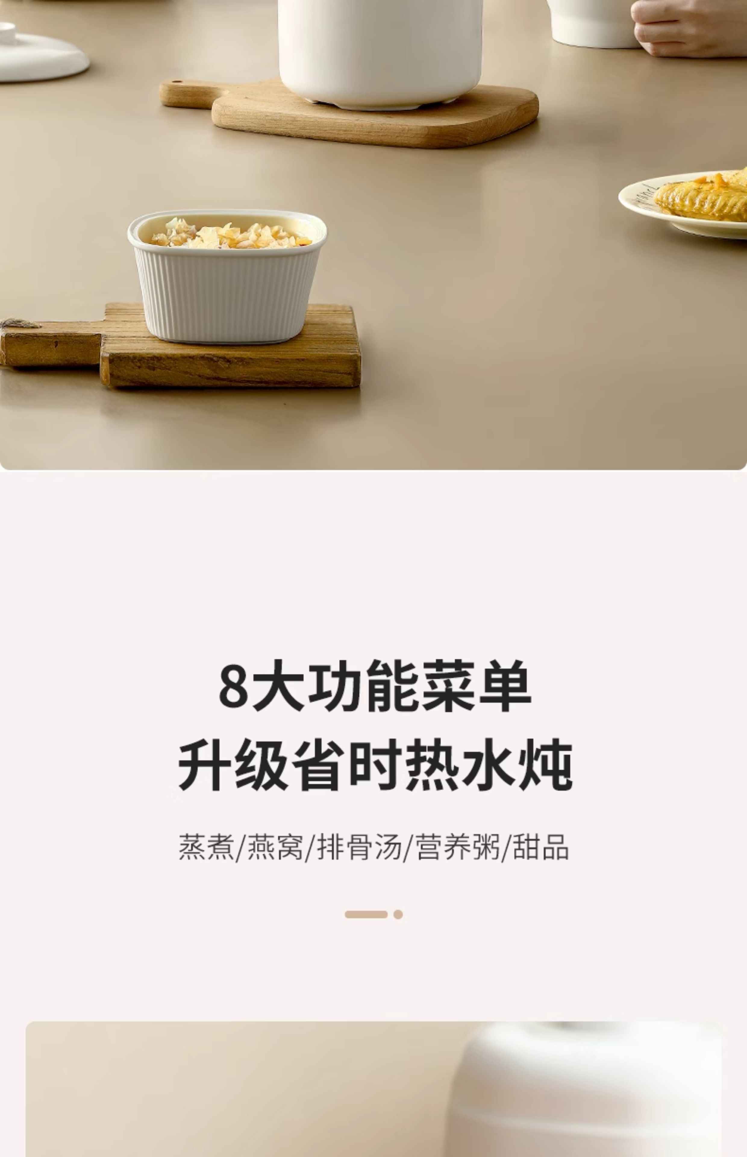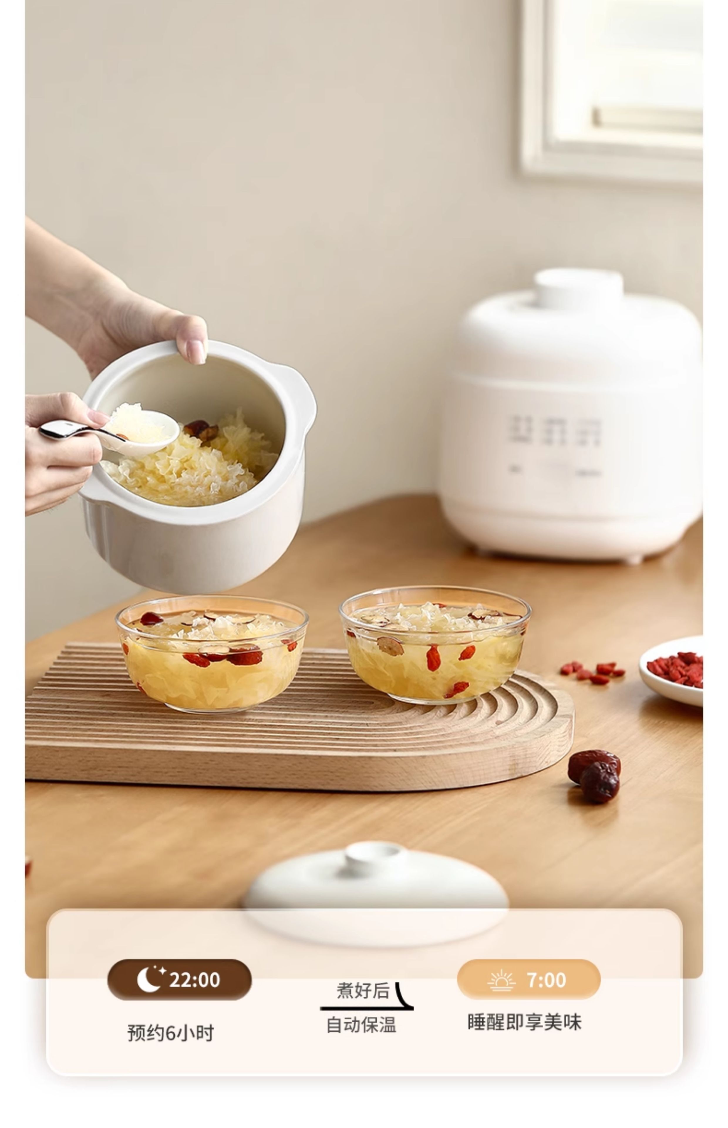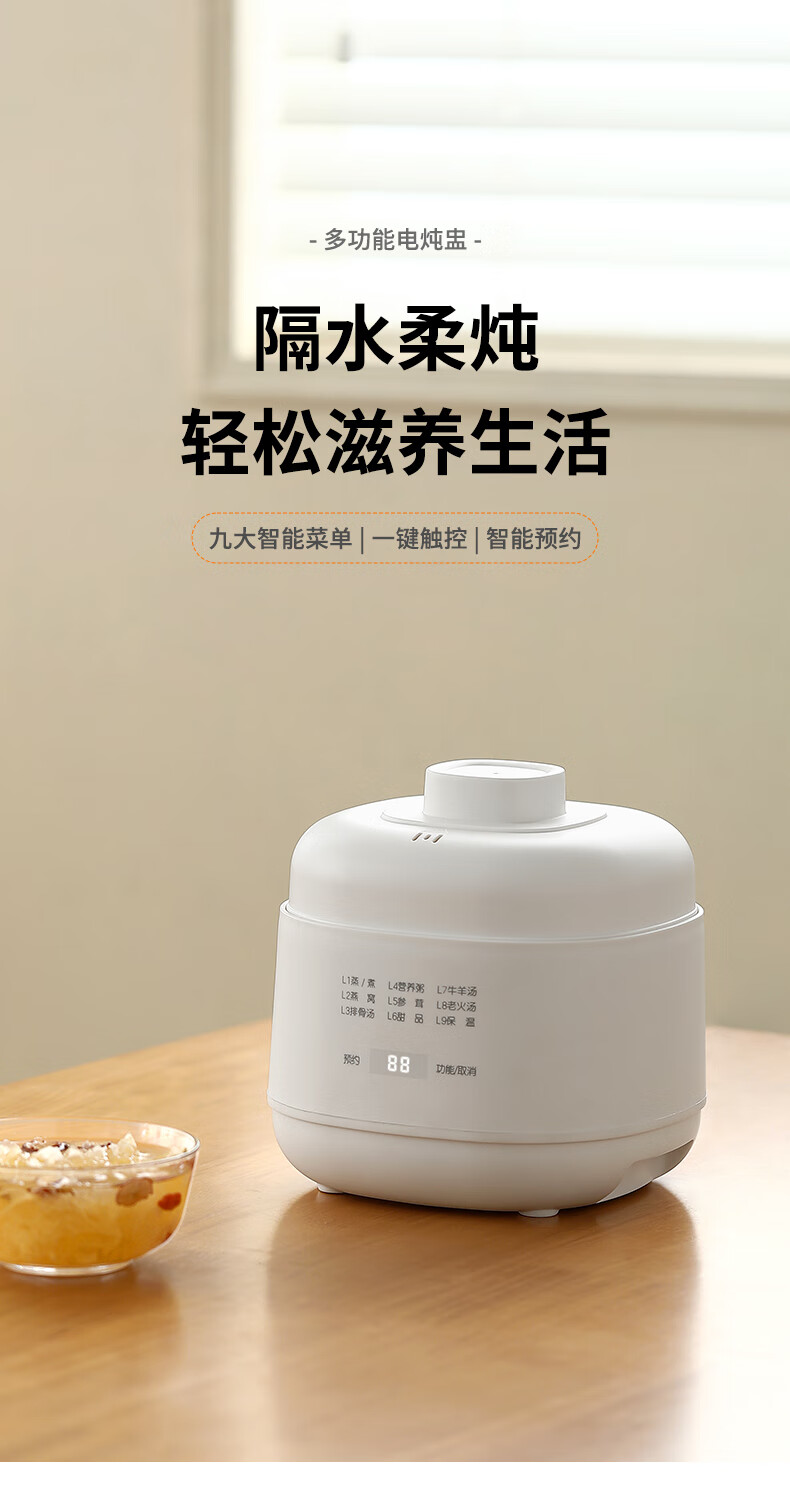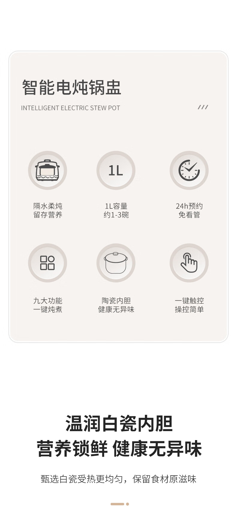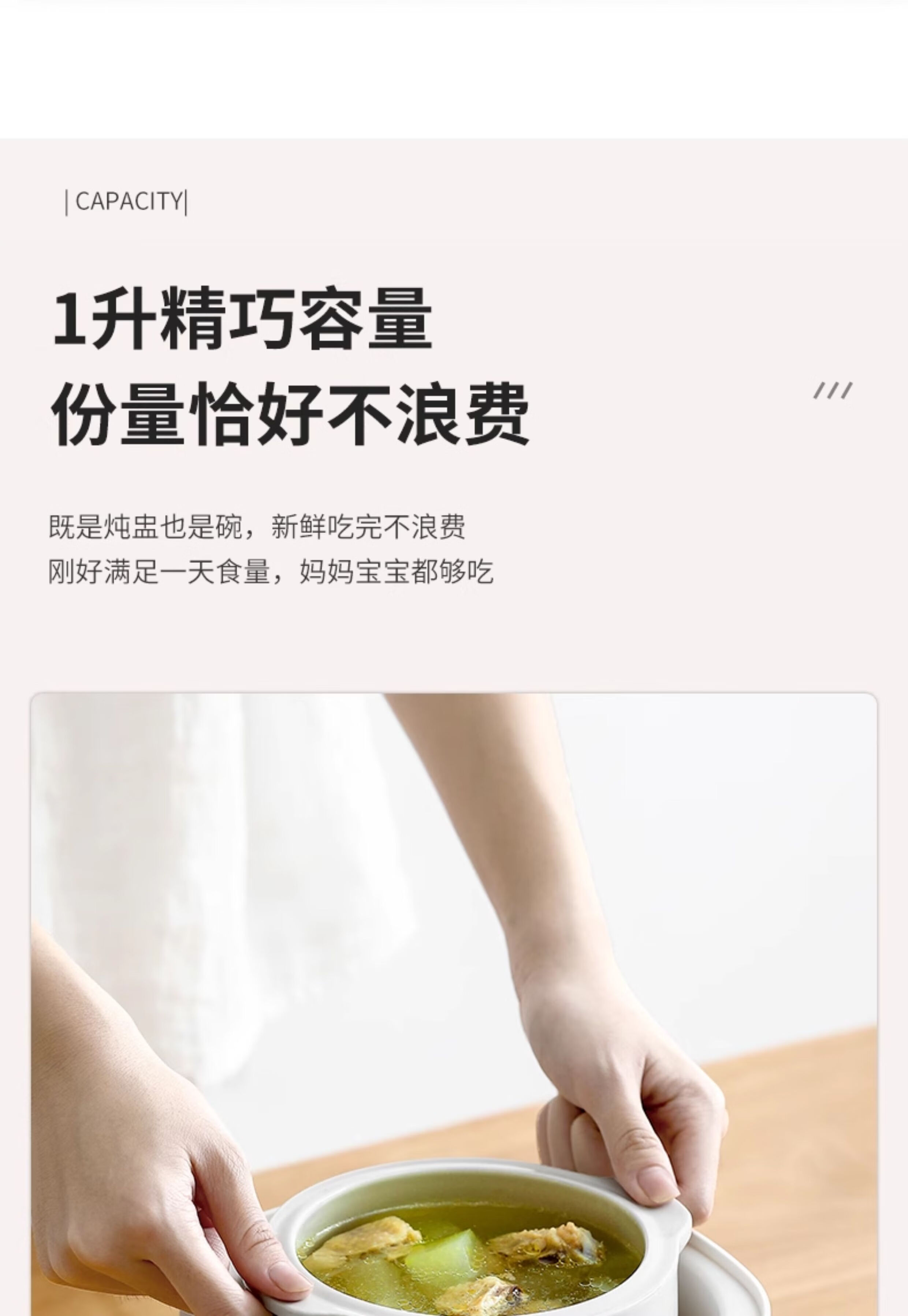 Jiuyi electric stew pot water-proof household baby food supplement pot for cooking porridge and soup bird's nest ceramic small electric stew pot white 1L