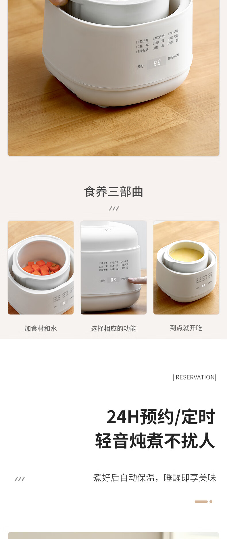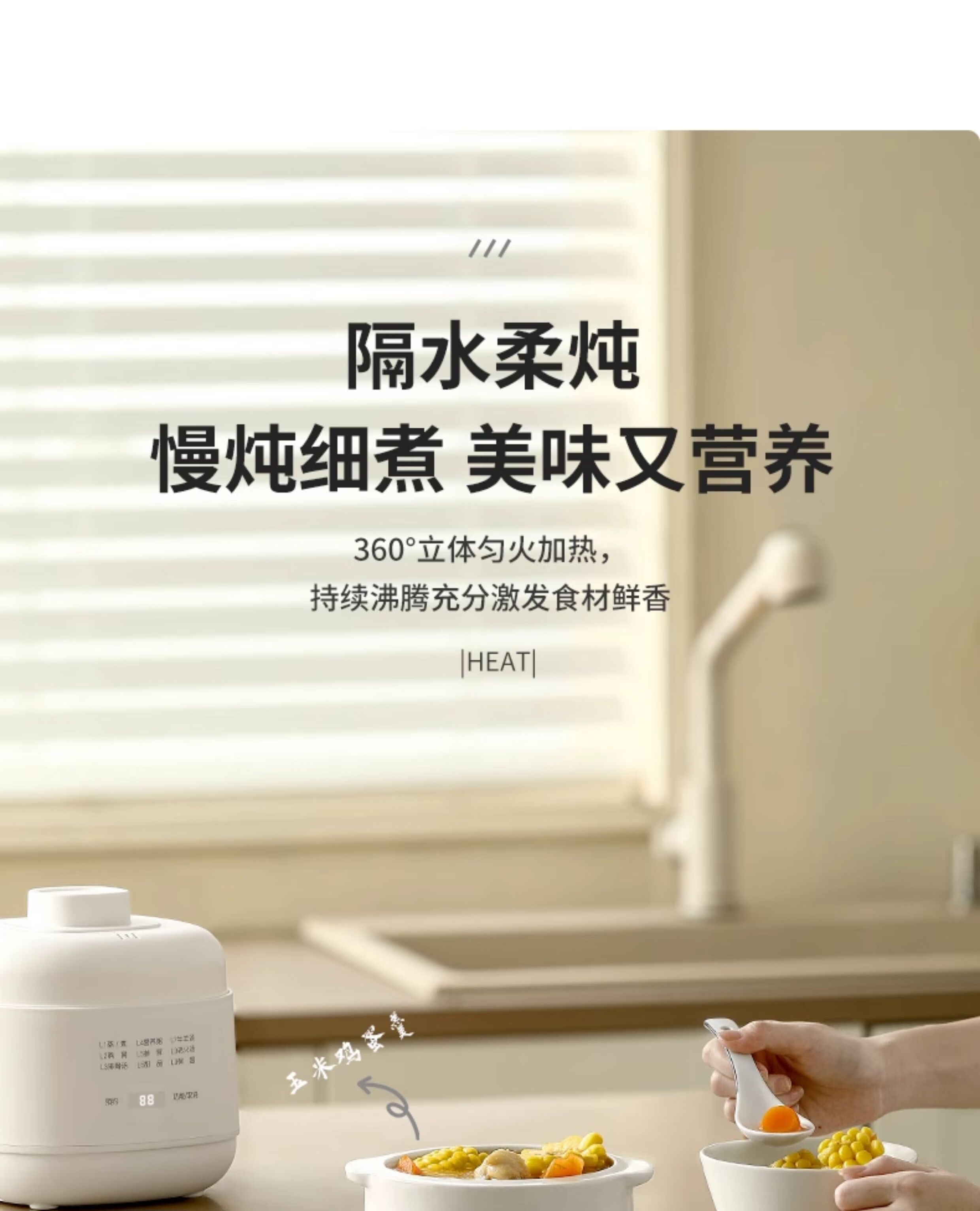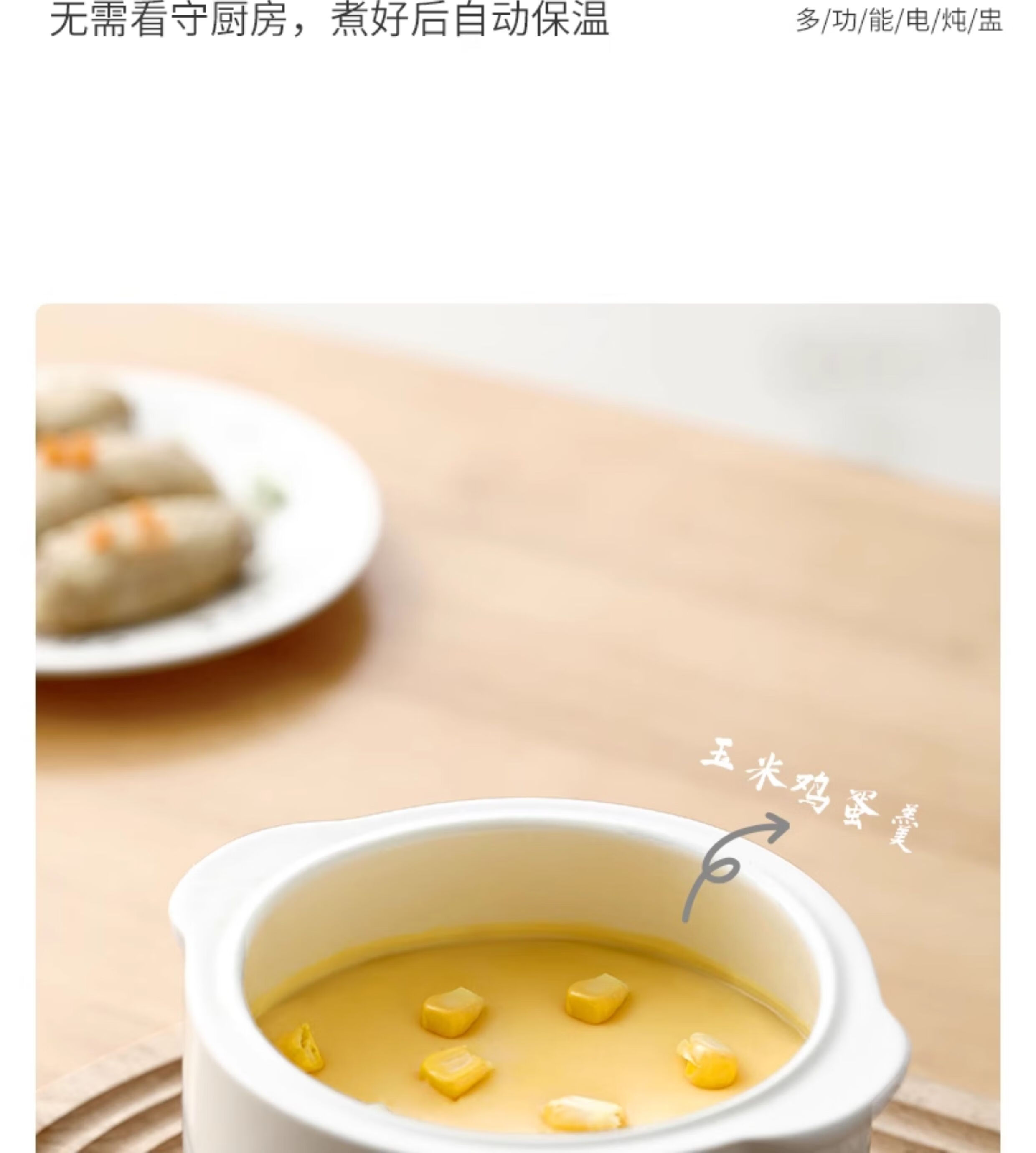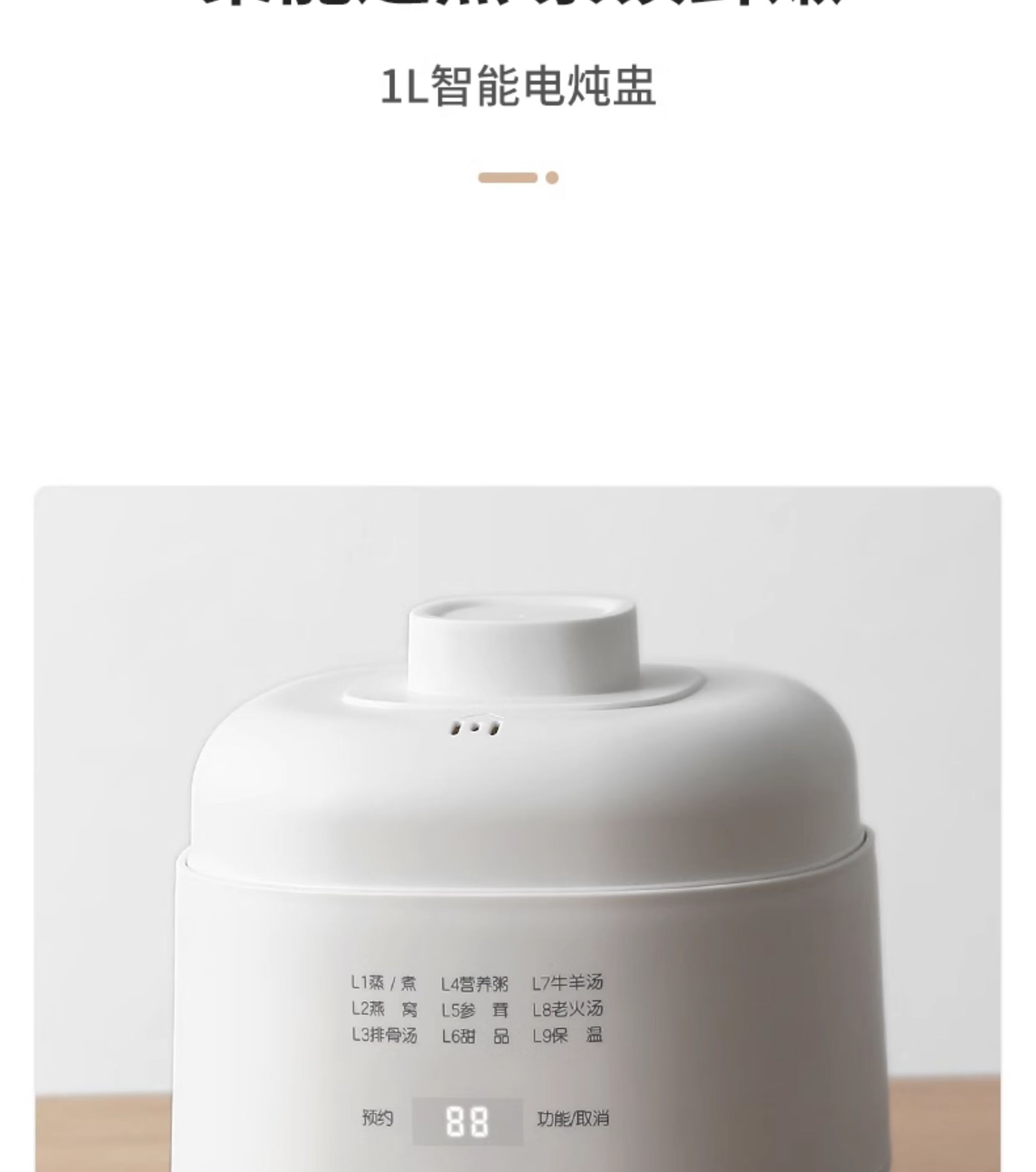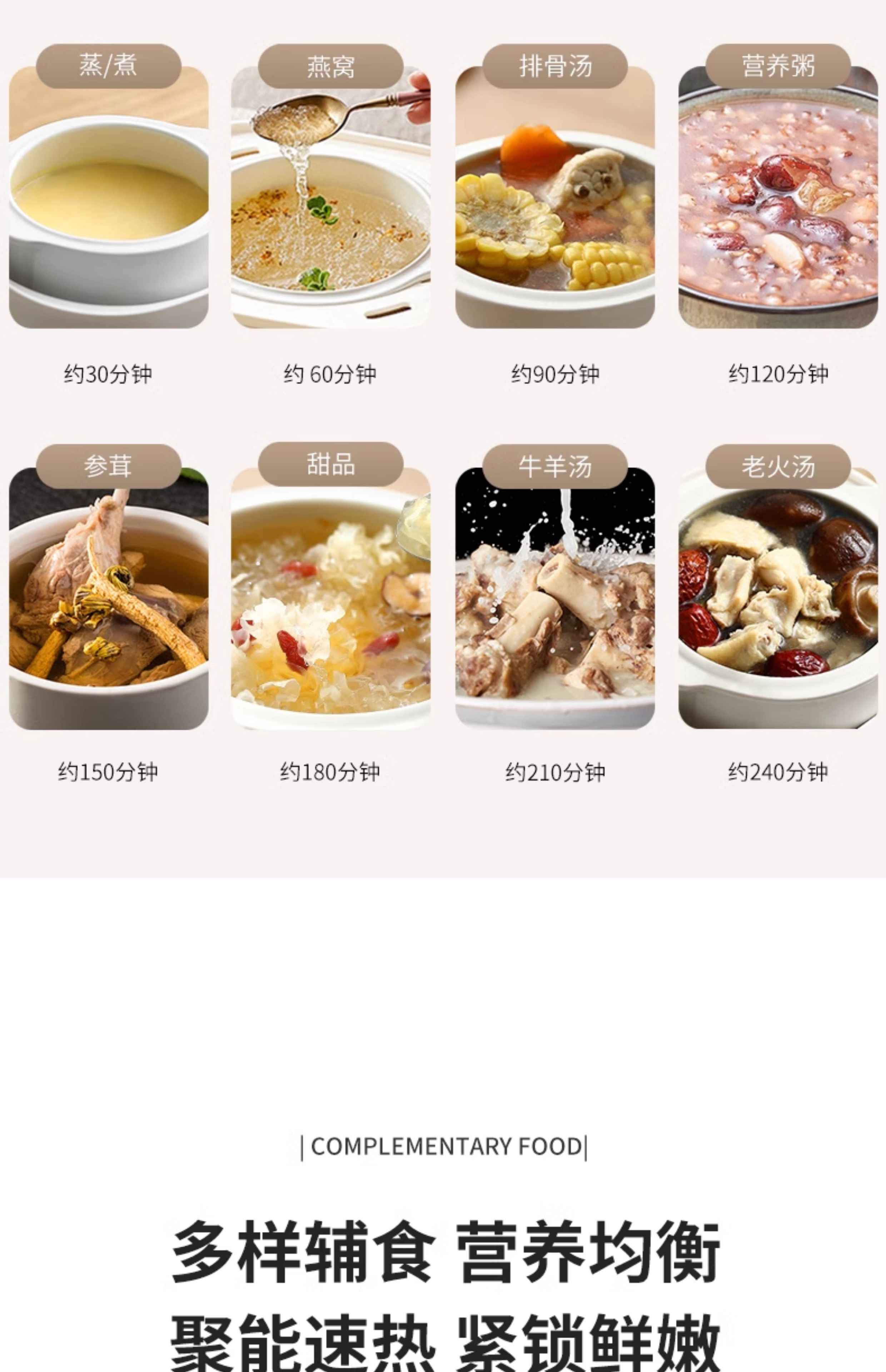 Jiuyi electric stew pot water-proof household baby food supplement pot for cooking porridge and soup bird's nest ceramic small electric stew pot white 1L