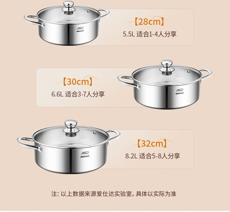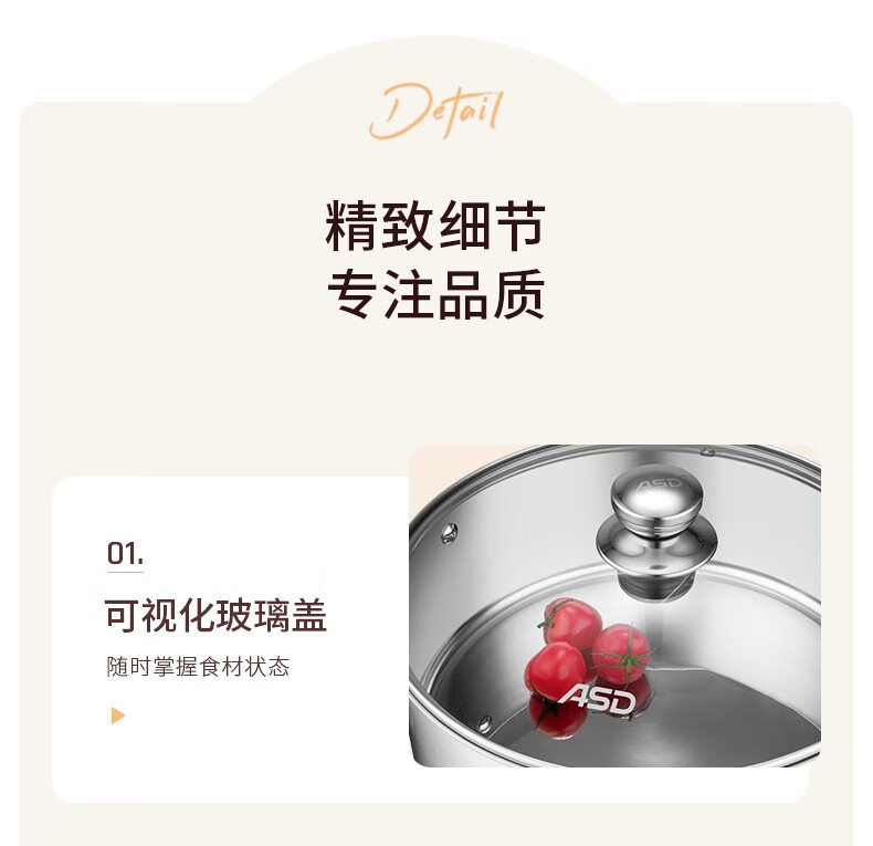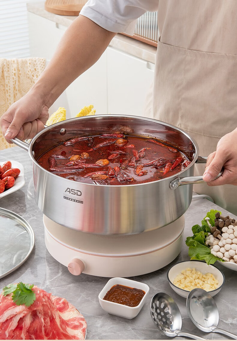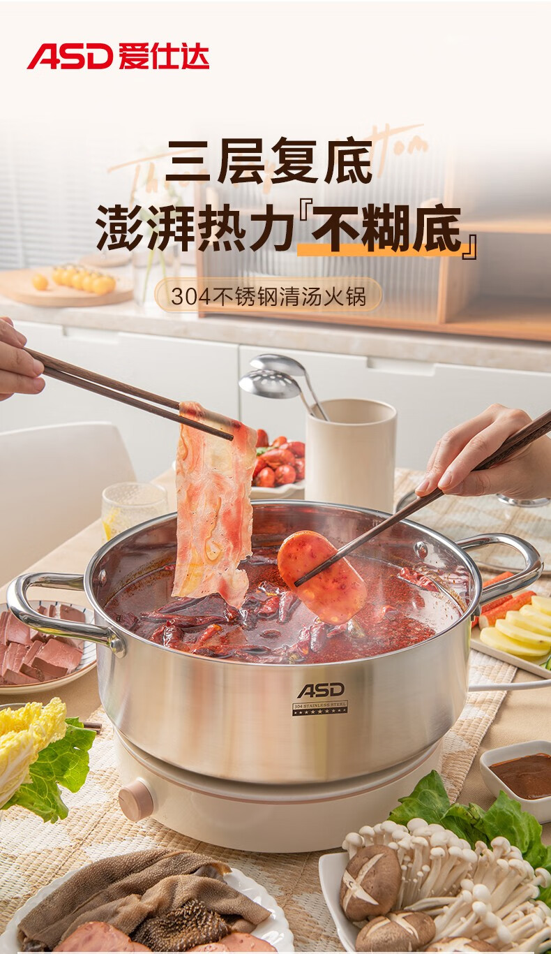 ASD (ASD) 304 stainless steel straight large-capacity hot pot soup pot kitchen household shabu-shabu multi-purpose double-bottom induction cooker universal clear soup hot pot 26cm
