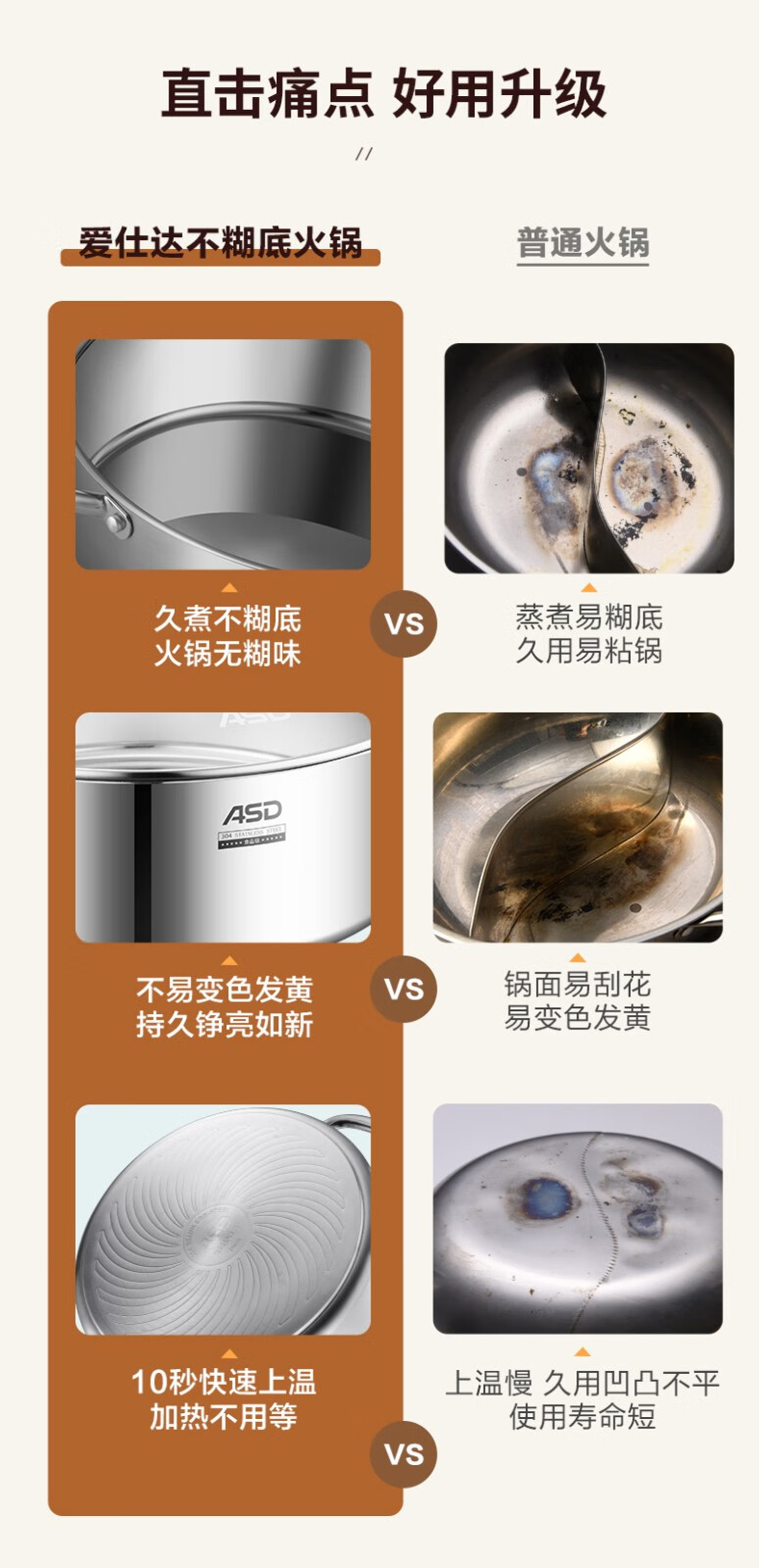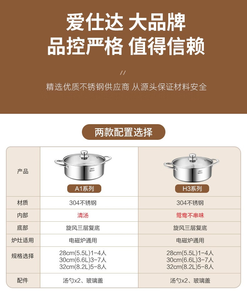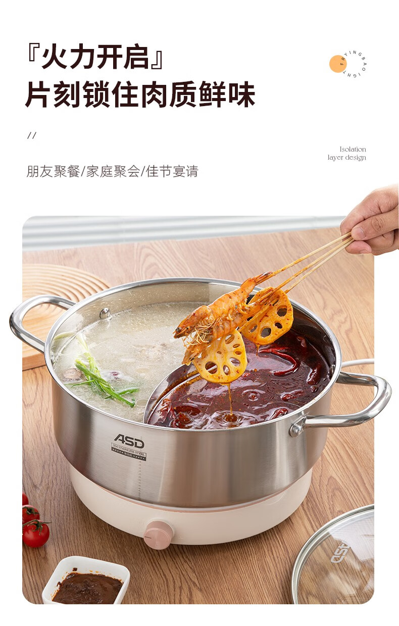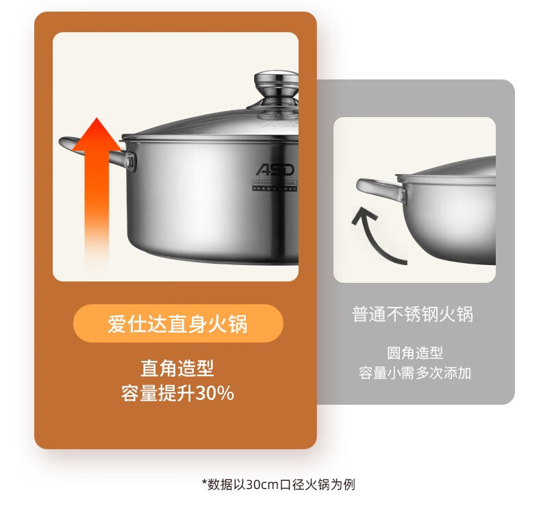 ASD (ASD) 304 stainless steel straight large-capacity hot pot soup pot kitchen household shabu-shabu multi-purpose double-bottom induction cooker universal clear soup hot pot 26cm