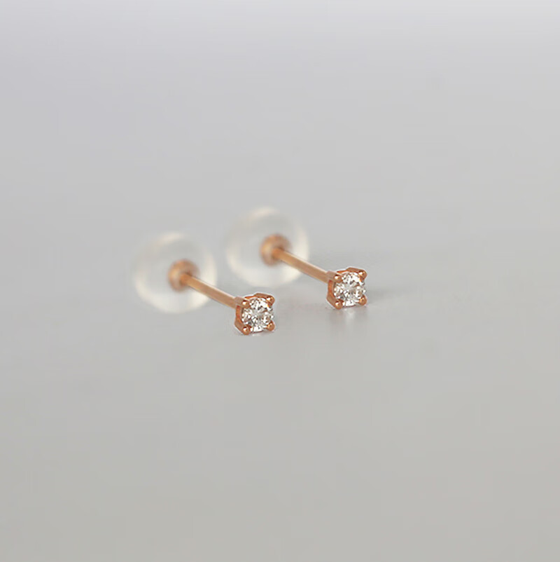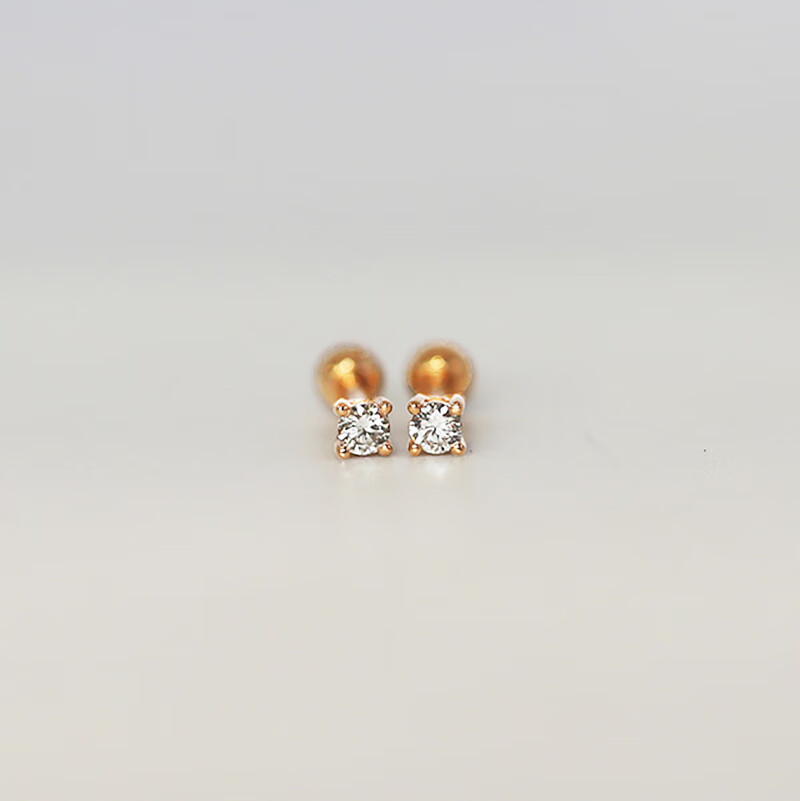 Fat Donglai's same style 18K screw small ear bone nails, real diamonds, real gold, four-prong small diamond earrings, rose gold screw-on ears, single straight needle diamond earrings, 18K rose gold x2 SI/Xiaoxia