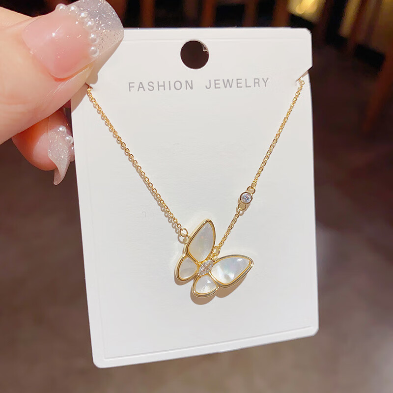 Libiao k gold butterfly white mother-of-pearl necklace female au750 rose gold colored gold clavicle chain Valentine's Day gift butterfly mother-of-pearl necklace