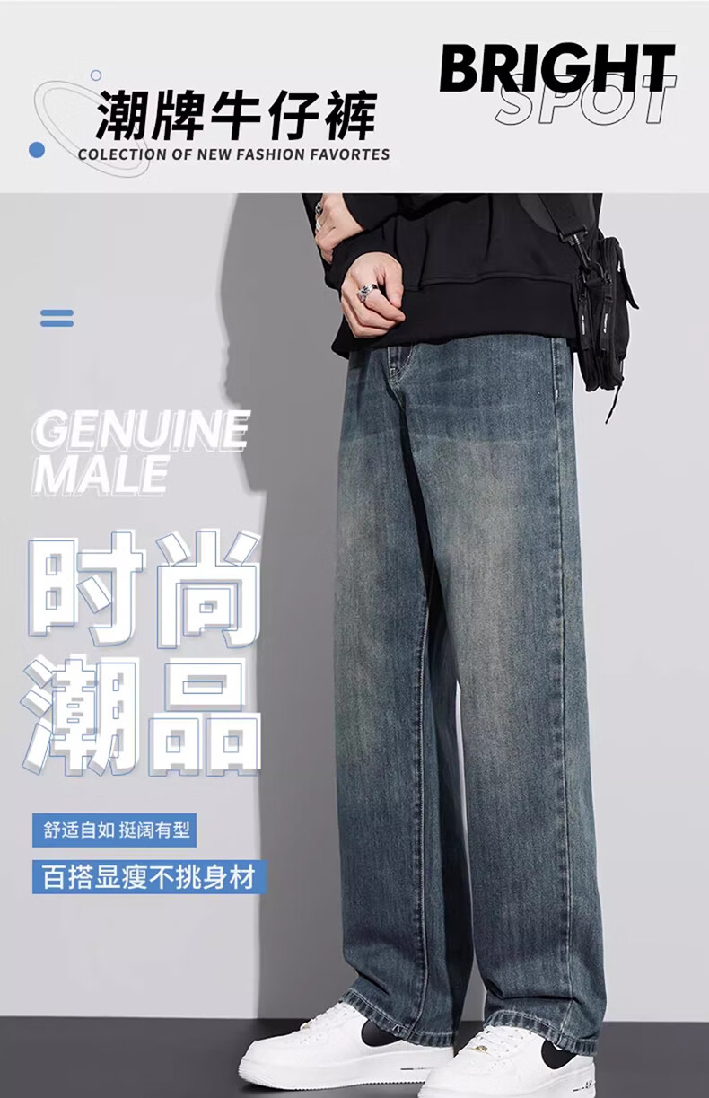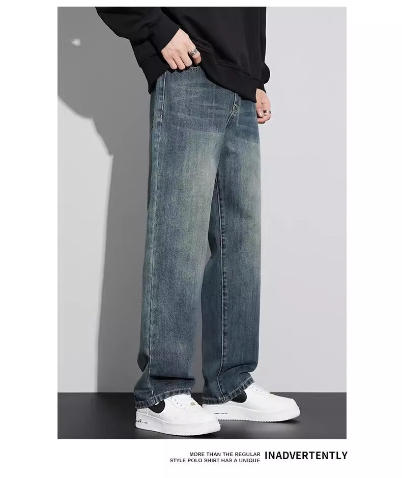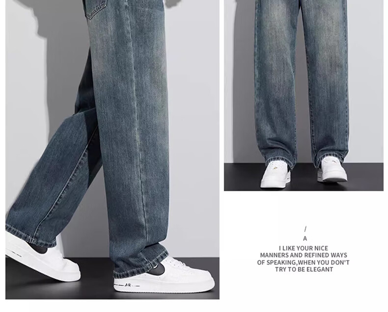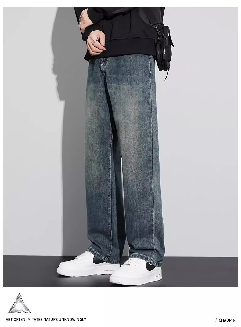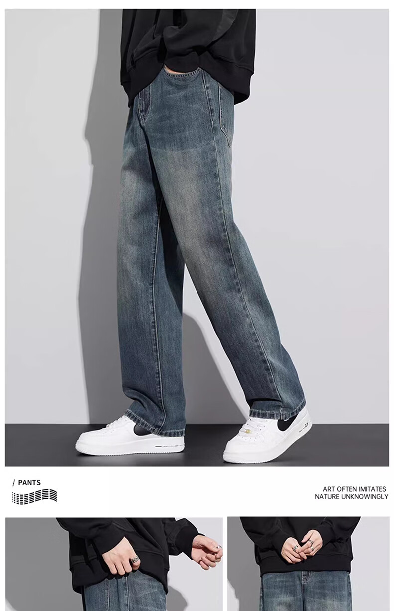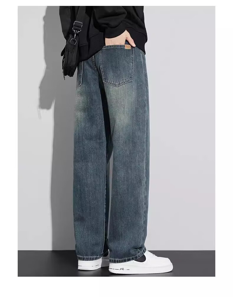 Jeanswest jeans men's autumn and winter new loose straight wide leg trendy versatile American retro plus velvet autumn casual pants 6843 retro blue plus velvet 31