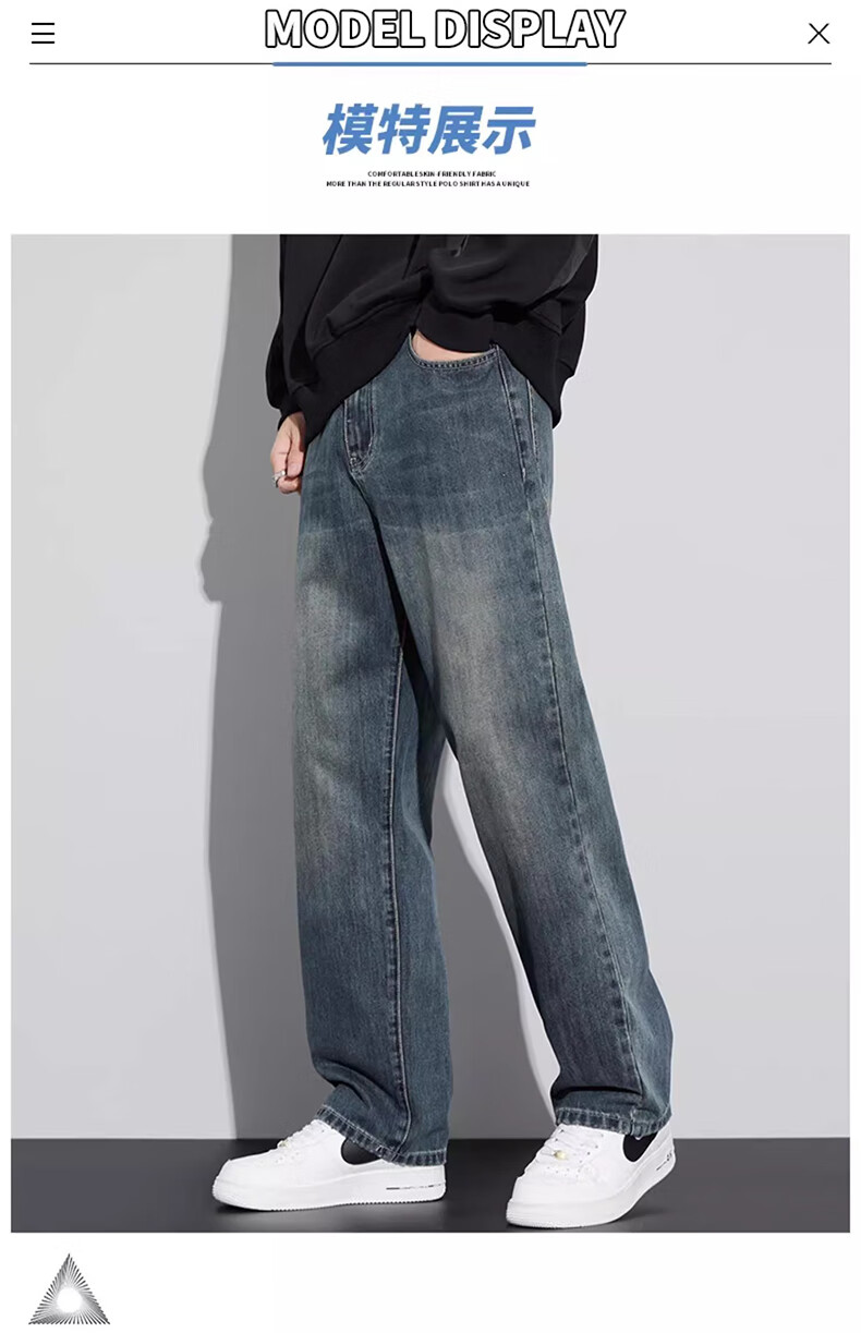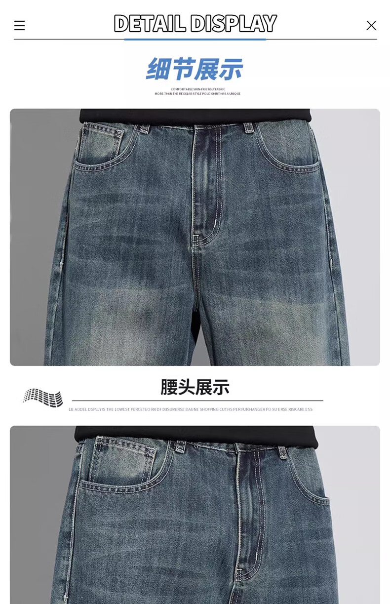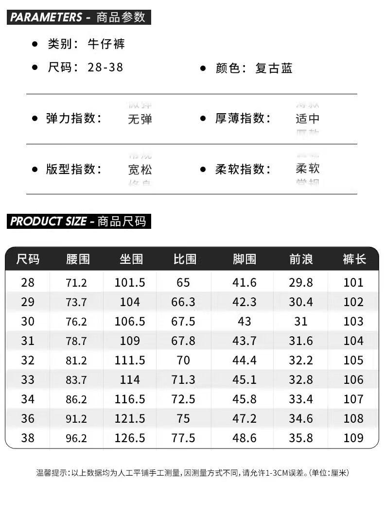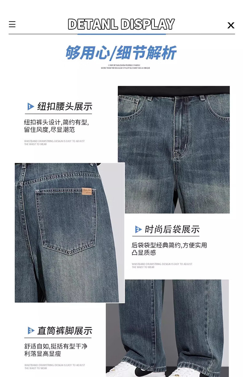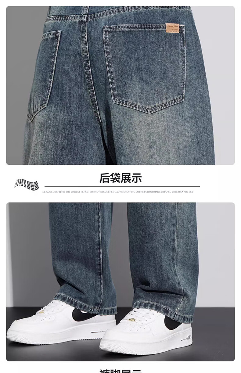 Jeanswest jeans men's autumn and winter new loose straight wide leg trendy versatile American retro plus velvet autumn casual pants 6843 retro blue plus velvet 31