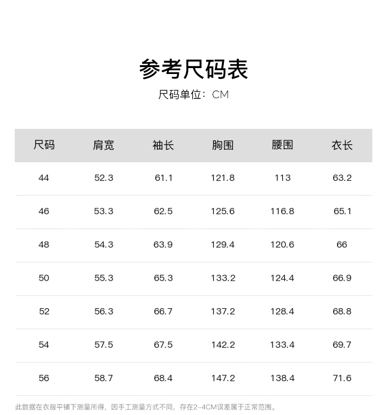 Size (cm) 42 44 46 48 50