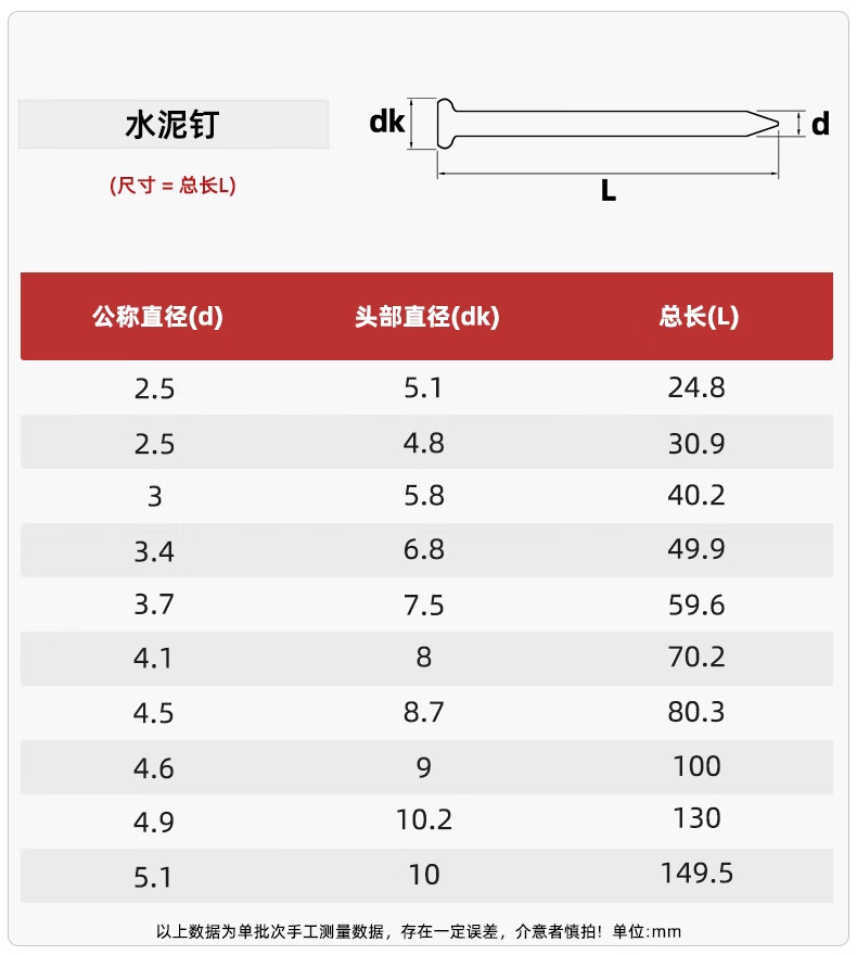 Tianzhuo Hardware National Standard Special Cement Nails Steel Nails Concrete Cement Wall Special Wall Nails Round Nails Carpentry Picture Frame Nails 70mm Blackened (A box of 25 boxes, about 1340 pieces)