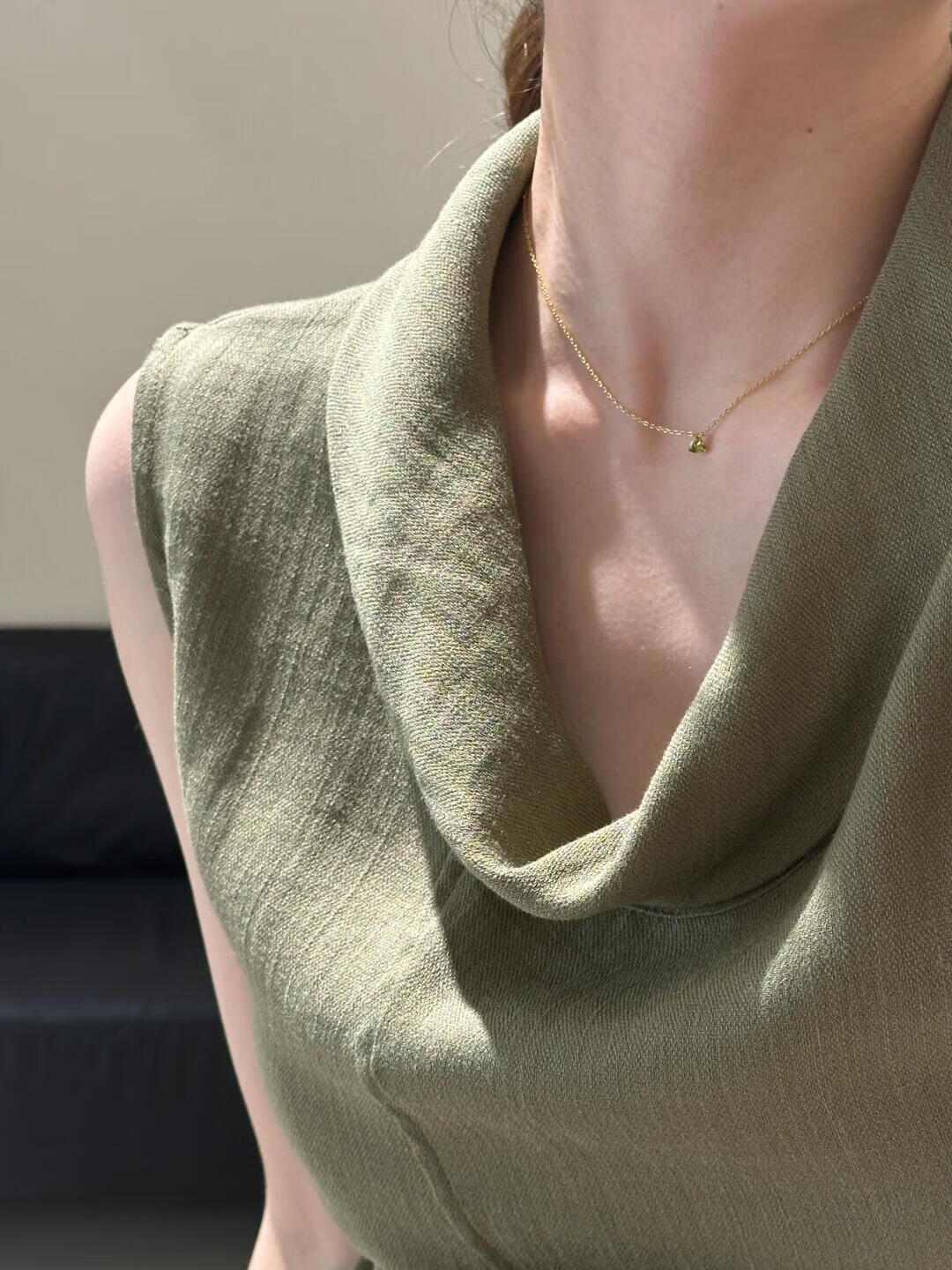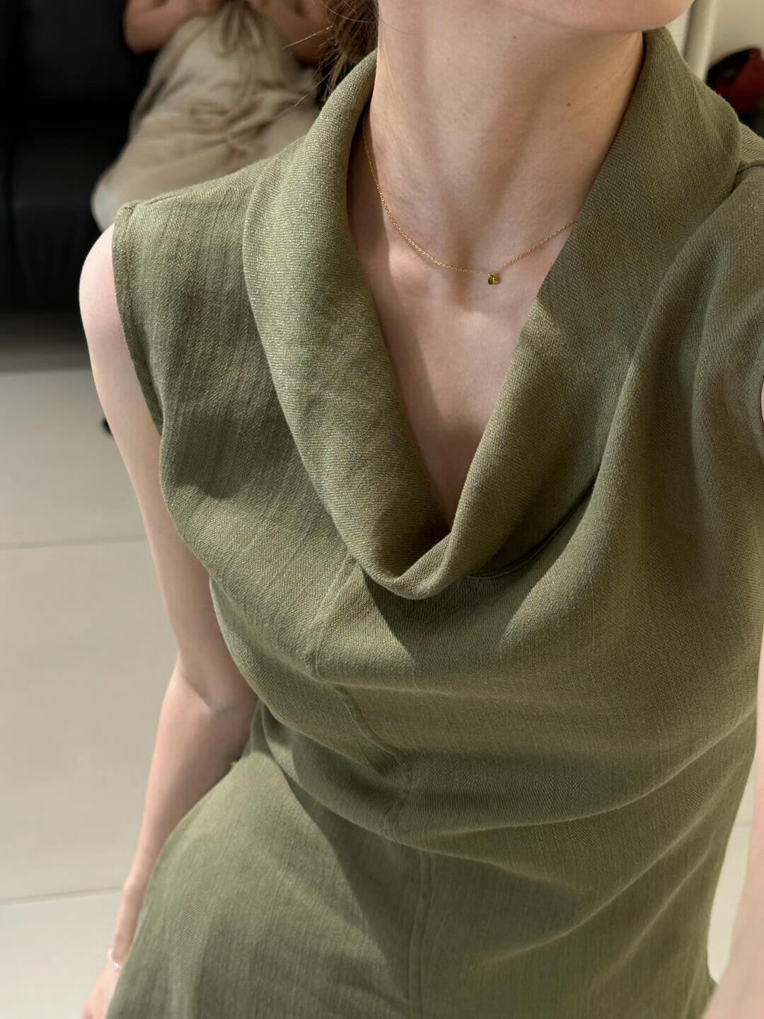 Shixi Peridot Sterling Silver Necklace Colored Green Diamond Light Luxury Premium 18k Gold Plated Women's Triangular Pendant Clavicle Chain S925