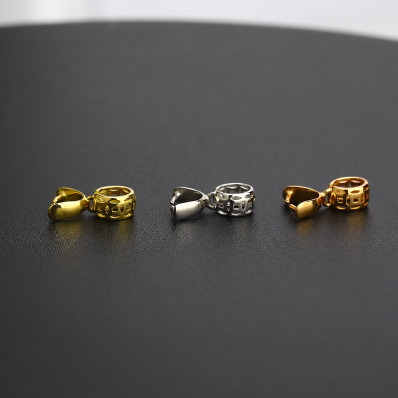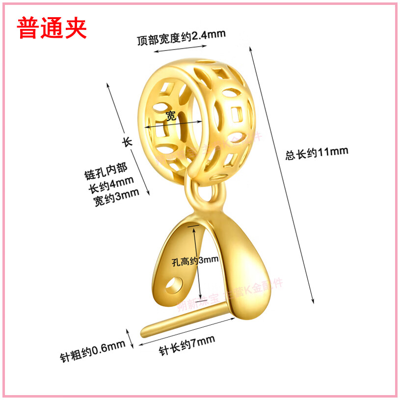 Shixi 18k gold copper coin buckle jade buckle head thickened pendant buckle jade pendant necklace clip buckle beeswax DIY accessories seven 18K gold ordinary clip_non-slant hole