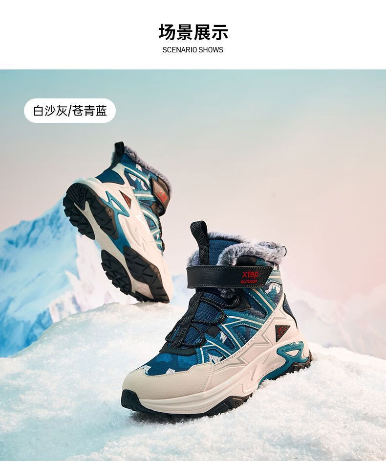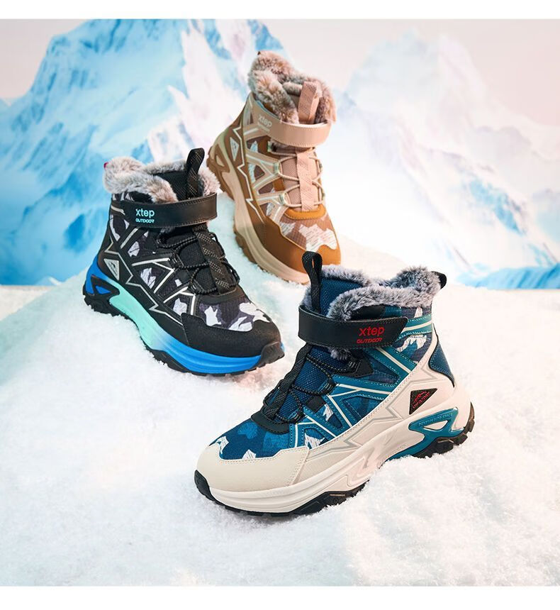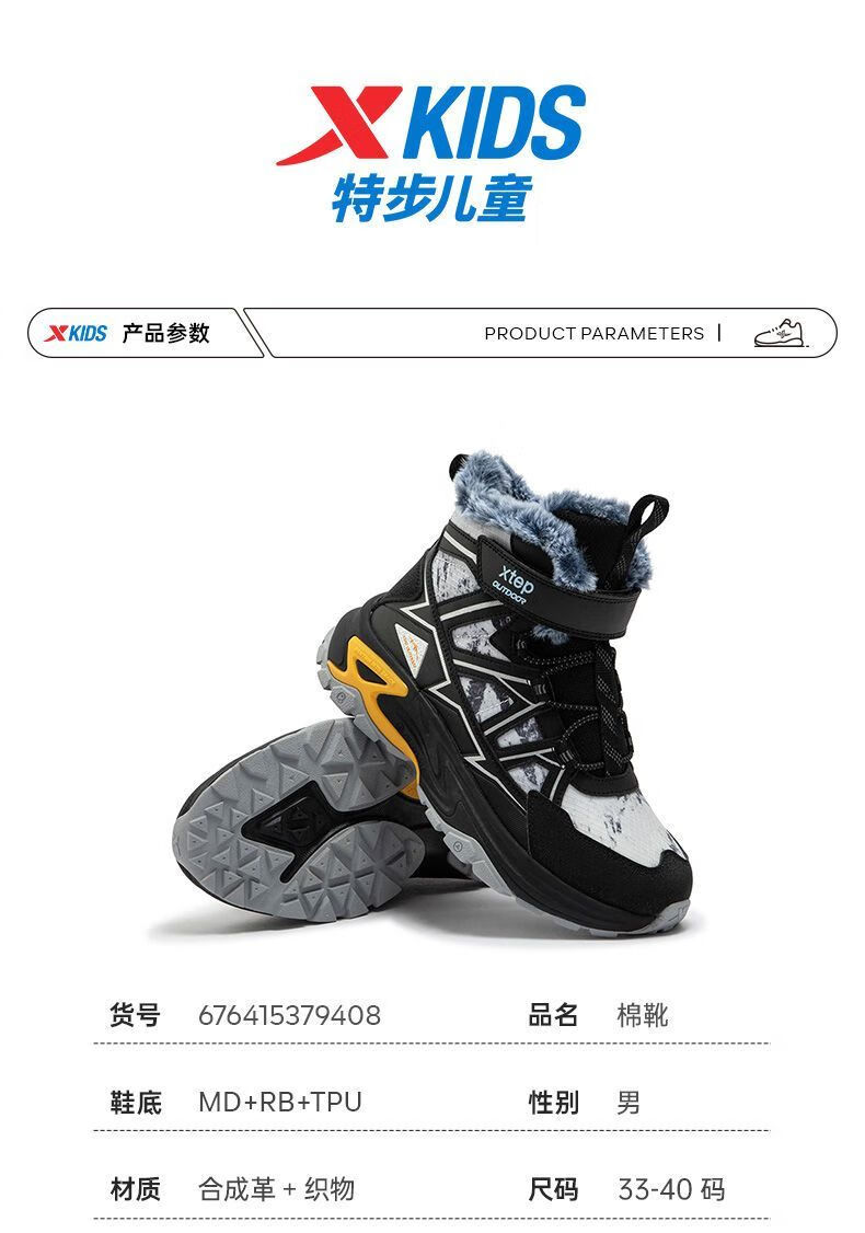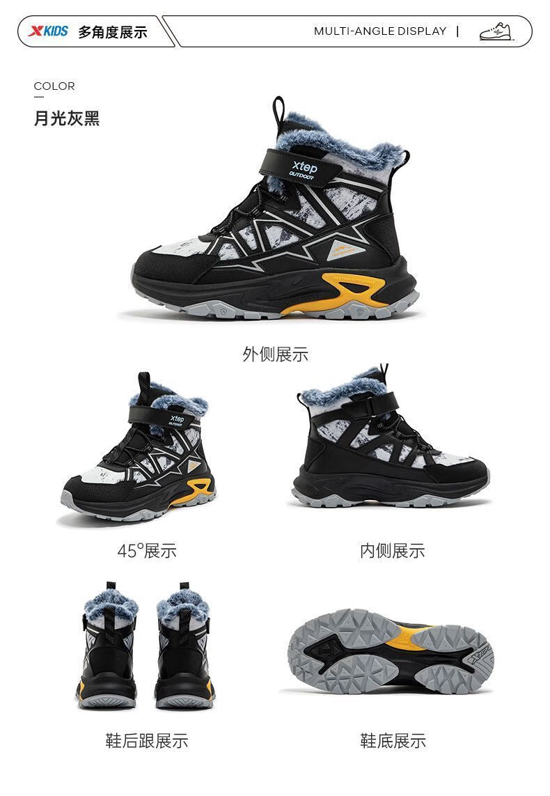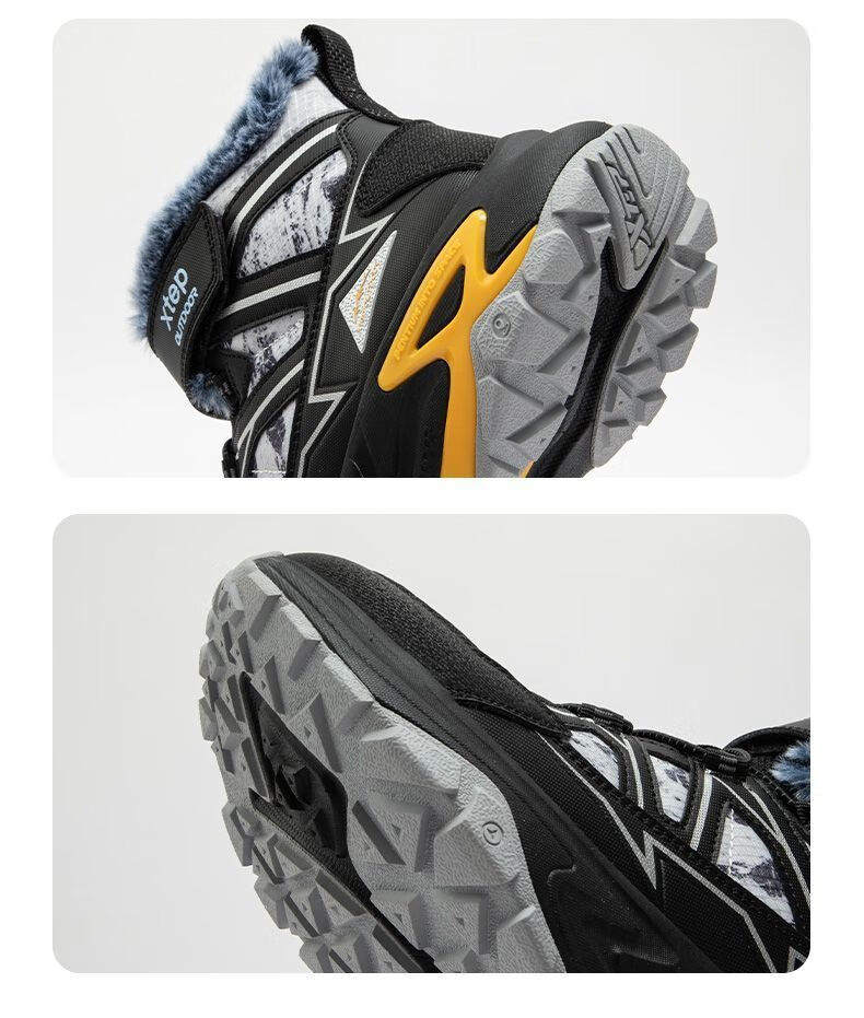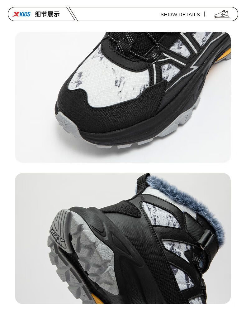 XTEP (XTEP) XTEP Children's 2025 Winter New Style Velvet Versatile Thickened Warm High-top Sports Shoes Cotton Shoes for Boys Middle and Large Children Moonlight Gray/Black 33