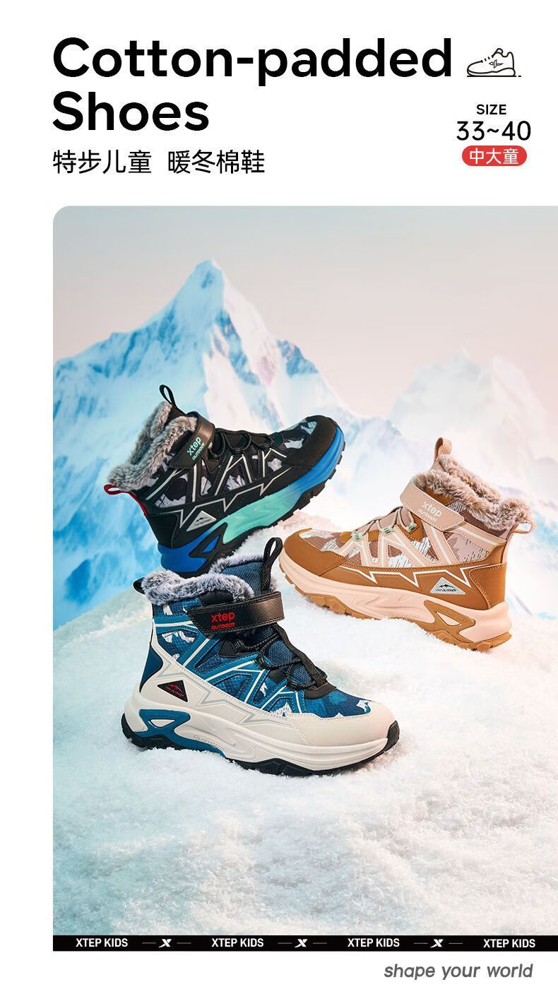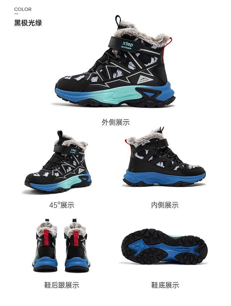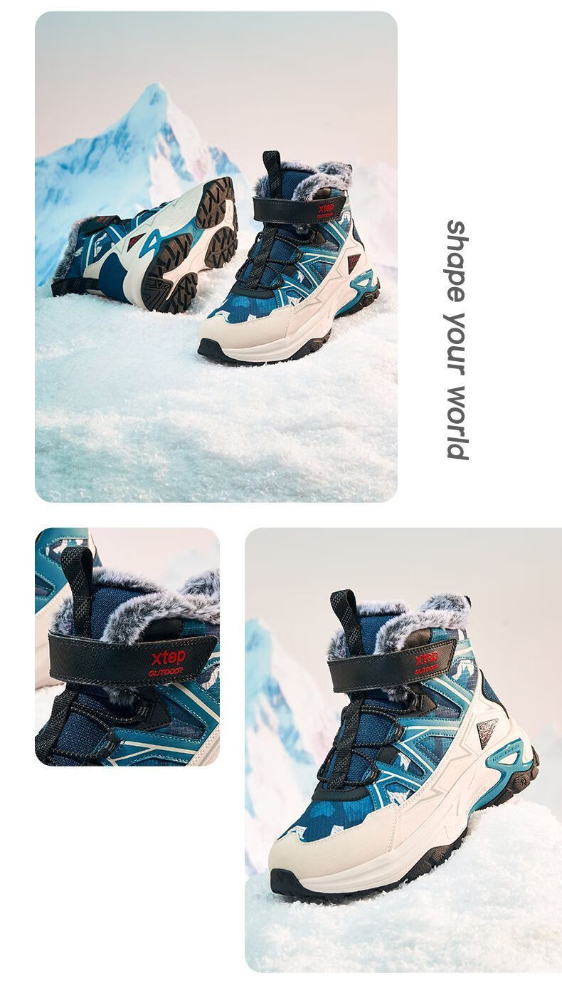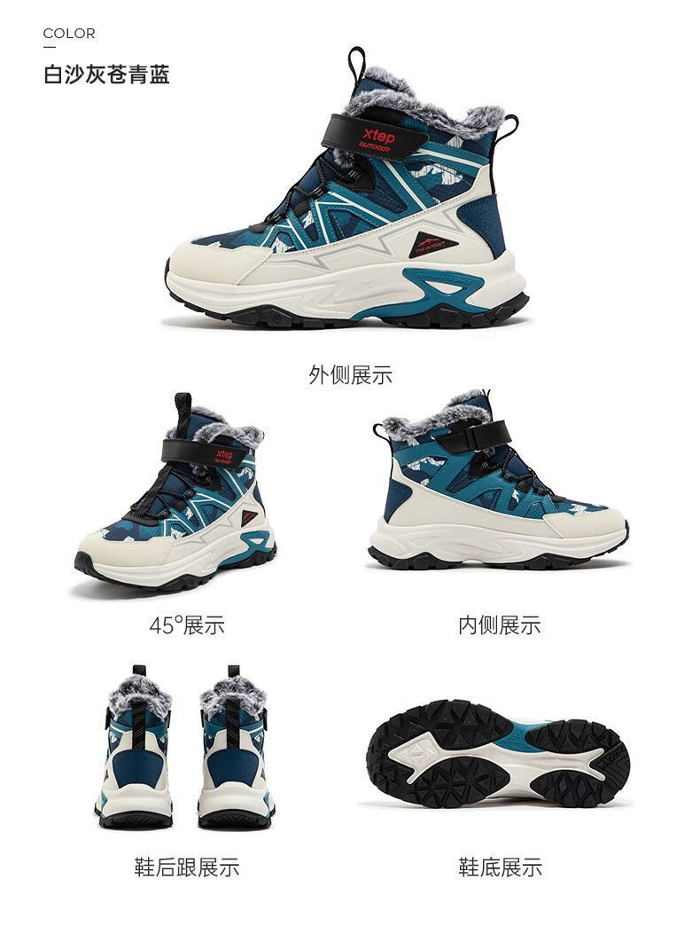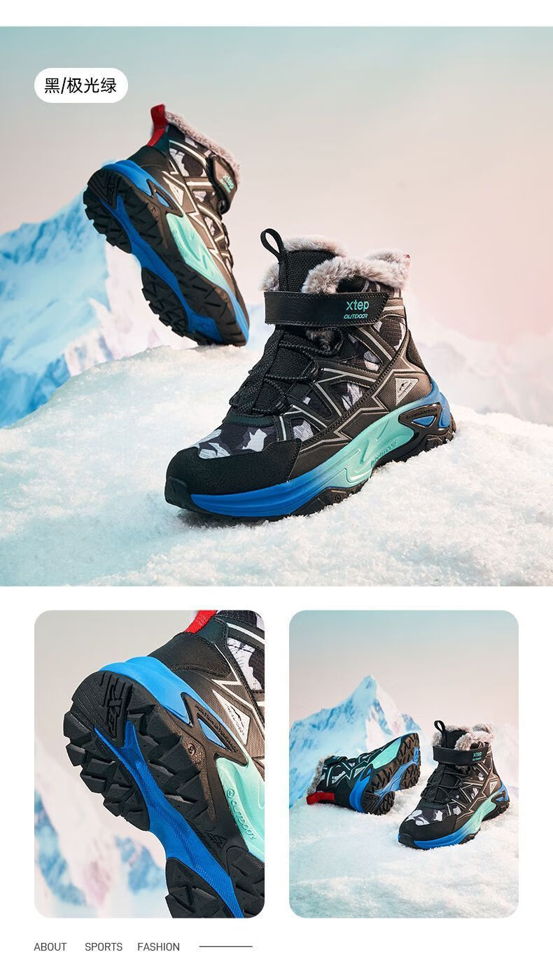 XTEP (XTEP) XTEP Children's 2025 Winter New Style Velvet Versatile Thickened Warm High-top Sports Shoes Cotton Shoes for Boys Middle and Large Children Moonlight Gray/Black 33