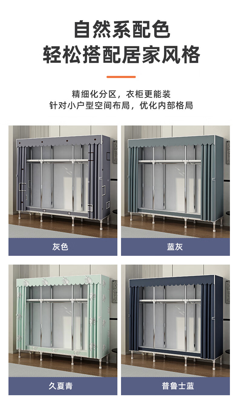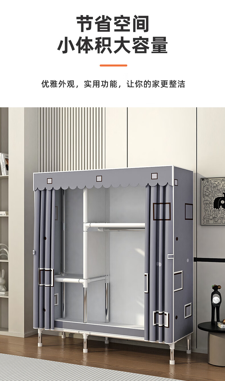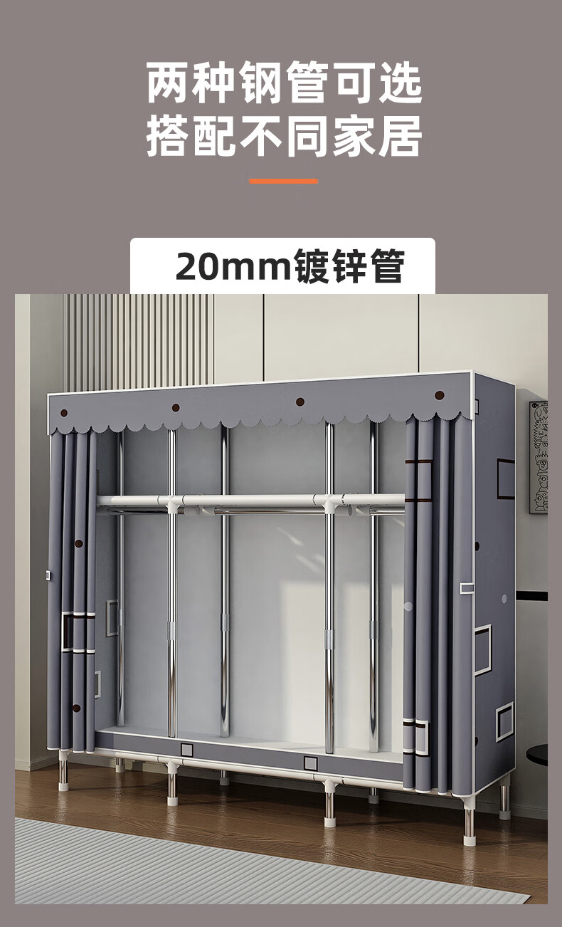 Zhenyuanchuang Wardrobe Home Bedroom Assembly Cloth Wardrobe Full Steel Frame Bold and Thickened Simple Cloth Wardrobe Hanging Wardrobe Rental Use Width 85 Gray (Ready Stock + Reinforced Style)