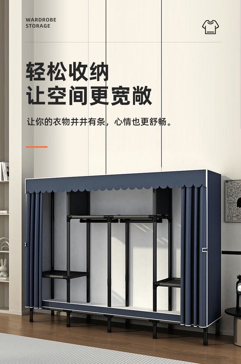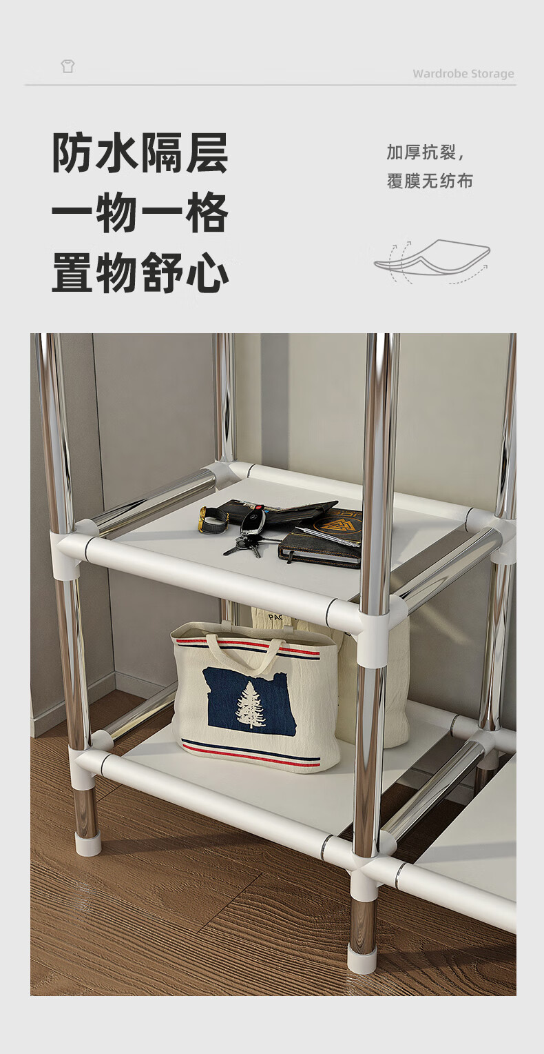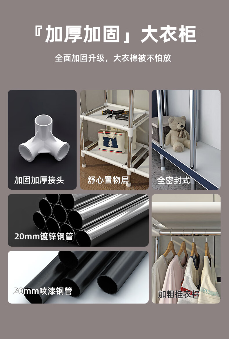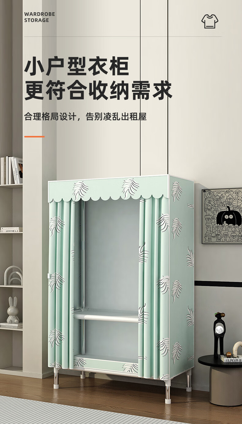 Zhenyuanchuang Wardrobe Home Bedroom Assembly Cloth Wardrobe Full Steel Frame Bold and Thickened Simple Cloth Wardrobe Hanging Wardrobe Rental Use Width 85 Gray (Ready Stock + Reinforced Style)