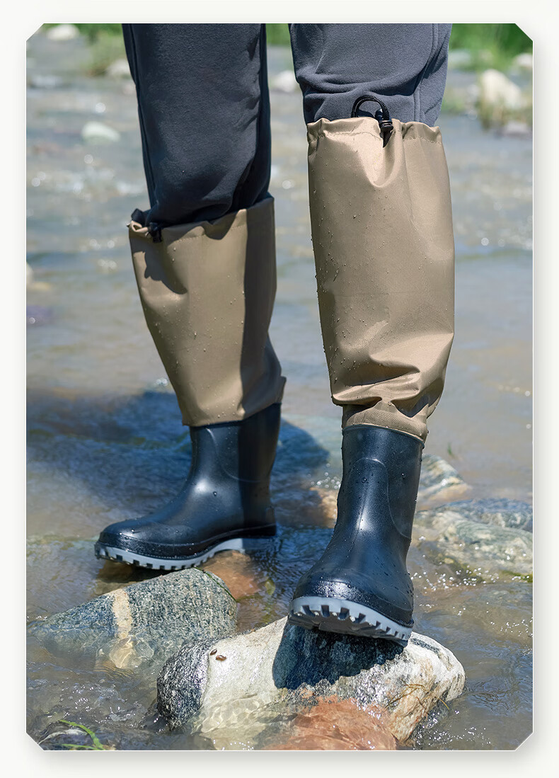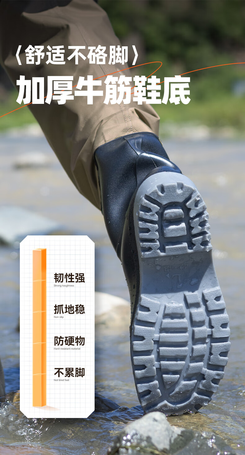 Fishing Luya wading shoes, rain boots, sea rain boots, river tracing shoes, non-slip, wear-resistant, wind-resistant nylon waterproof shoes, cycling shoes, soot 3 layers of nylon + thick rhinoceros sole -B 42 -43 size