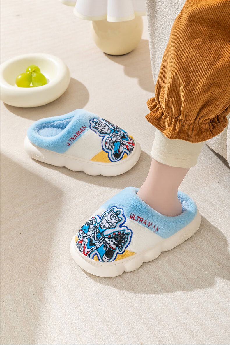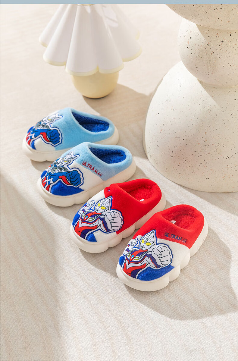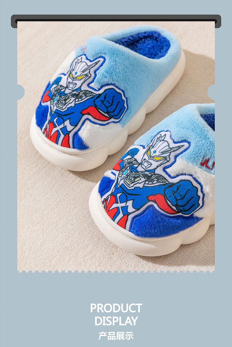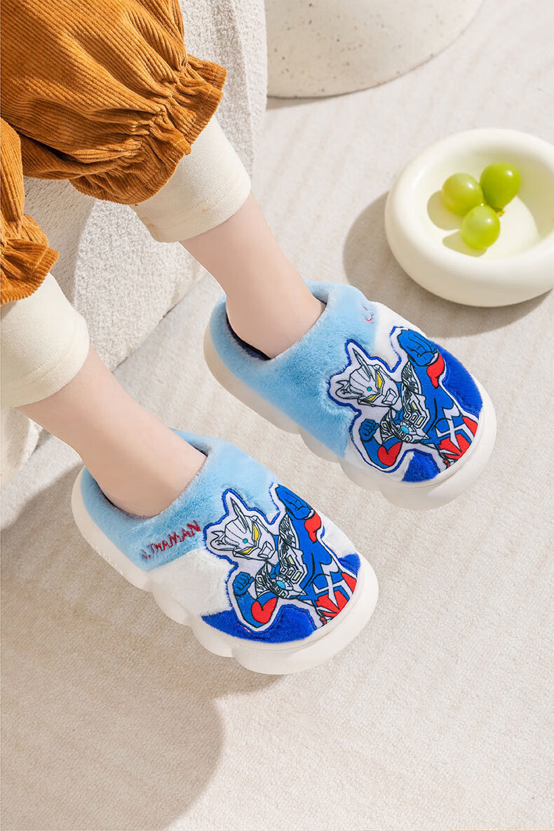 G.duck Ultraman children's cotton slippers winter 2024 new indoor home non-slip warm children's boys' fur slippers Cerro Sapphire Blue 32 33 (inner length 19.5cm)