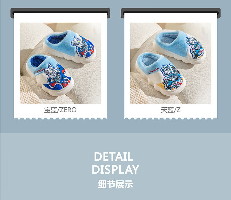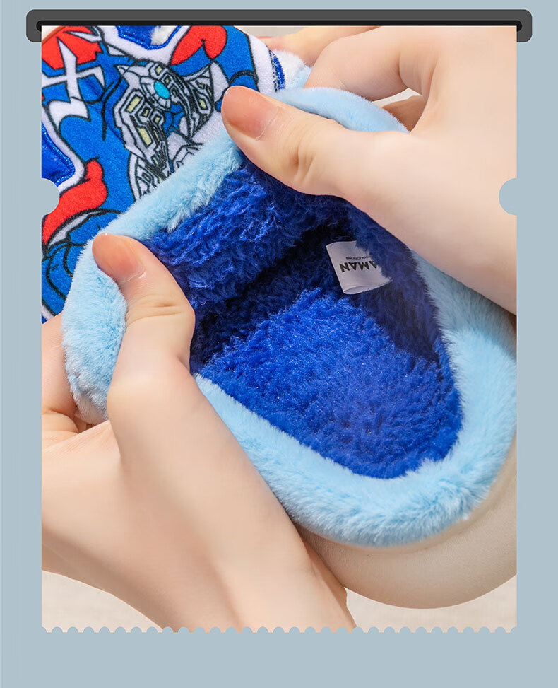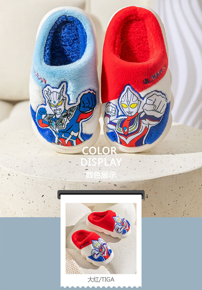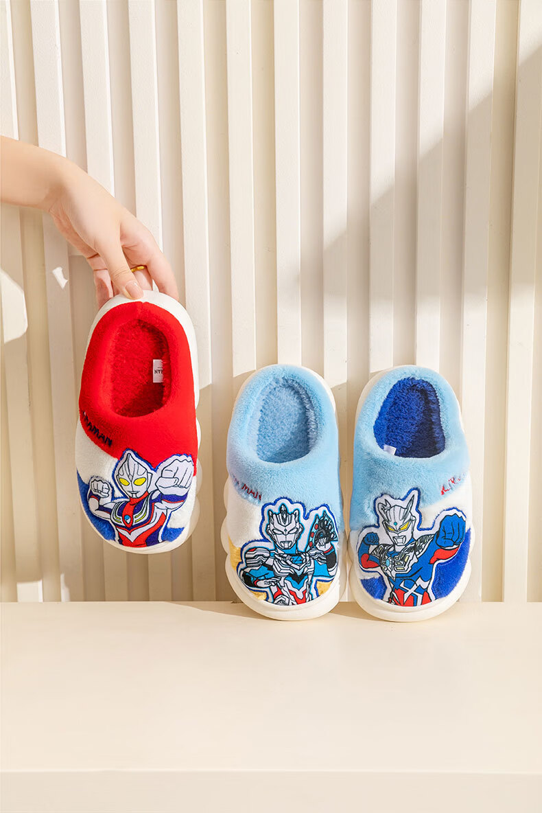 G.duck Ultraman children's cotton slippers winter 2024 new indoor home non-slip warm children's boys' fur slippers Cerro Sapphire Blue 32 33 (inner length 19.5cm)