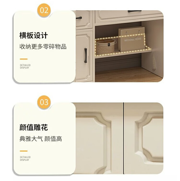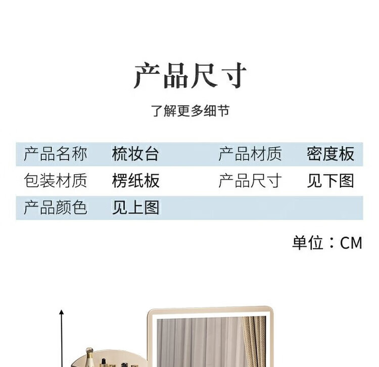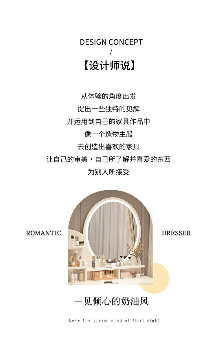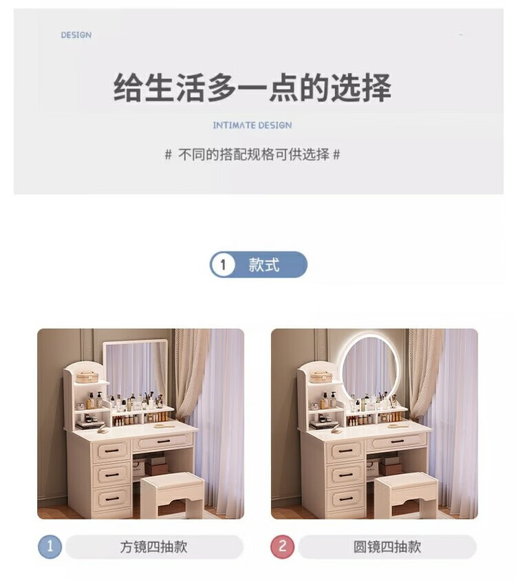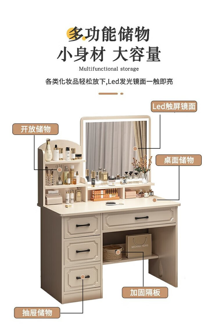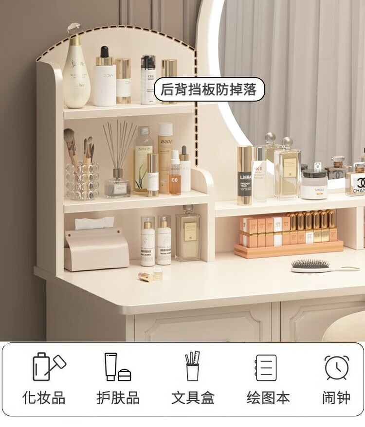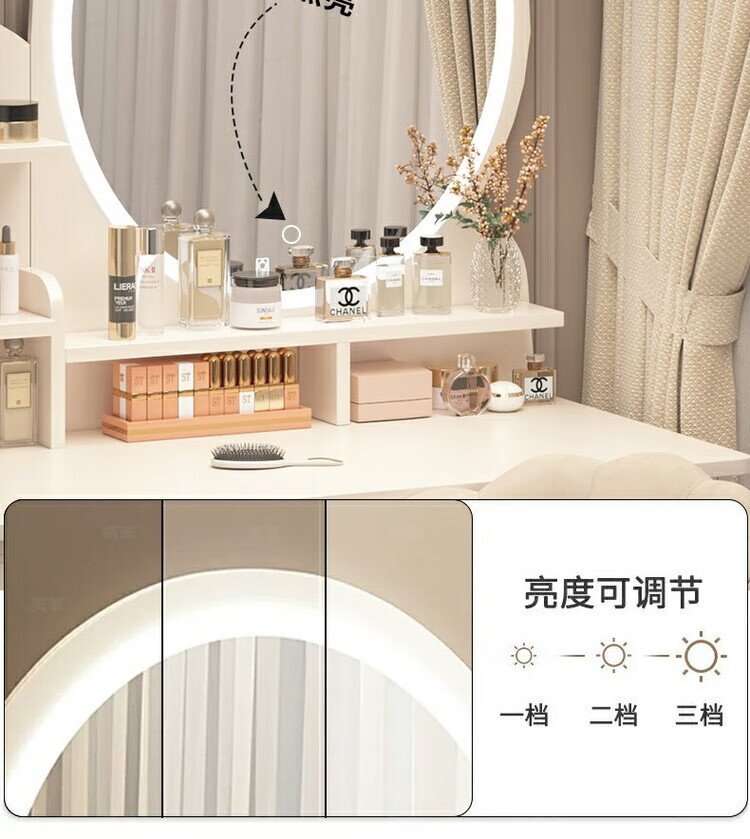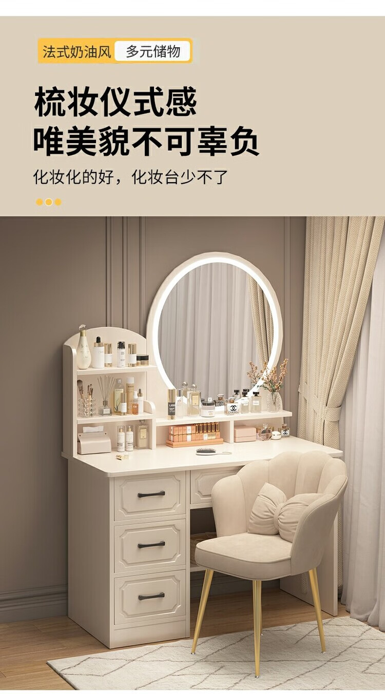 Benmu Zizai European style dressing table bedroom modern minimalist Internet celebrity ins style small apartment home small high-end bed LED light mirror round mirror four draws + petal chair 80cm other assembly 1x1x1cm