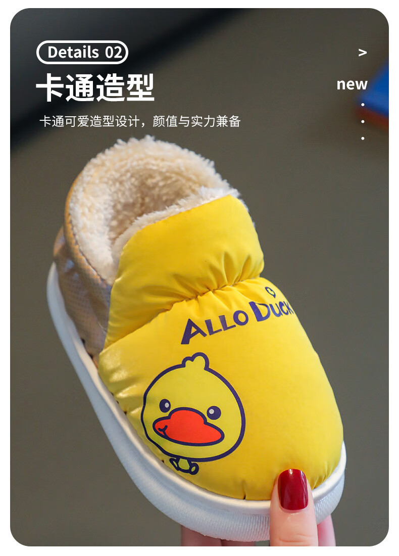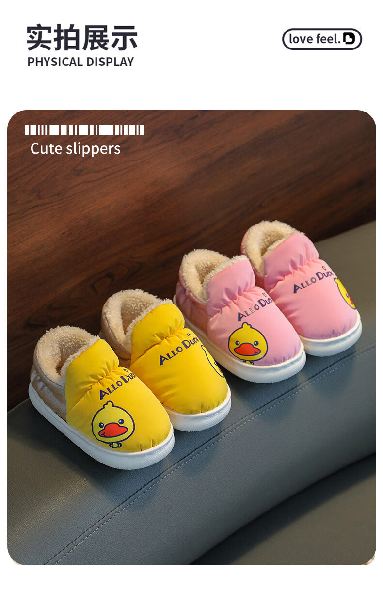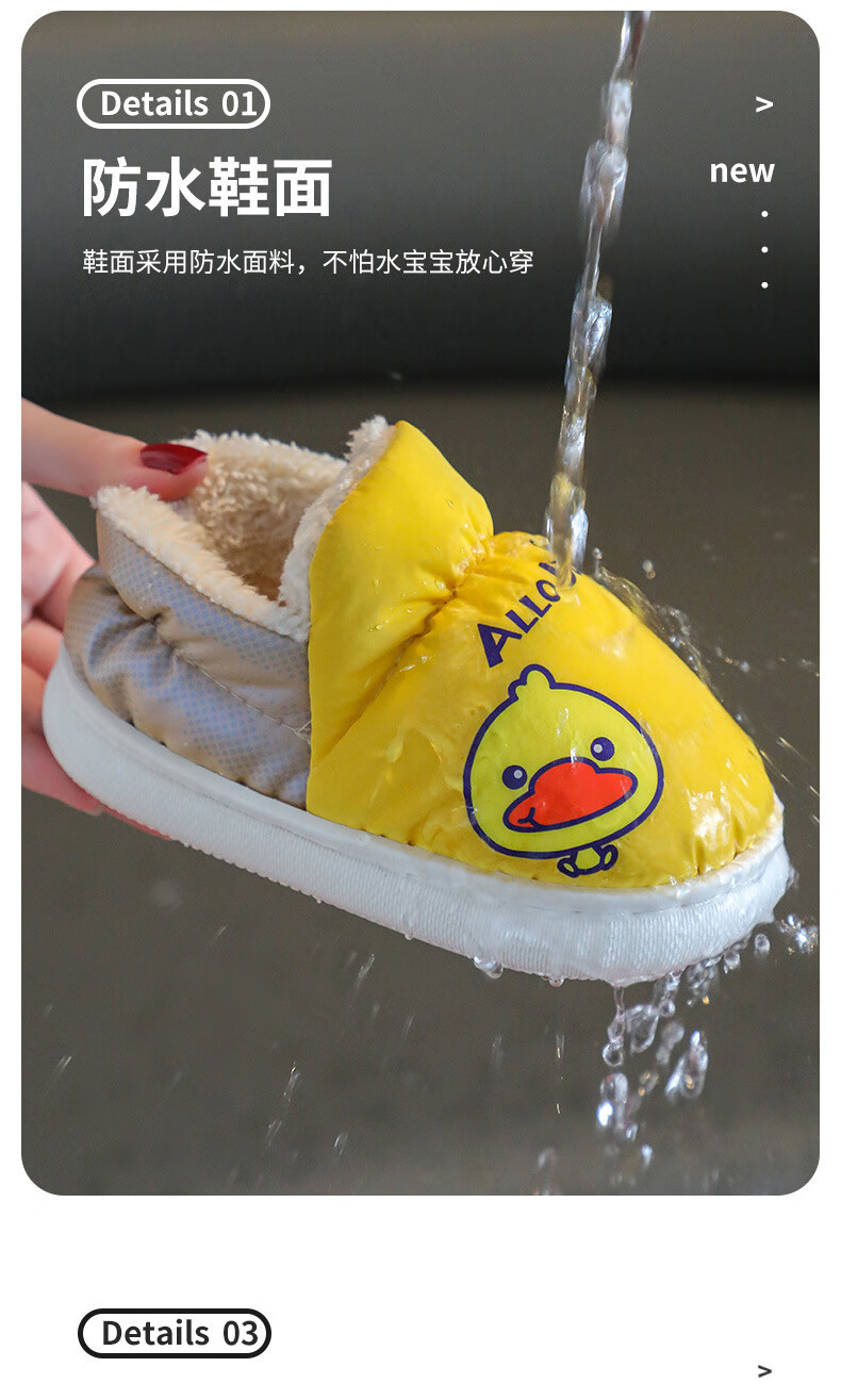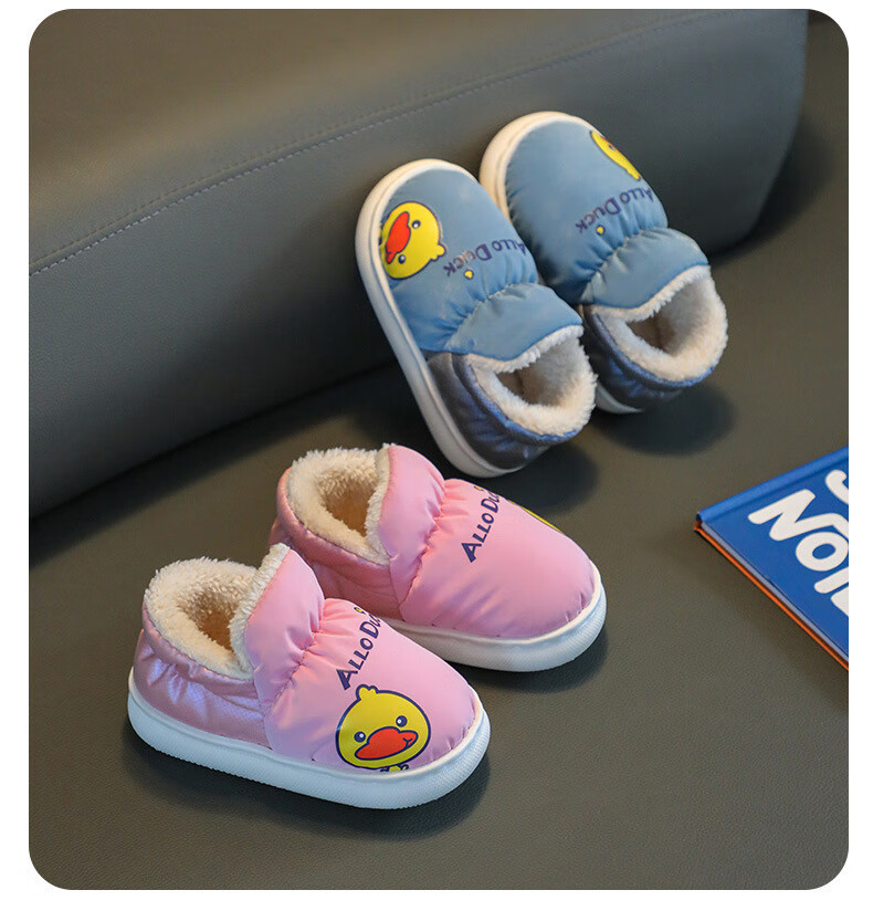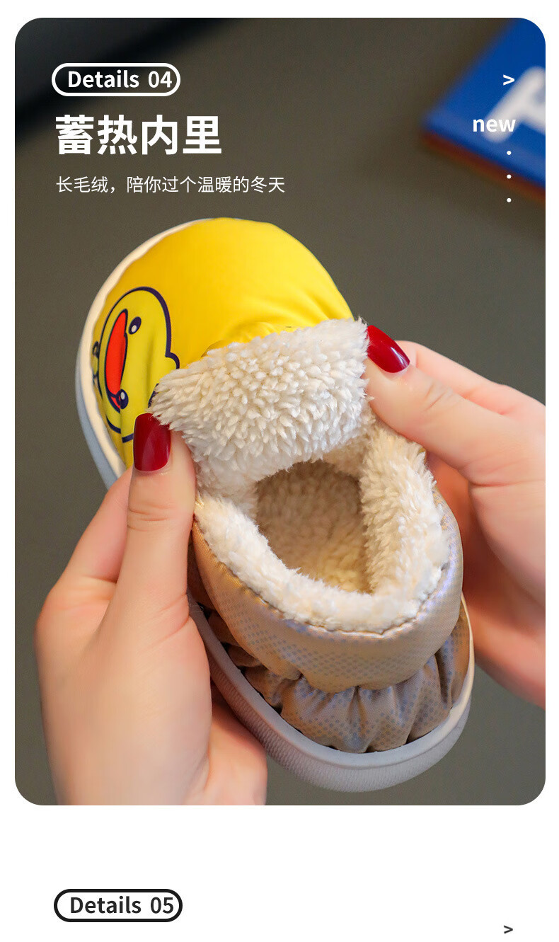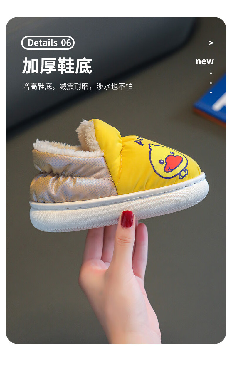 G.duck winter children's cotton slippers with cotton shoes, big children's warm plus velvet thickened anti-slip waterproof down shoes home slippers duck-yellow 30 31 inner foot length 19cm5-6 years old