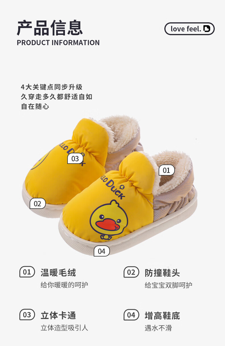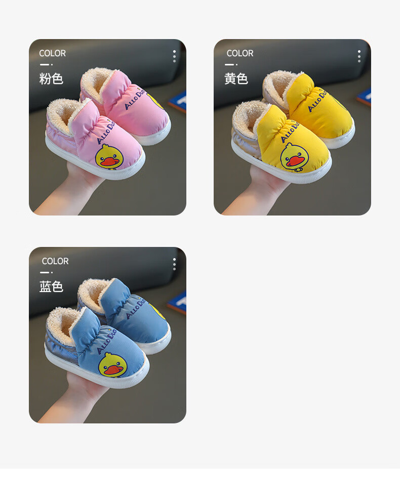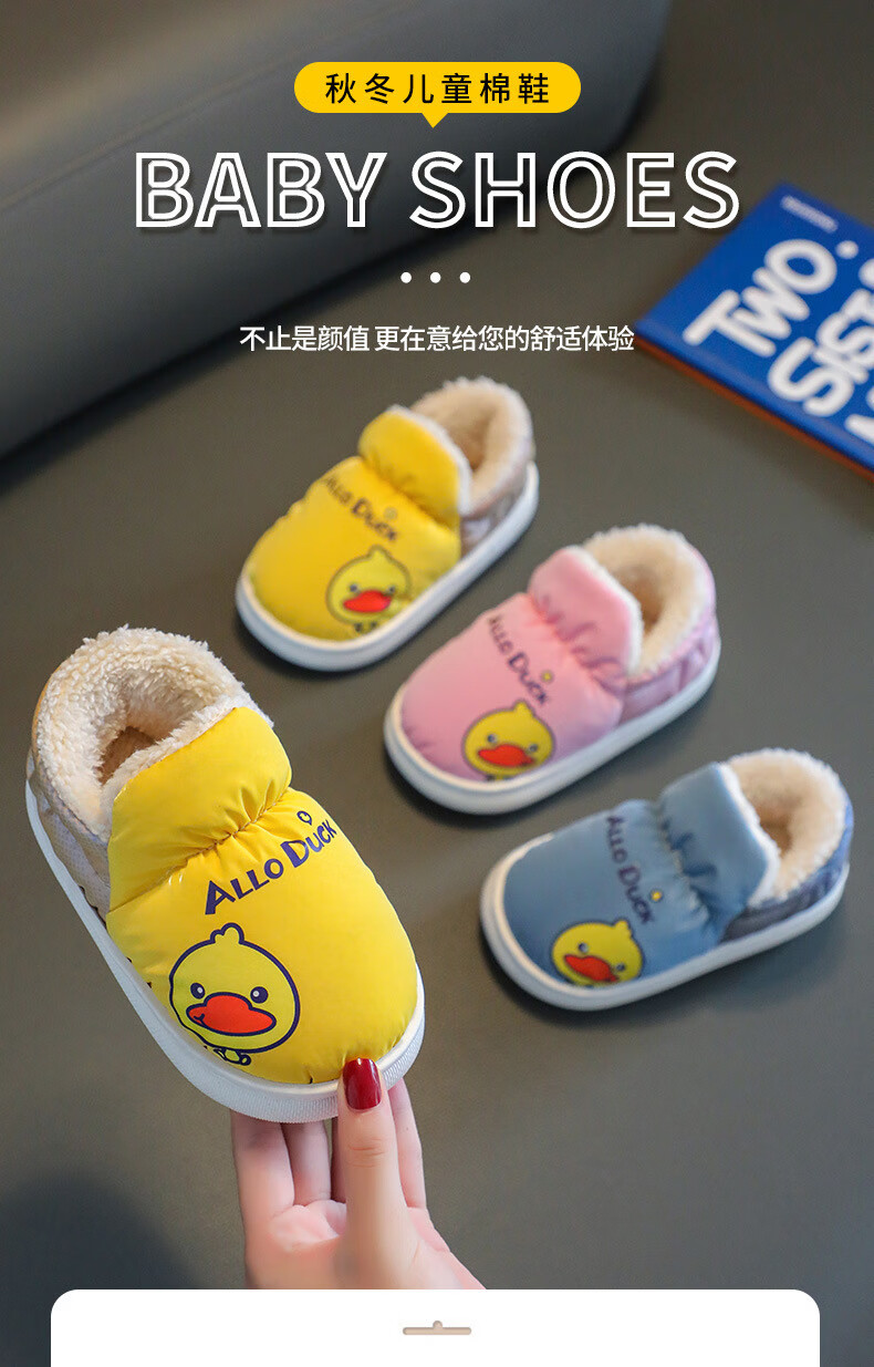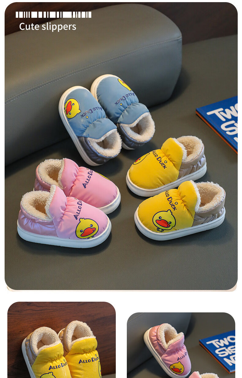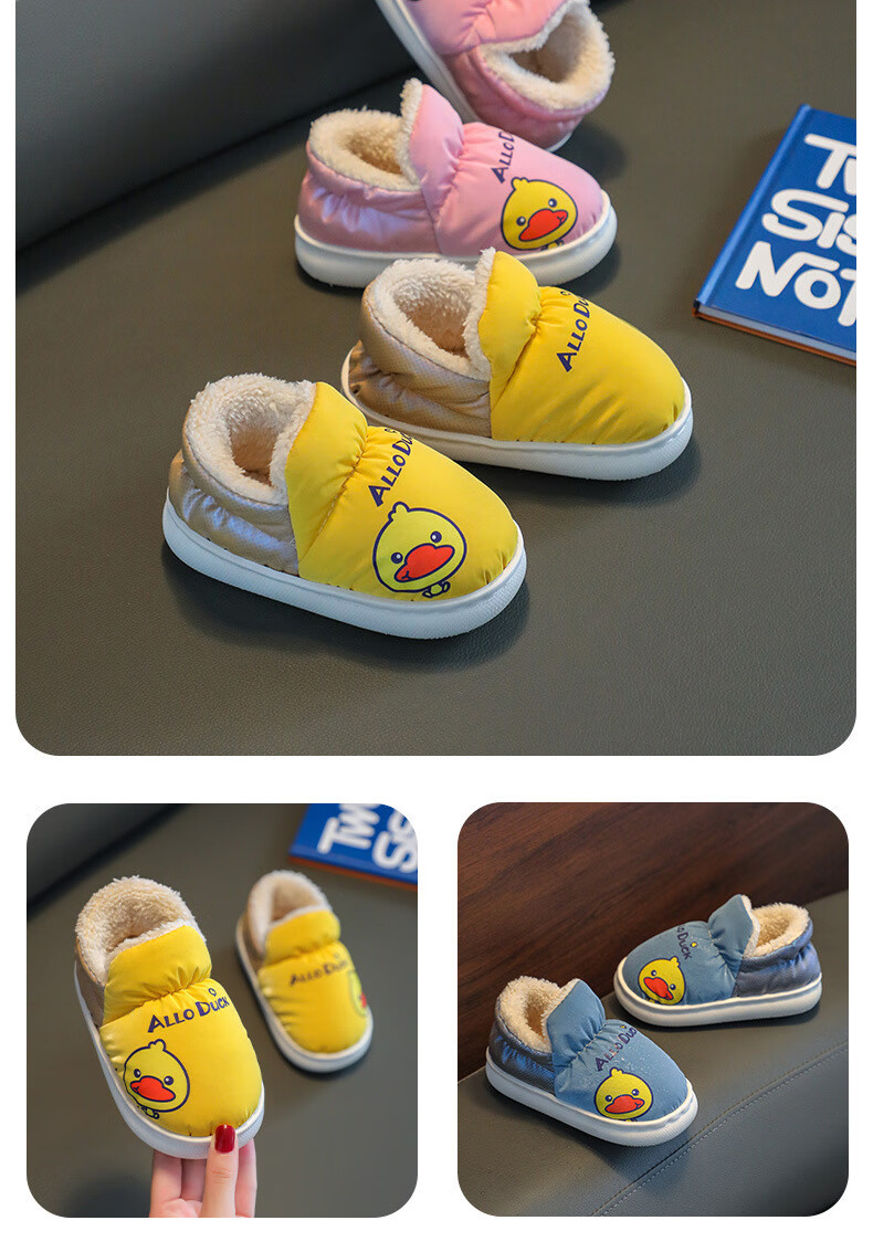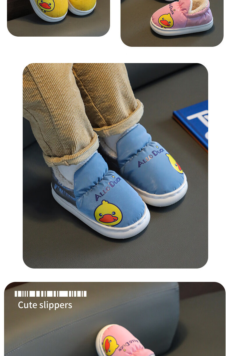 G.duck winter children's cotton slippers with cotton shoes, big children's warm plus velvet thickened anti-slip waterproof down shoes home slippers duck-yellow 30 31 inner foot length 19cm5-6 years old
