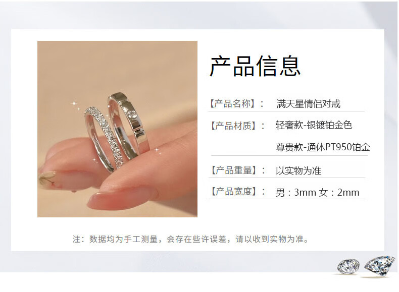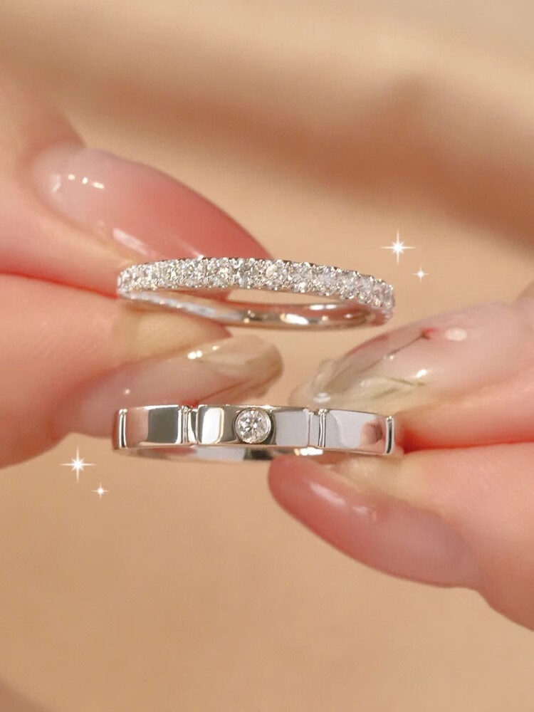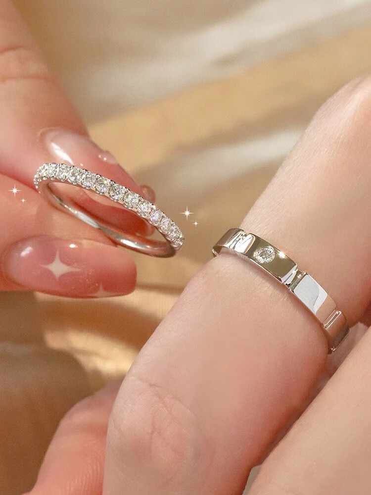 MZMZ brand platinum ring Sugar Cube Couple Ring Pair of Rings Wedding Engagement Proposal Anniversary Birthday Gift for Girlfriend Light Luxury Style-Sugar Cube Couple Ring