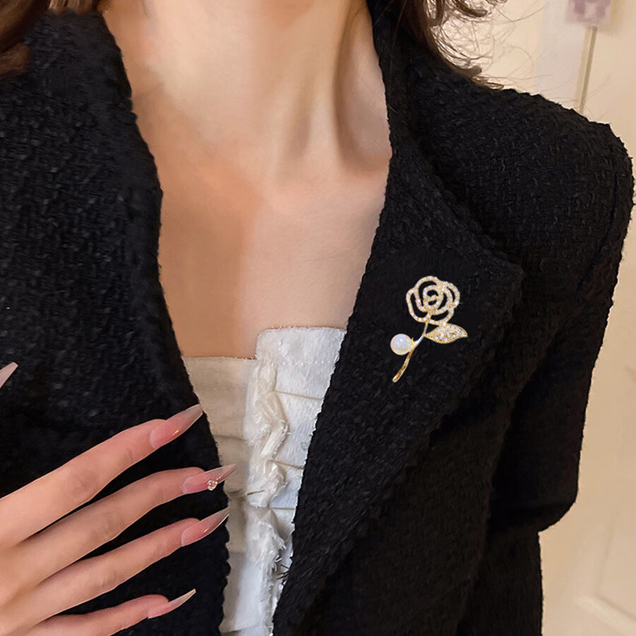 MiU Se Rose Brooch Feminine Imitation Pearl Coat Corsage Exquisite Diamond Suit Sweater Pin Accessory Rose Brooch 418# A11-203