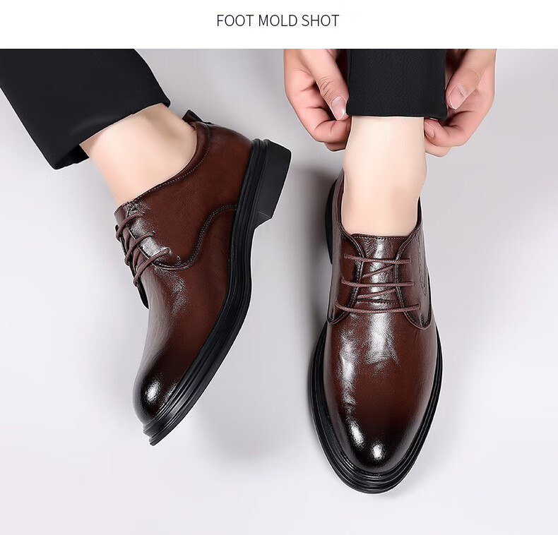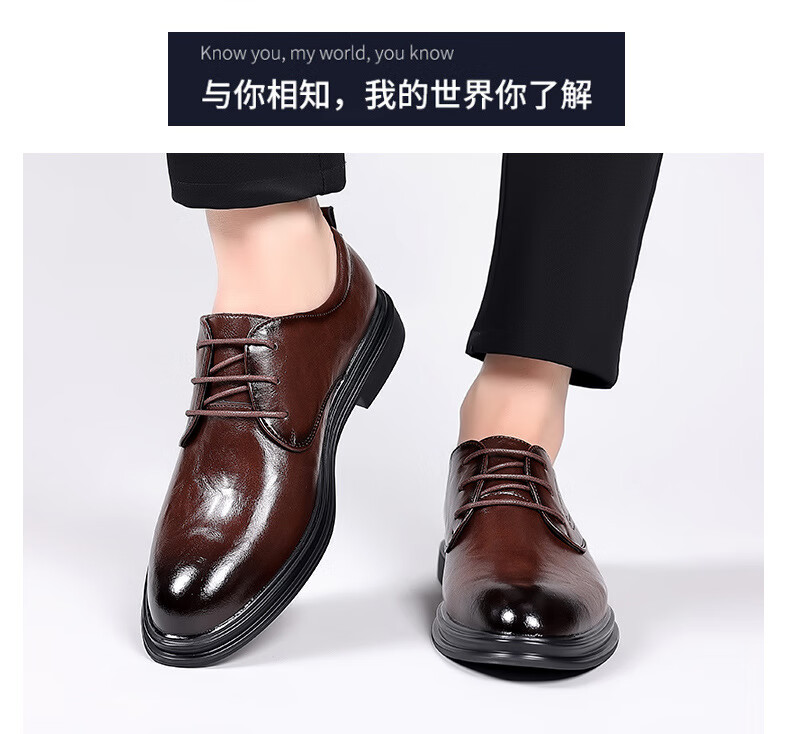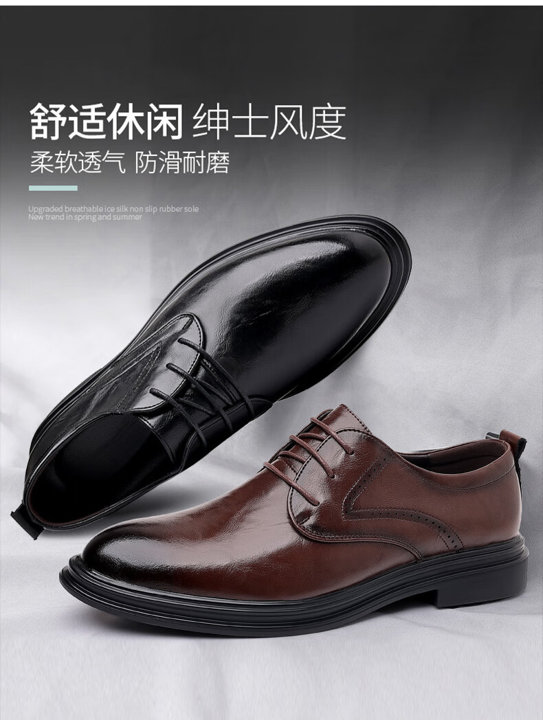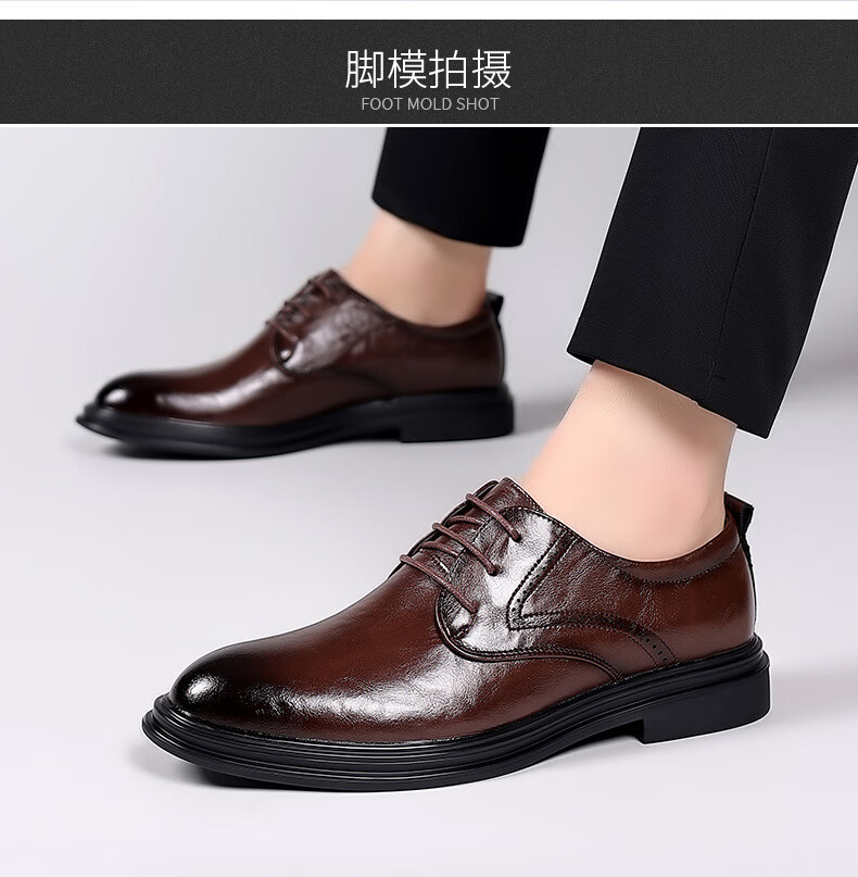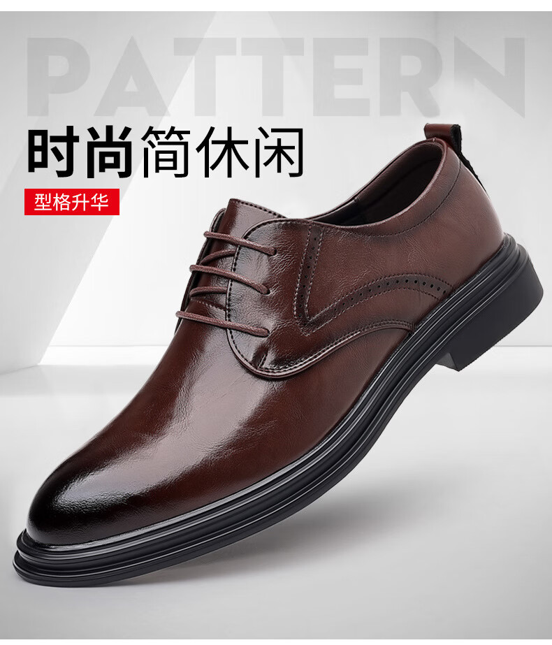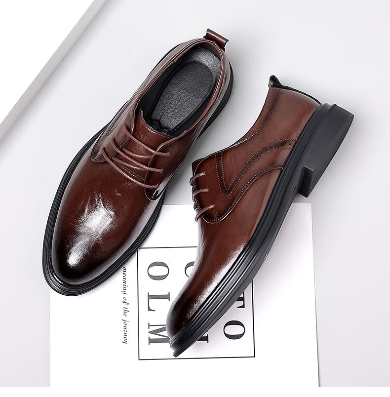 Woodpecker leather shoes men's new business formal cowhide casual spring and autumn breathable men's British Korean style pointed toe groom's wedding shoes four seasons brown (one size smaller) 42