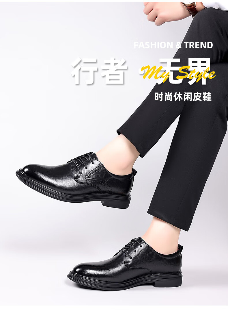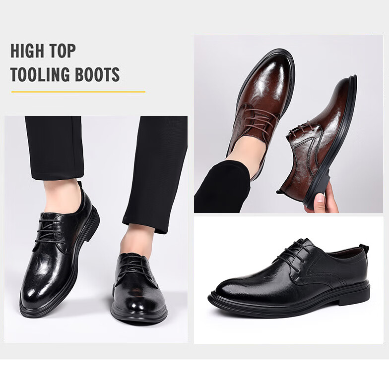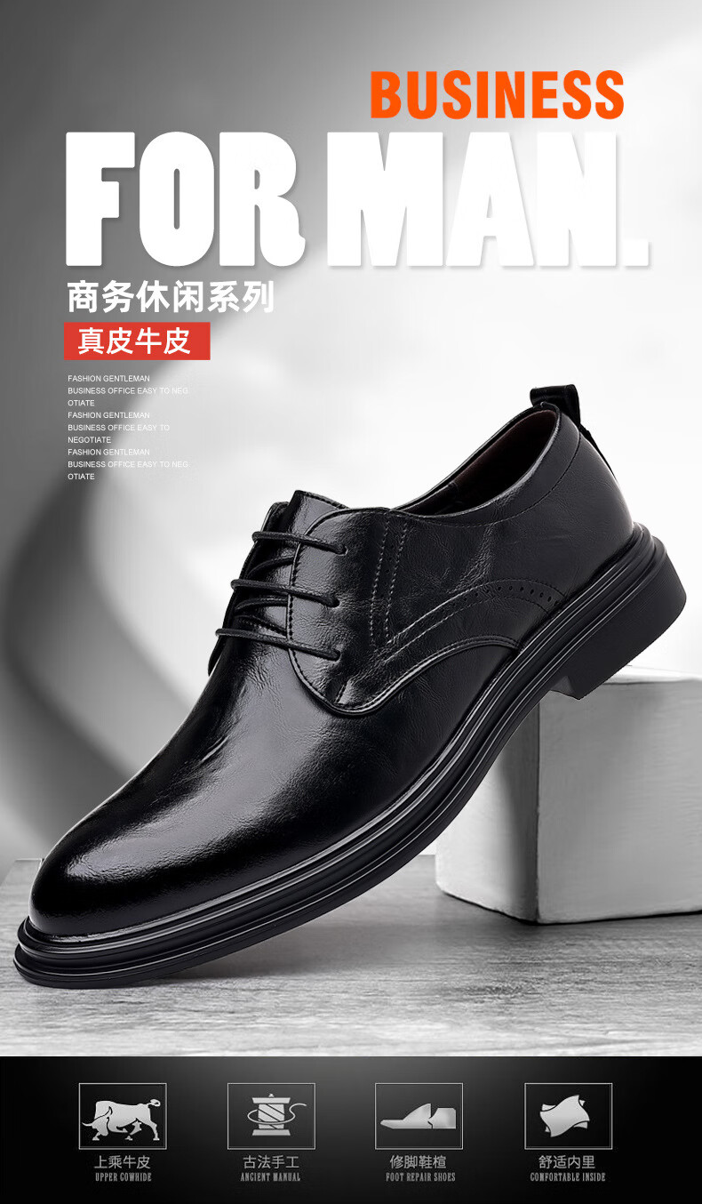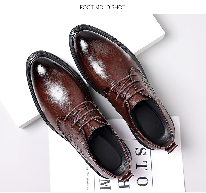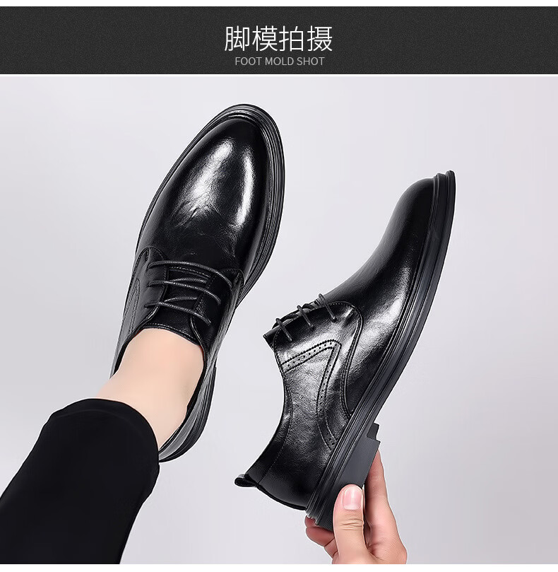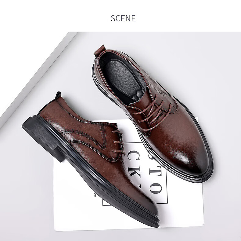 Woodpecker leather shoes men's new business formal cowhide casual spring and autumn breathable men's British Korean style pointed toe groom's wedding shoes four seasons brown (one size smaller) 42
