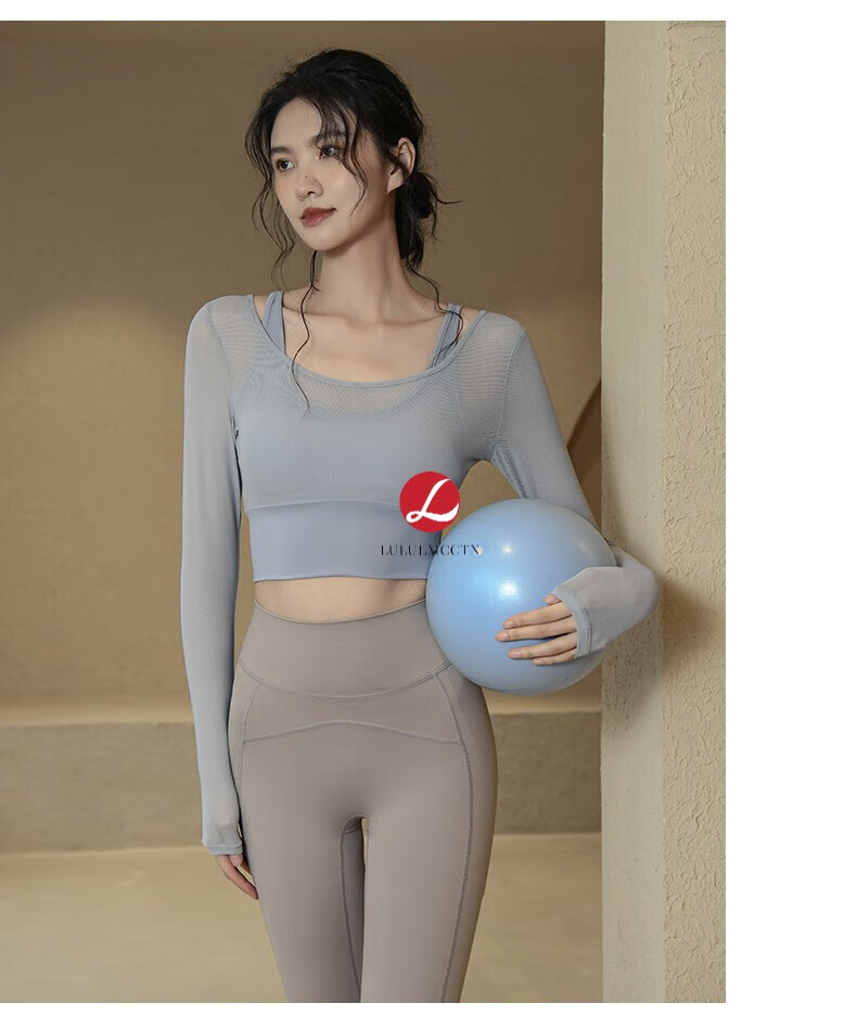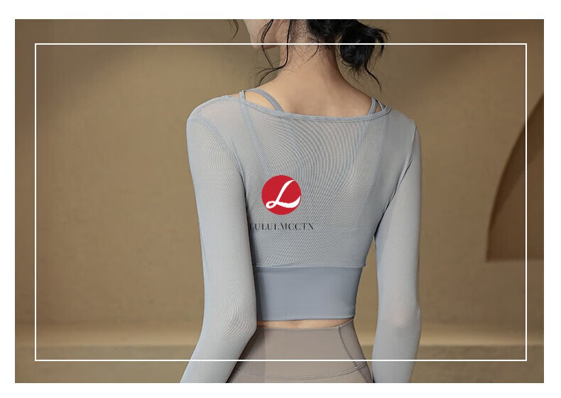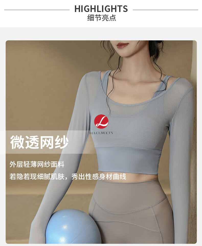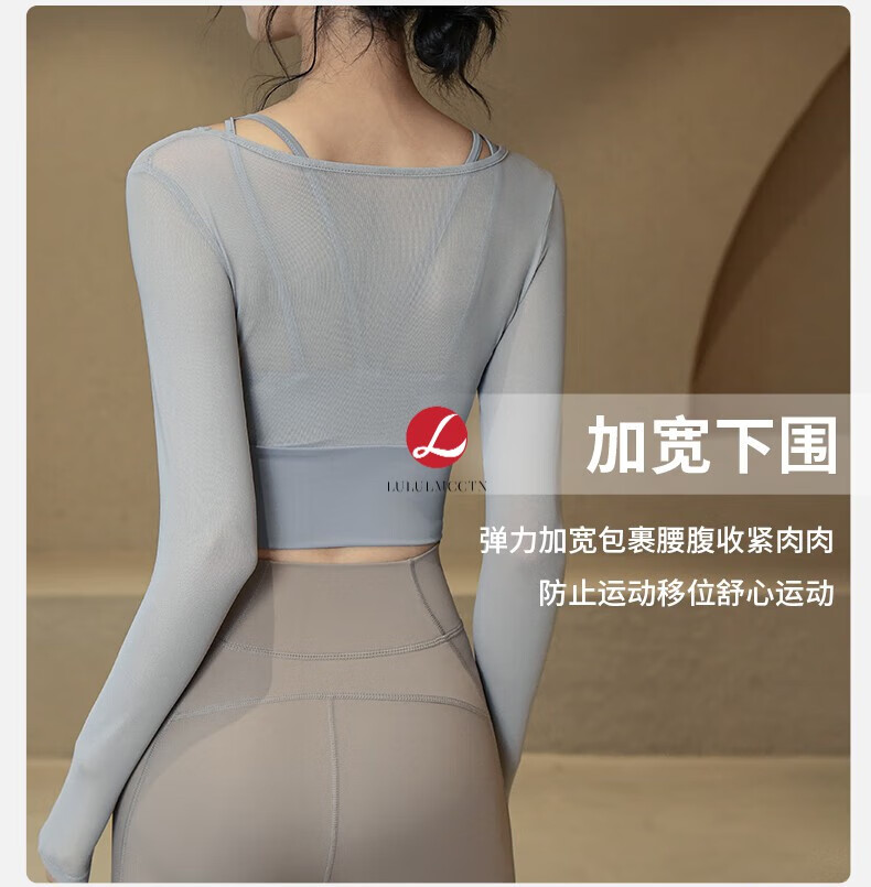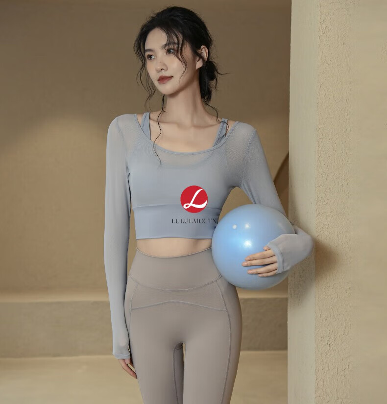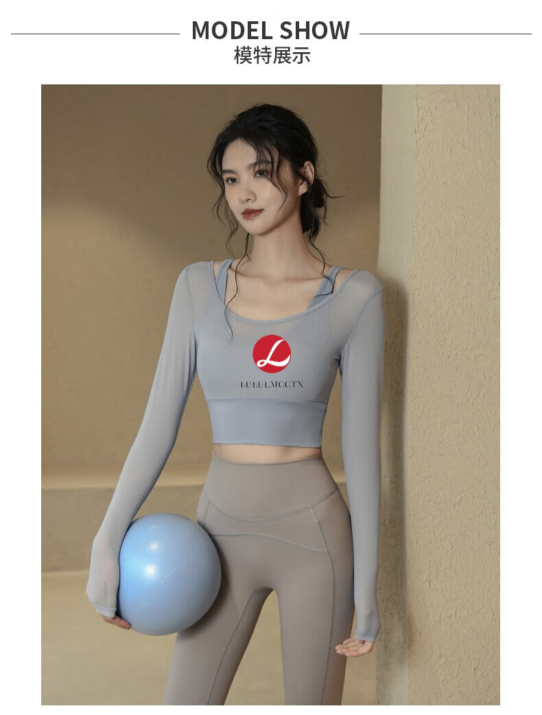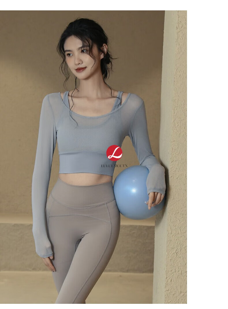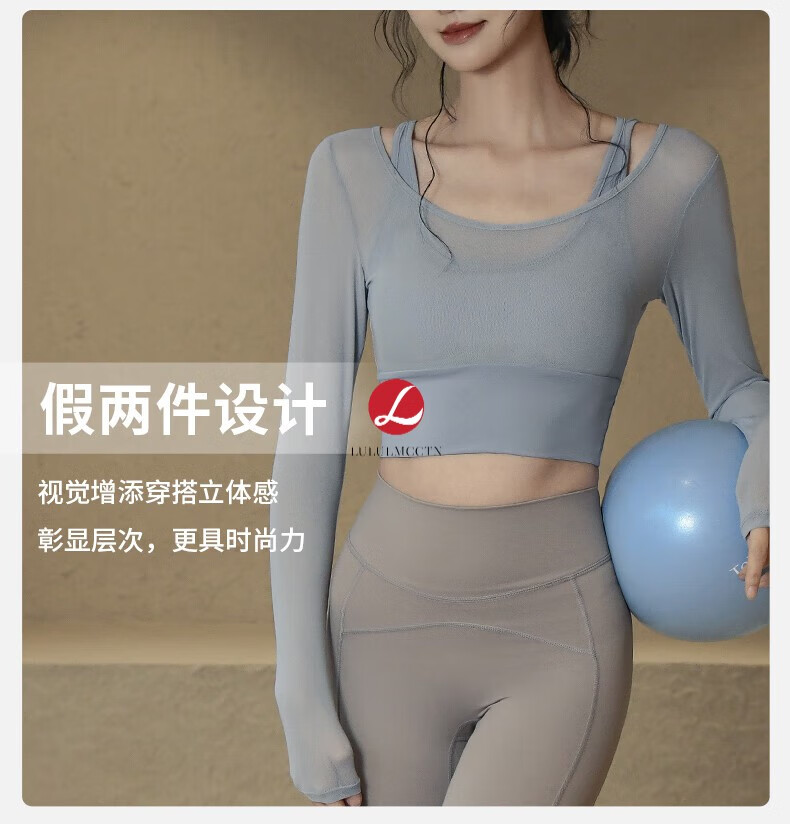LULULMCCTN fake two-piece yoga clothes for women, long-sleeved fitness sports tops with chest pads, Pilates training clothes, Anchor red M