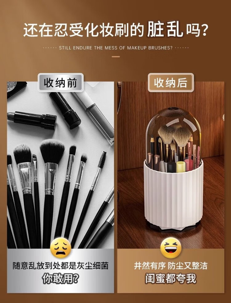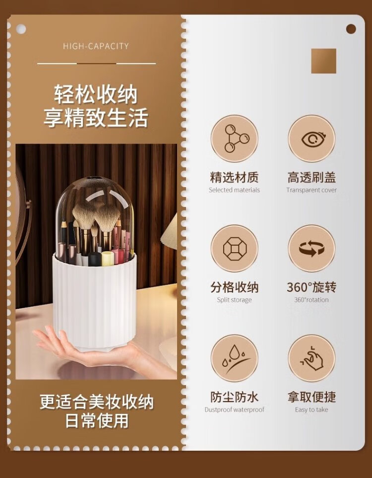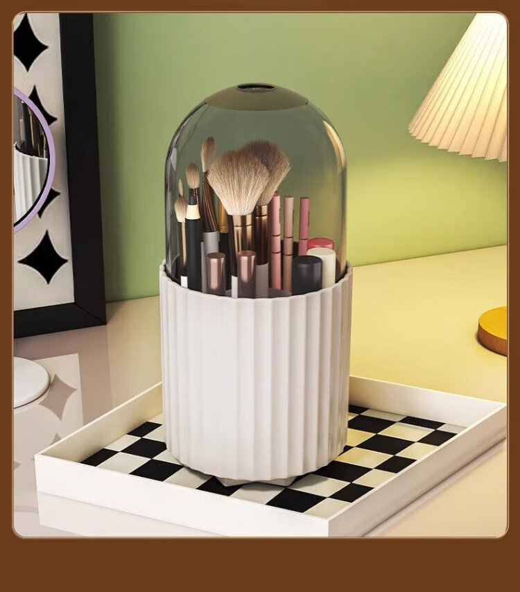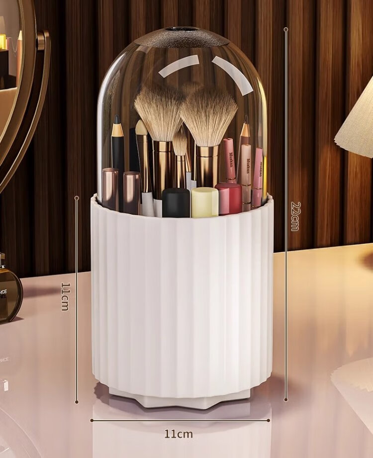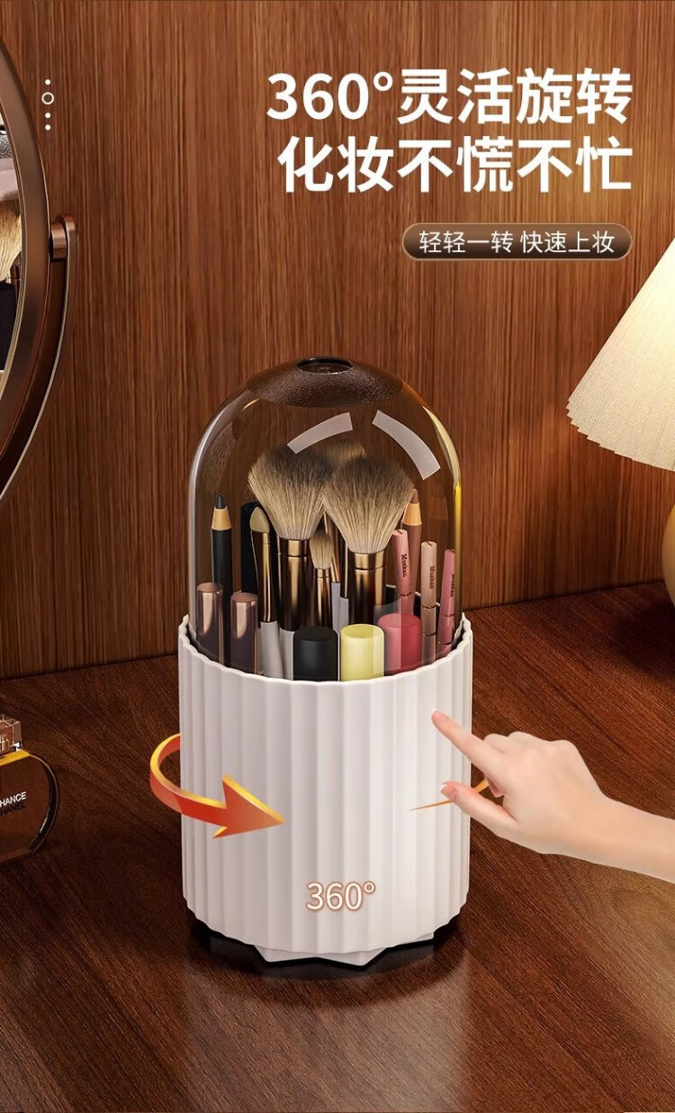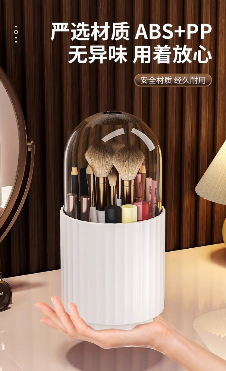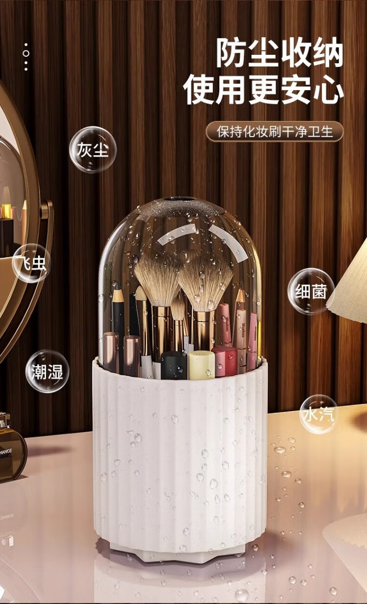 Mingzhi Yifan dust-proof makeup storage box eye shadow foundation lipstick pen holder dressing table product organizer desktop storage shelf makeup box cream white