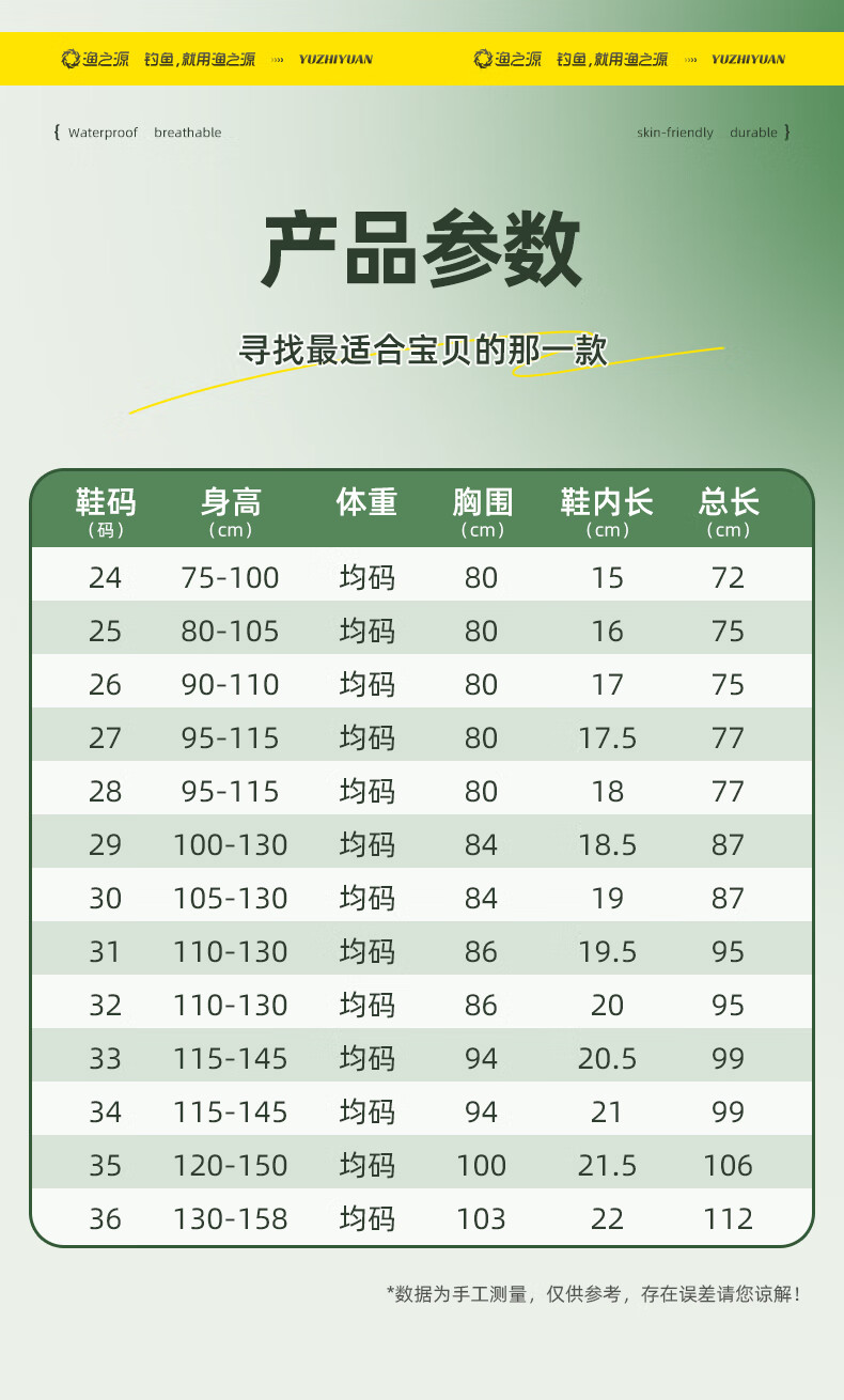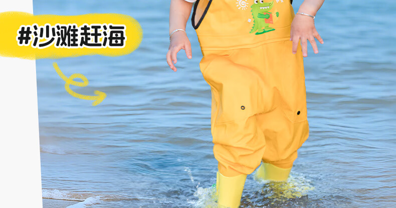 Yuzhiyuan children's sea equipment one-piece waders waterproof pants kindergarten sand and water clothes wading rain pants and rain boots all in one candy green - children's cartoon comfortable and breathable 23 (shoe inner length 14)