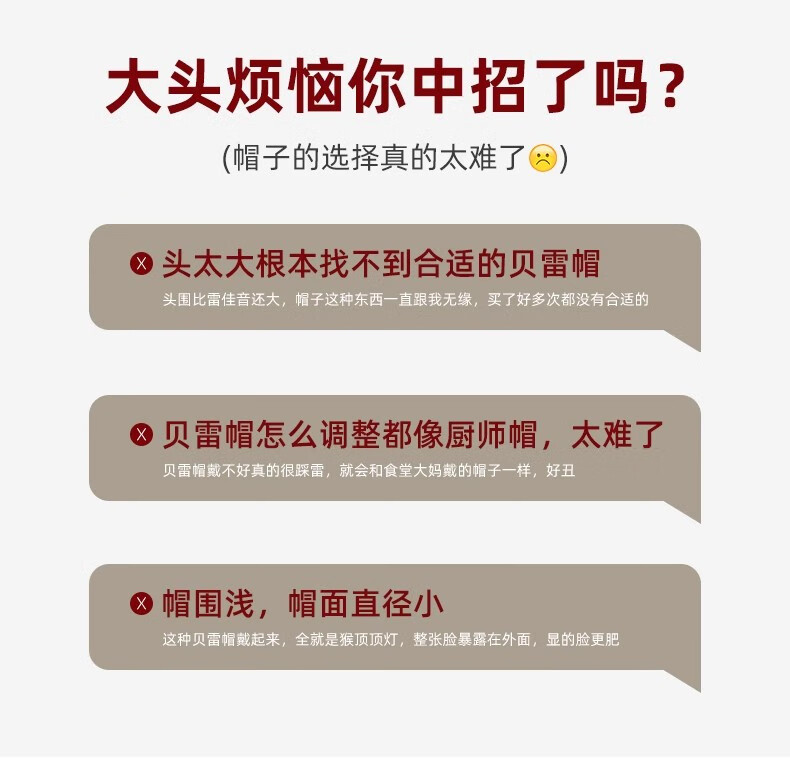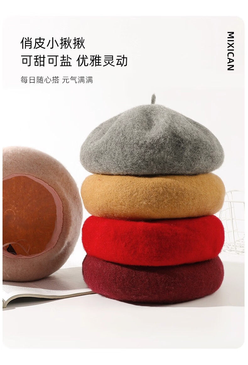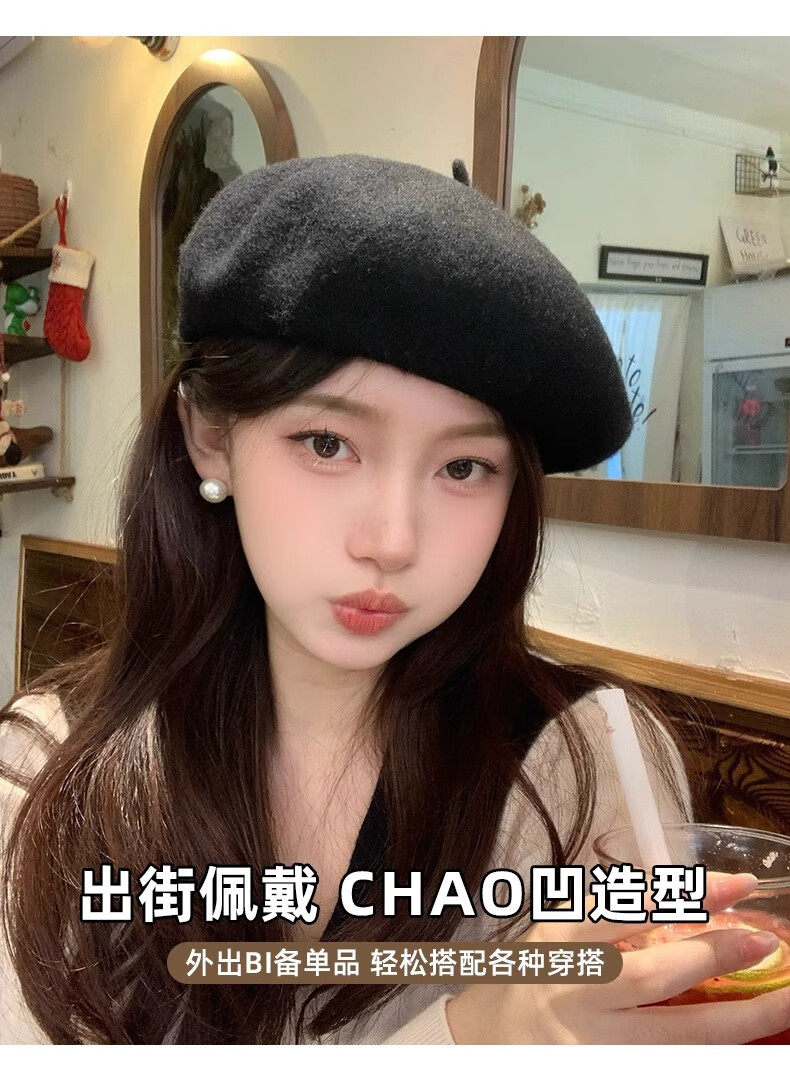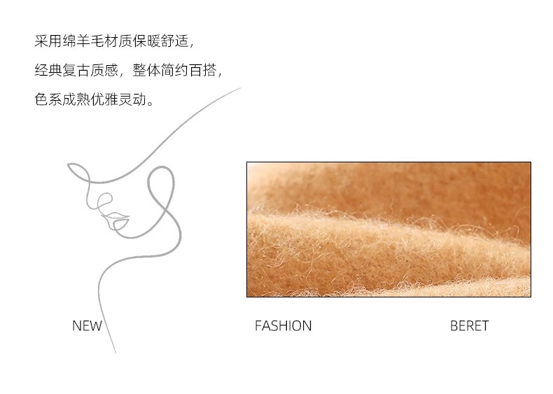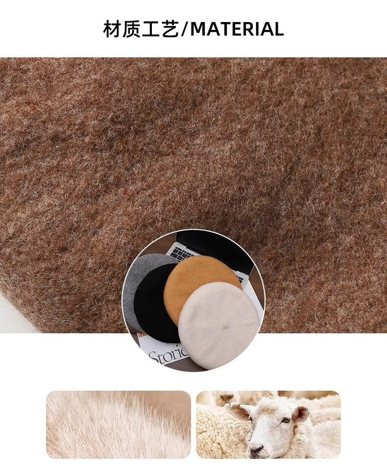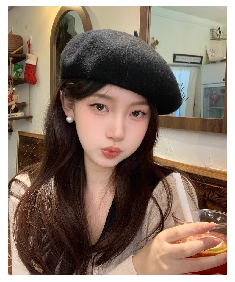 Scarecrow Beret 2024 Autumn and Winter New Wool Fashion Big Head Hat Retro Face-Showing Little Painter Hat Beige Milky White - Upgraded Big Head Circumference (Suitable for 56-62 Big Head Circumference) One Size