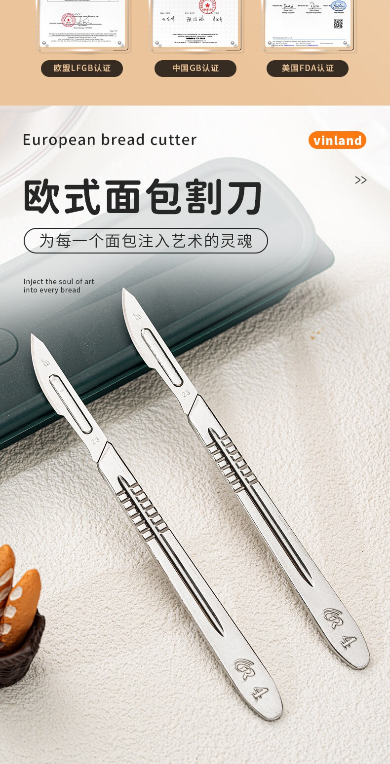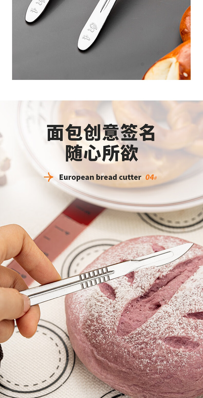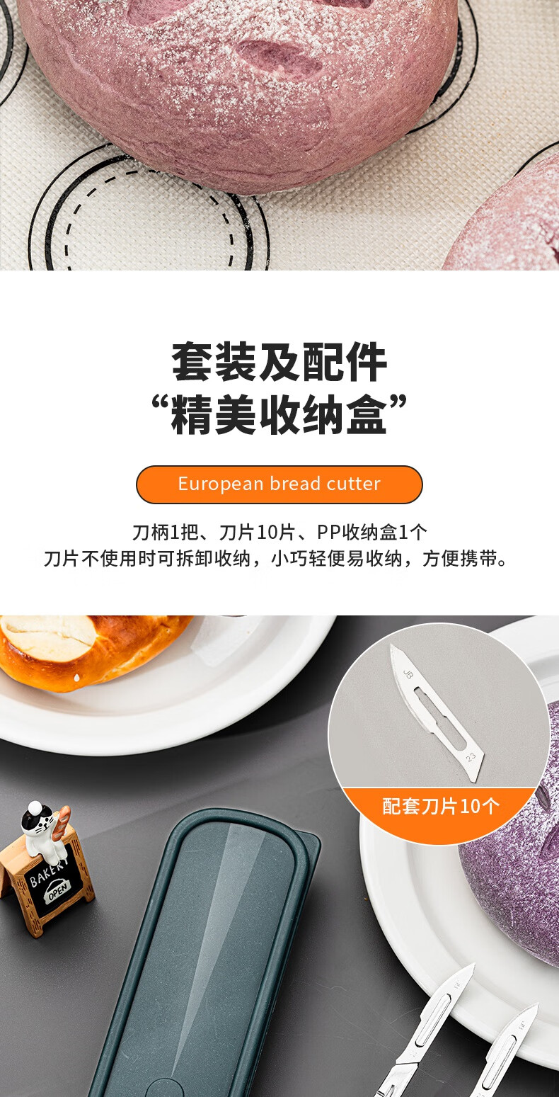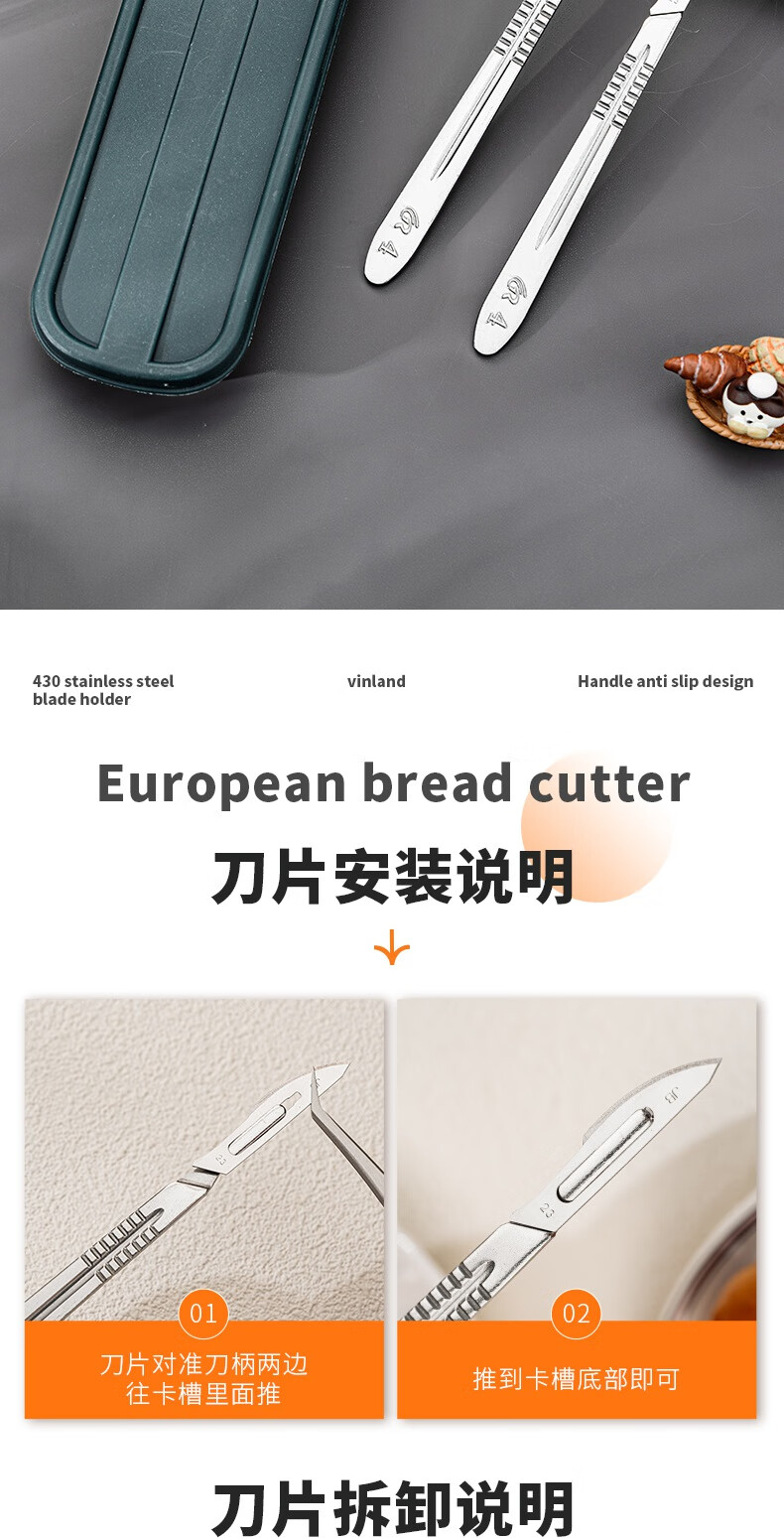 Vinland British bread cutter, baking bag cutting knife, scoring blade, special cutting blade for European bag cutting, alkali water bag baguette art baking, European bag cutting knife + storage box + 10 blades