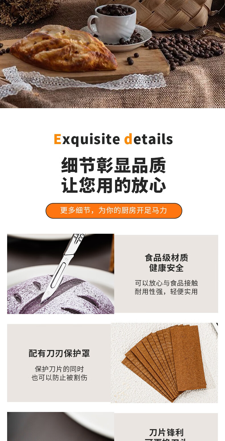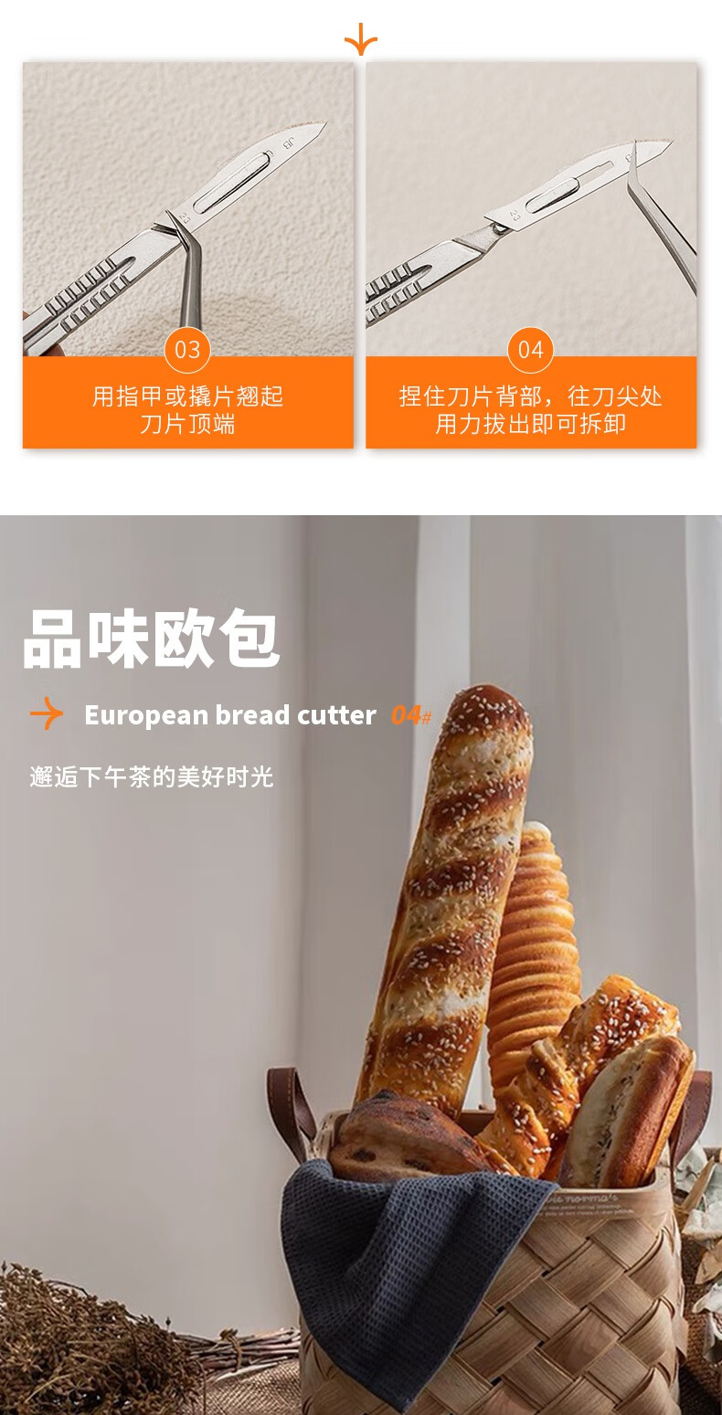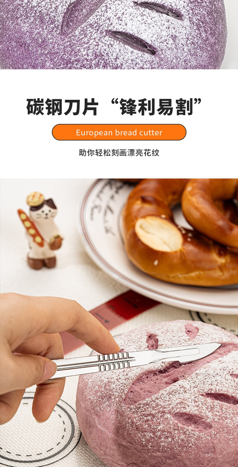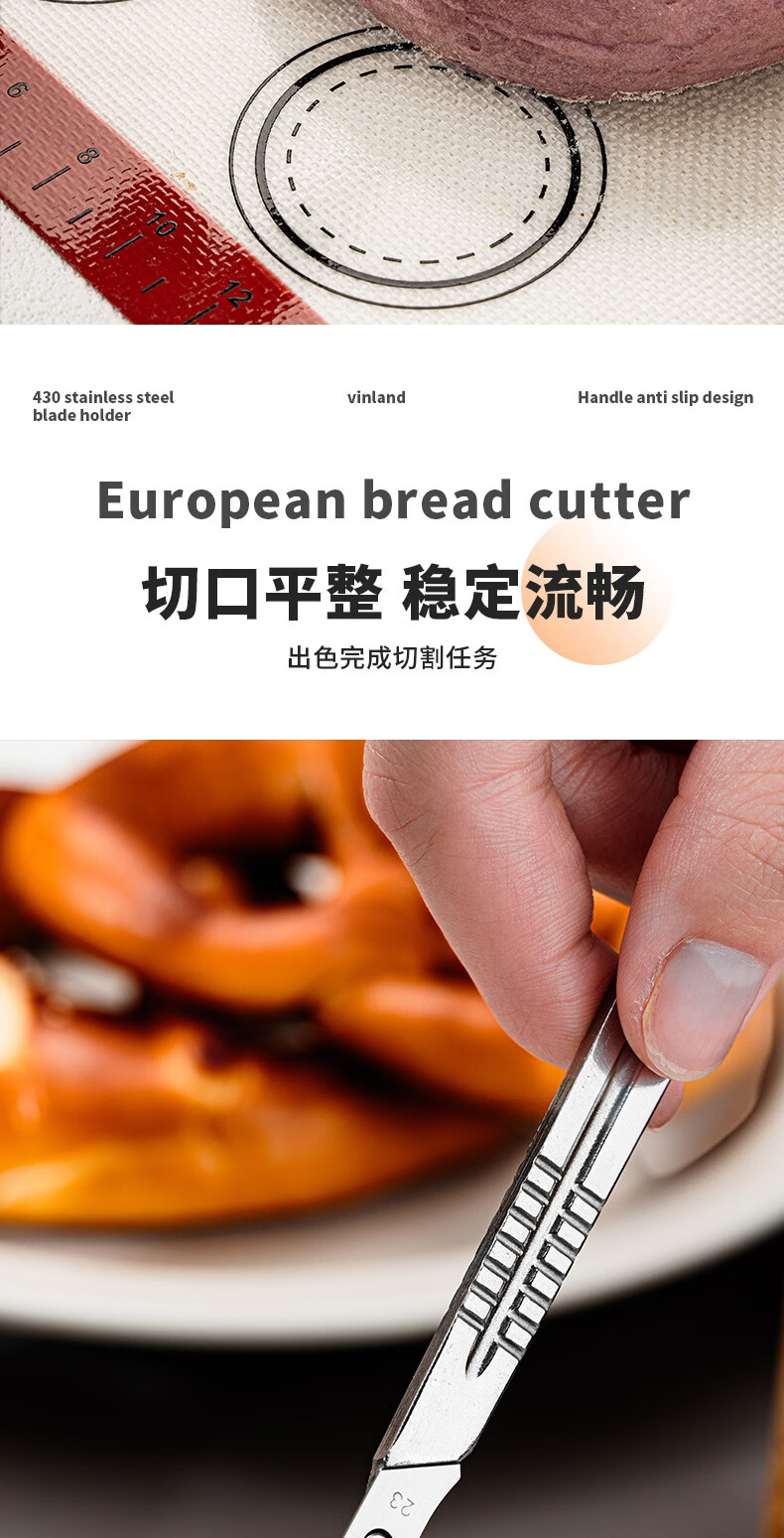 Vinland British bread cutter, baking bag cutting knife, scoring blade, special cutting blade for European bag cutting, alkali water bag baguette art baking, European bag cutting knife + storage box + 10 blades
