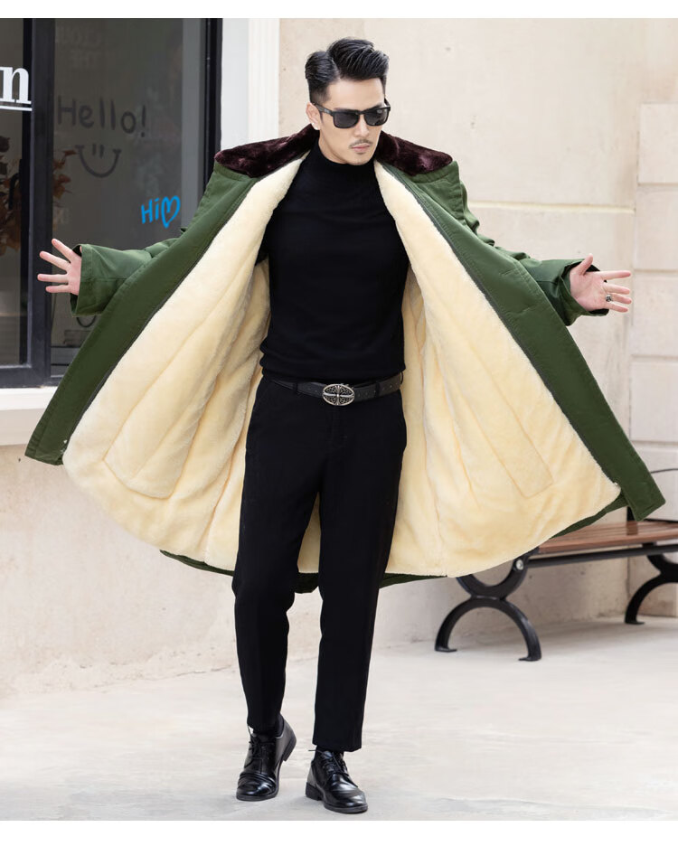 Yusa's new winter military coat, thickened with velvet and warm, green Northeastern cotton jacket, men's labor protection cold storage cold-proof clothing, new upgraded Xinjiang polar velvet military coat - thickened and warmer, one size fits all/suitable for weight 120-190Jin Jin is equal to 0.5kg