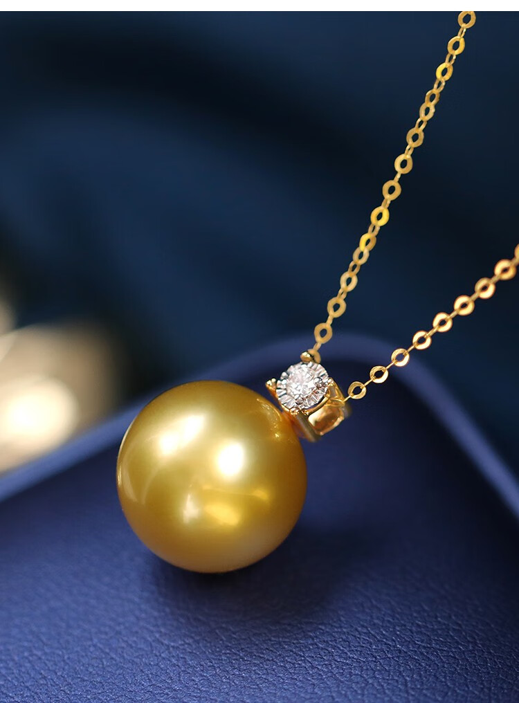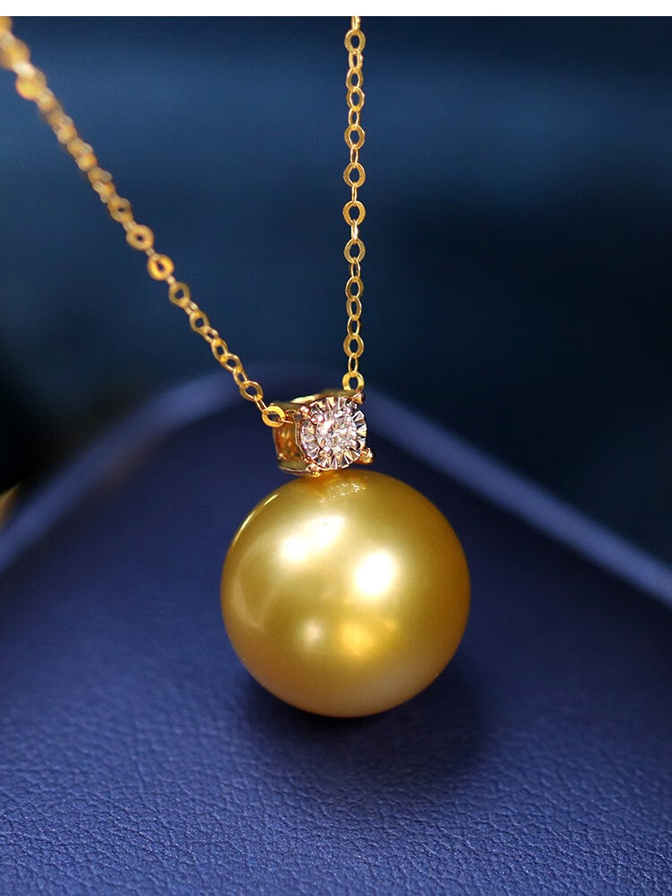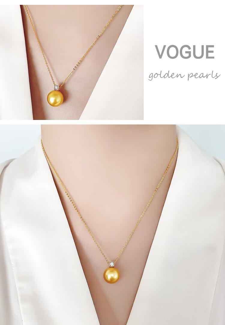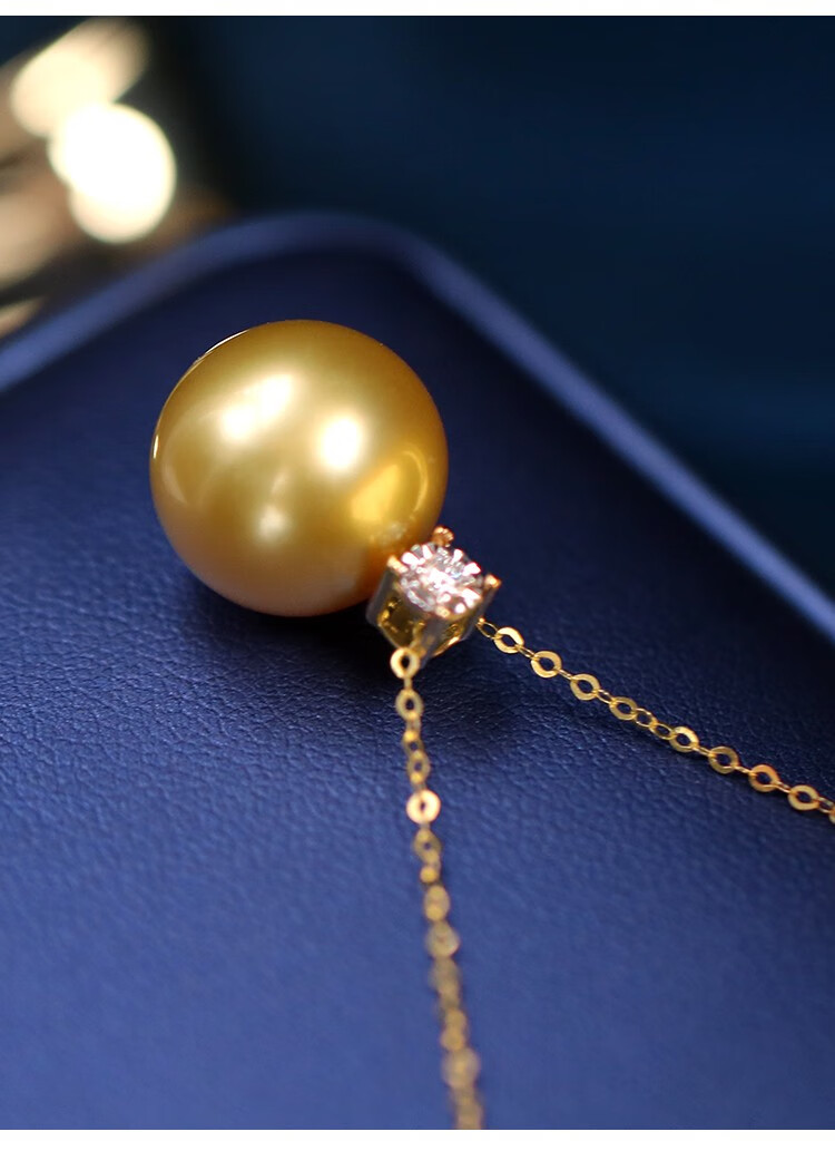 Princess Libiao 18K gold South Sea gold bead pendant round strong light seawater pearl pendant single women's gift for wife 9-10mm