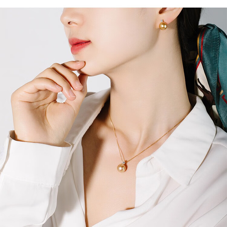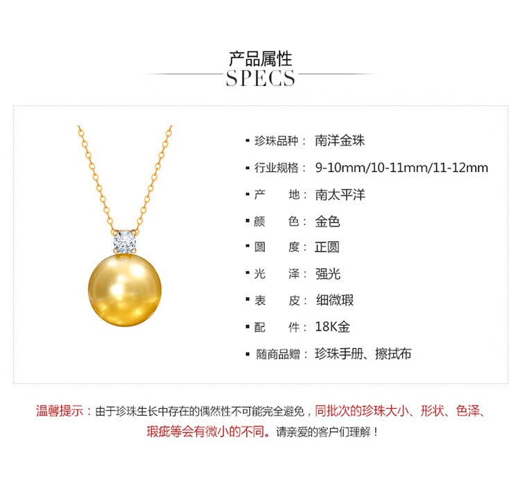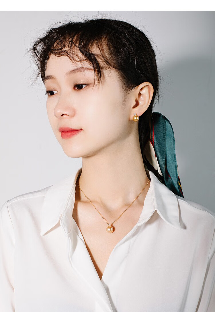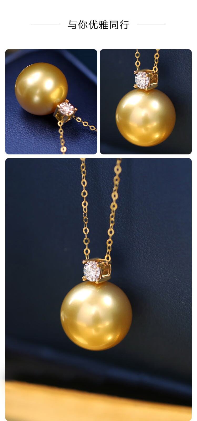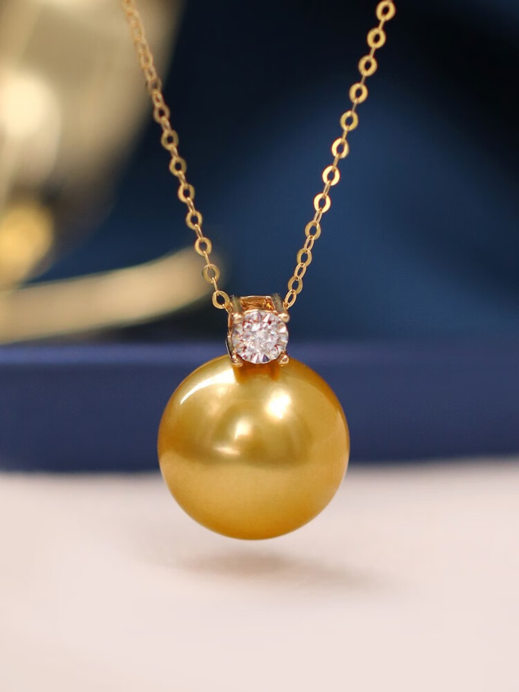 Princess Libiao 18K gold South Sea gold bead pendant round strong light seawater pearl pendant single women's gift for wife 9-10mm