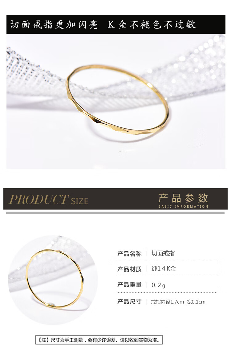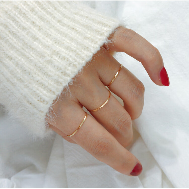 Qianjun simple K gold ring for women extremely fine and ultra-fine flower tail ring ring ring gift for women thick 1.0mm women's size 18