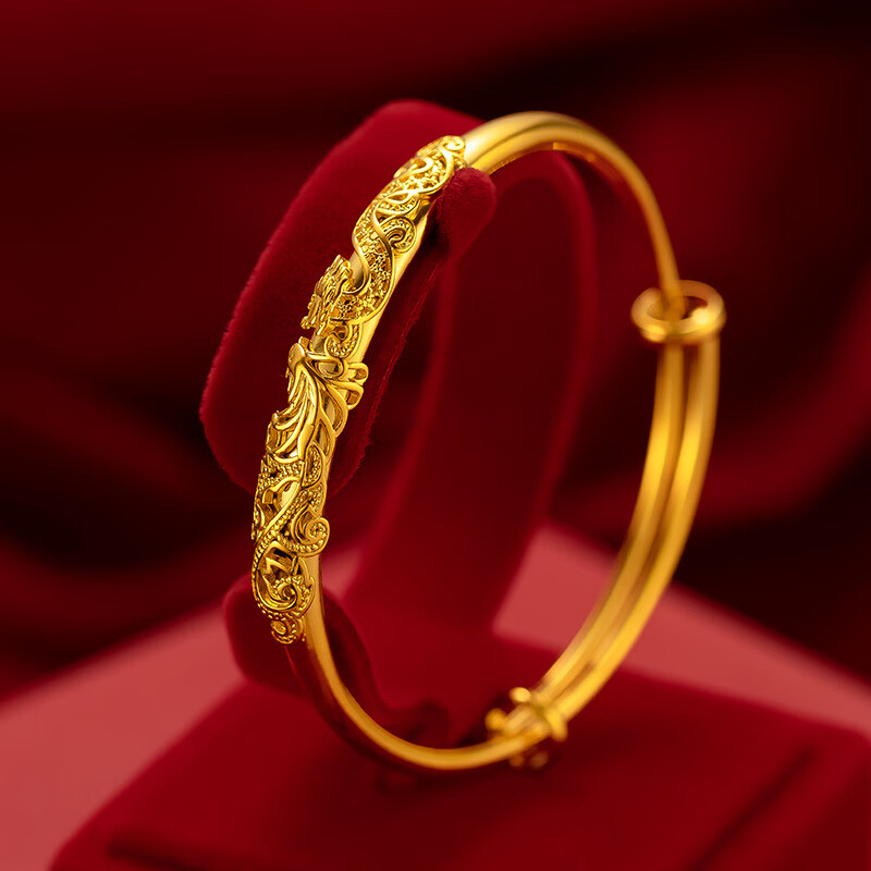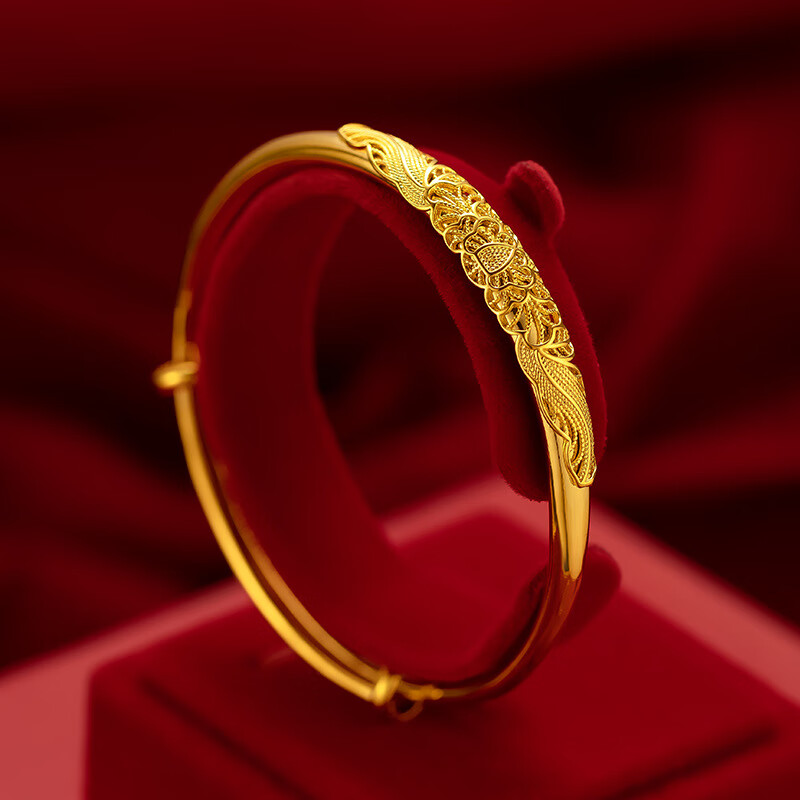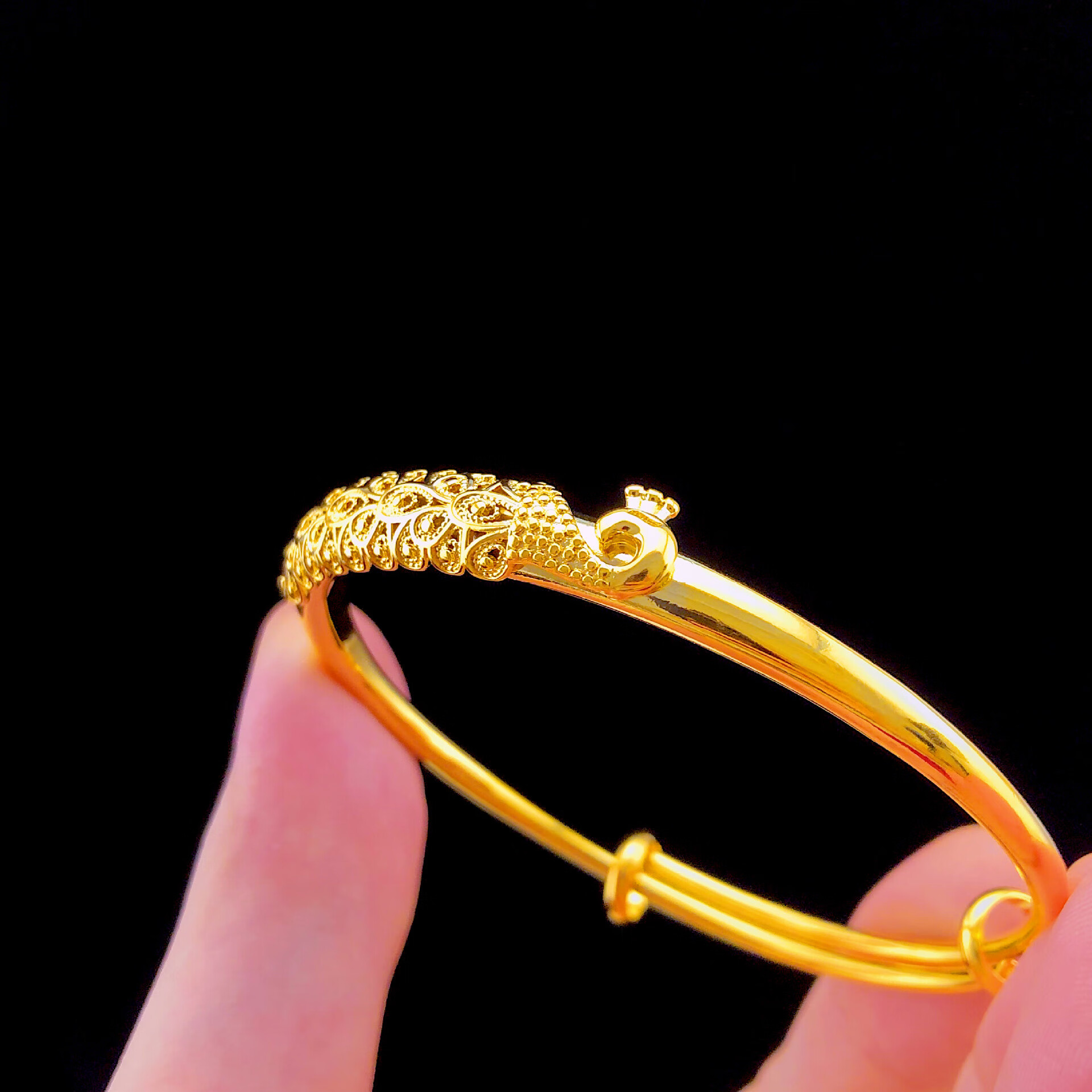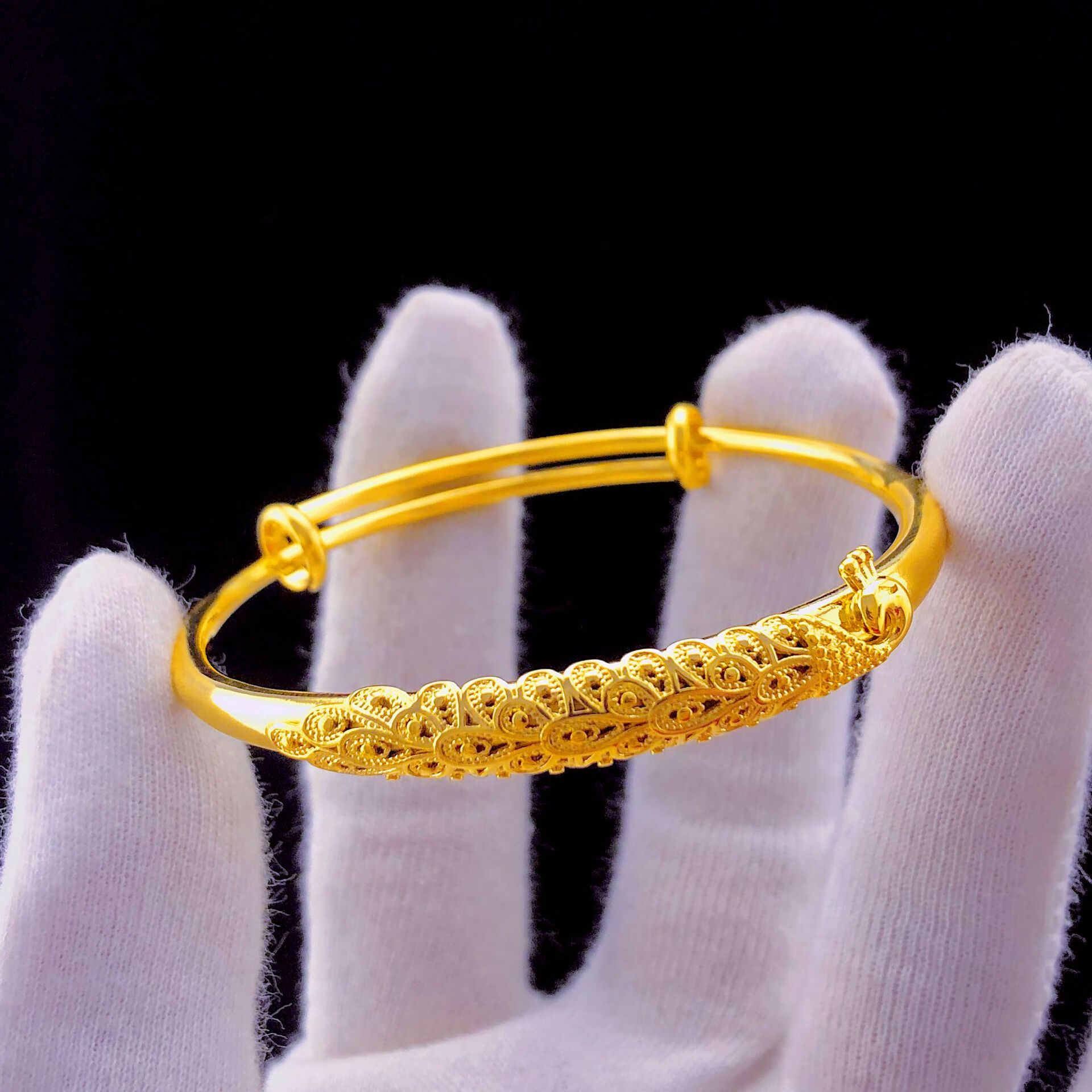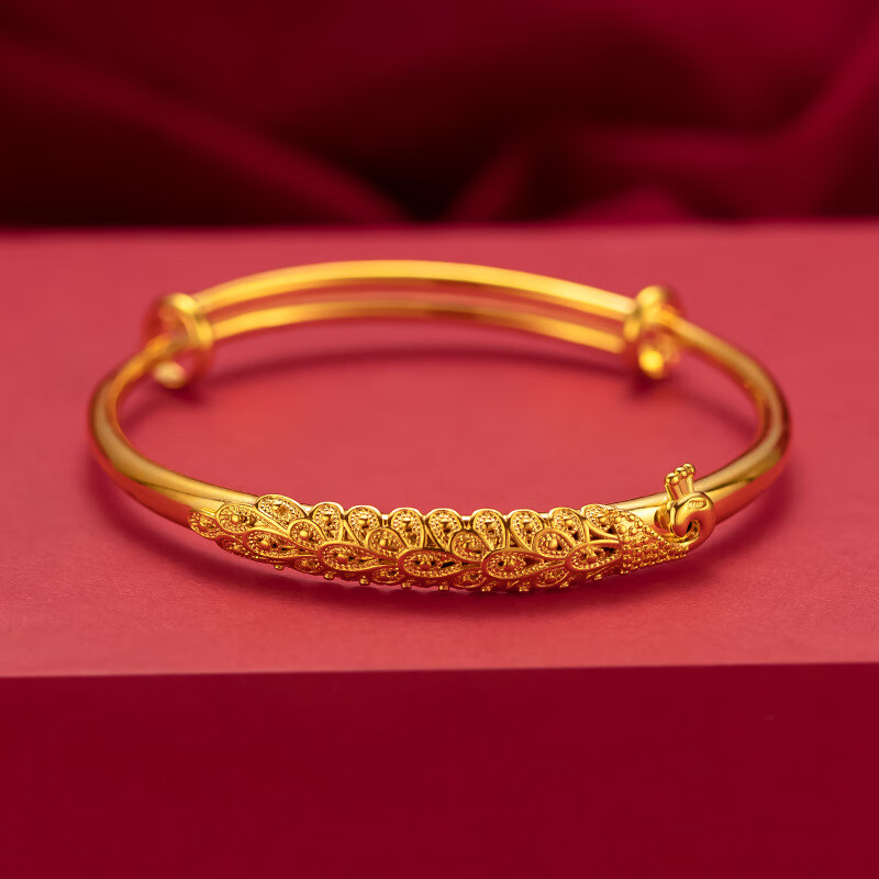 Qianjun Jewelry 18K women's peacock bracelet gold push-pull adjustable ancient bracelet peacock push-pull bracelet