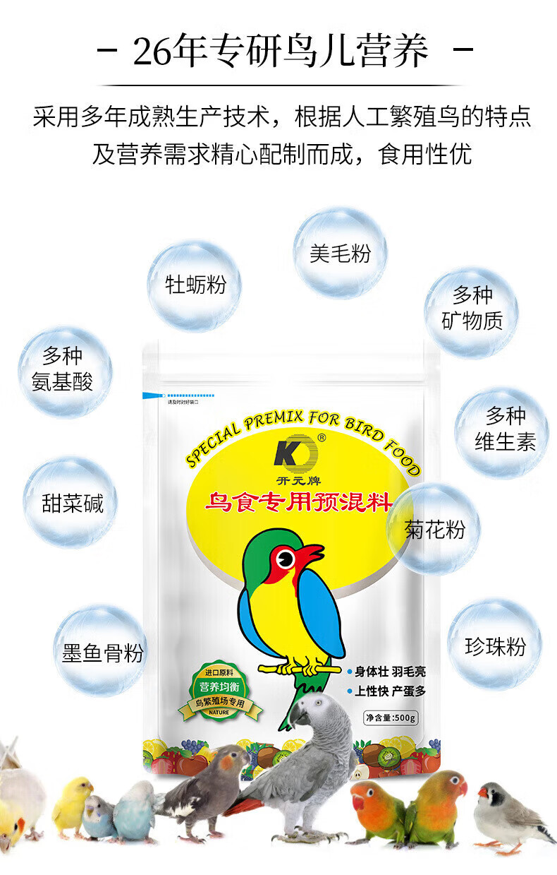 Kaiyuan (KO) bird food special premix bird feed nutritional powder amino acid feather beautiful hair hair aid powder 500g 1 bottle / bag