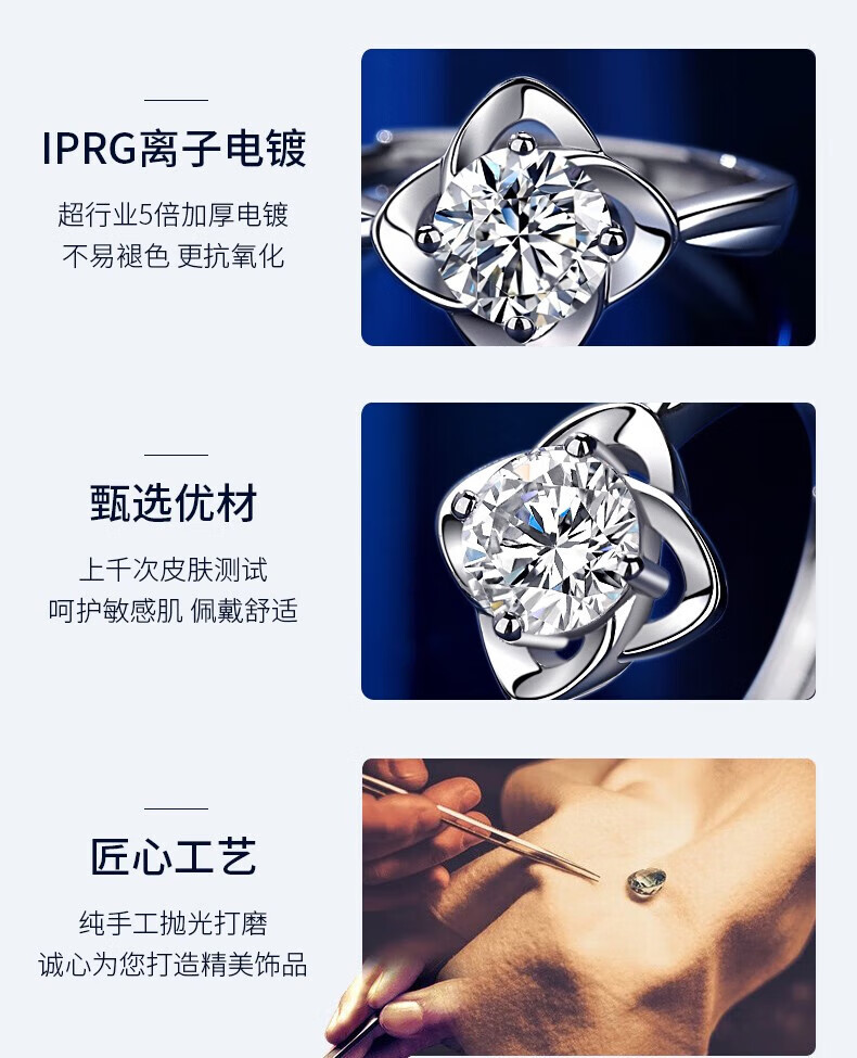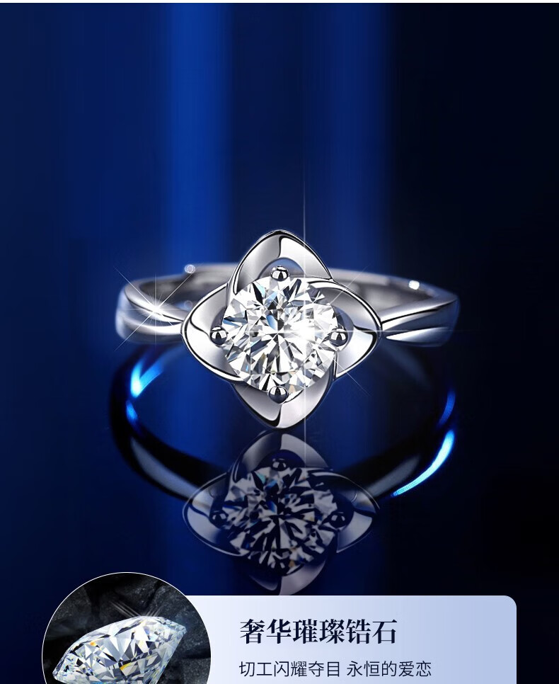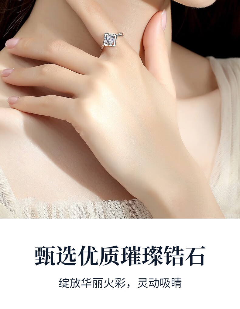 Lao Fengxiang four-leaf clover sterling silver ring women's proposal diamond ring wedding anniversary gift for girlfriend and wife anniversary nearby delivery / local warehouse * eternal four-leaf clover ring