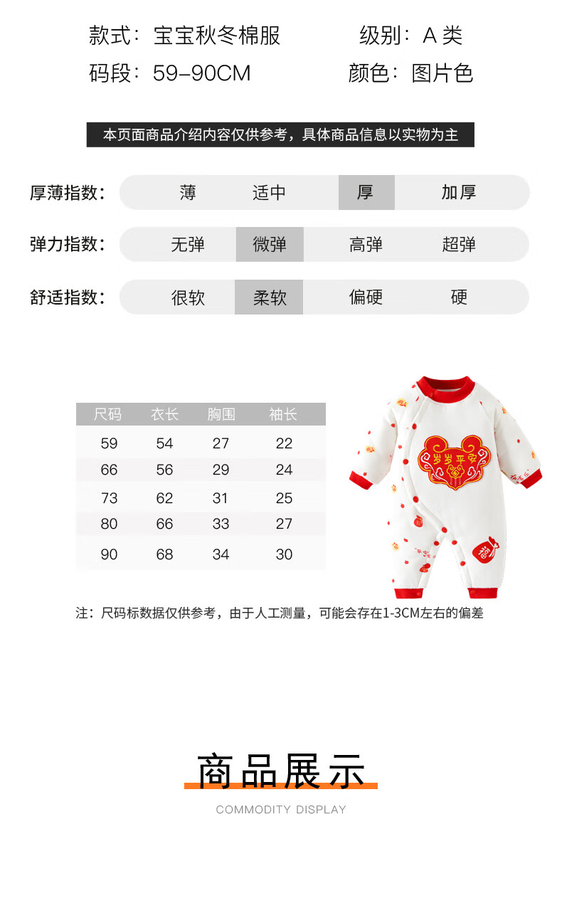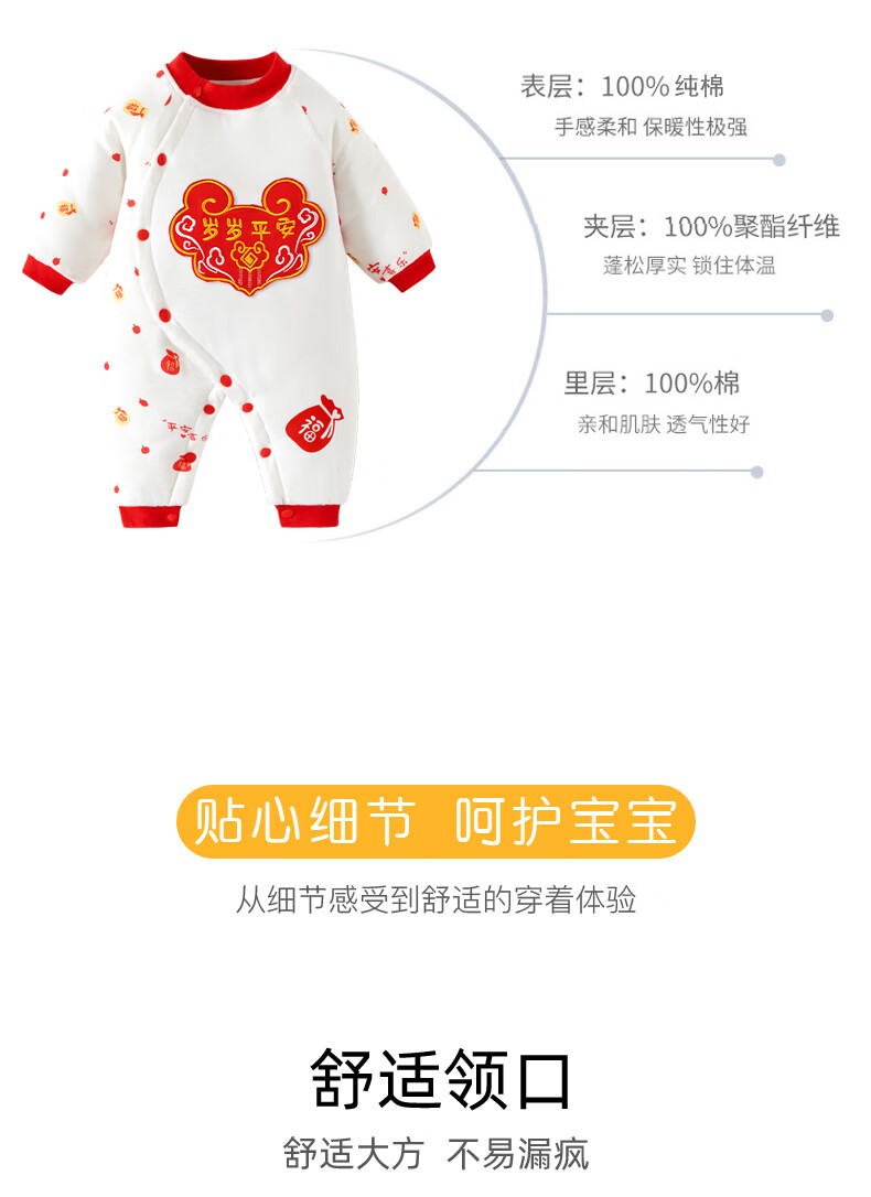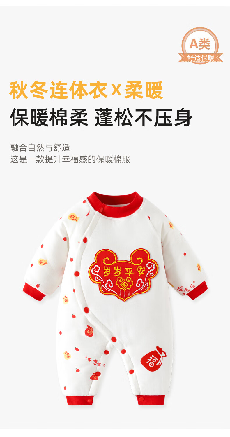 Didi Bear Diary (DIDIXIONGRIJI) baby clothes, winter quilted thick cotton clothes, newborn full-month clothes, baby one-piece clothes for the Year of the Dragon, autumn and winter clothes, thin cotton, safe every year, 59cm, suitable for weight 10Jin, Jin is equal to 0.5kg.