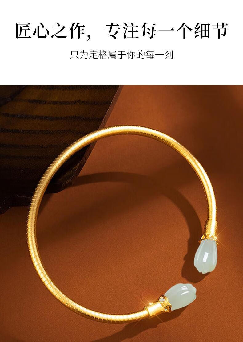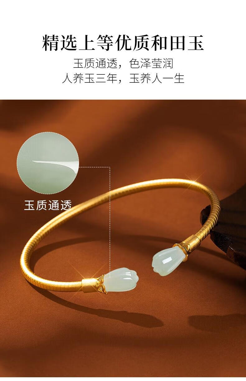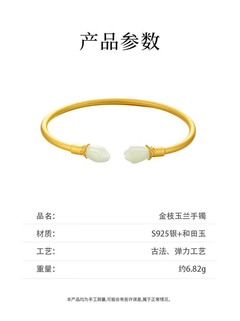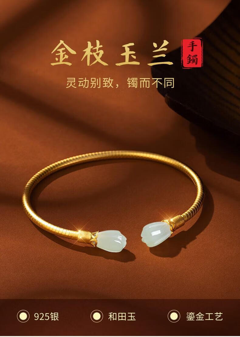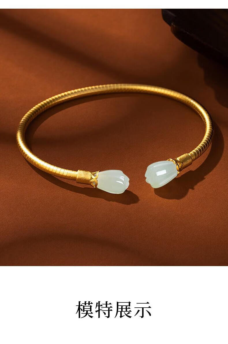 Qianjun Hotan Jade Bracelet Women's Silver Bracelet Ancient Gold Bracelet Jewelry Memorial Day Valentine's Day Birthday Gift for Wife Hotan Jade Golden Branch Magnolia Bracelet Necklace