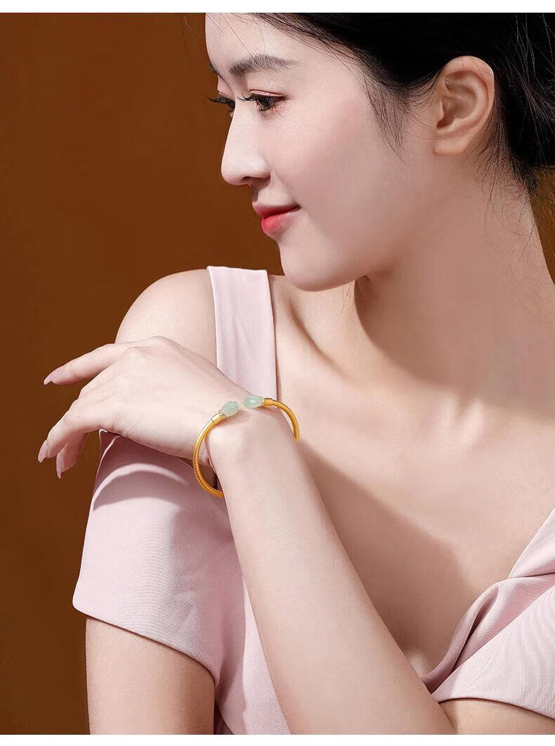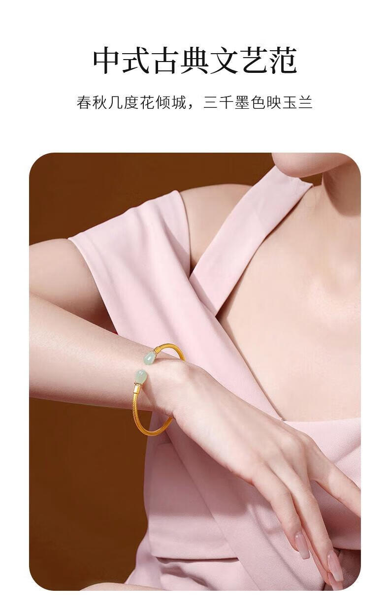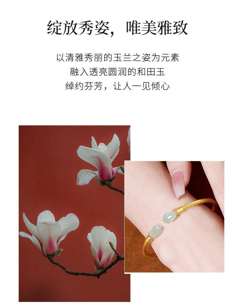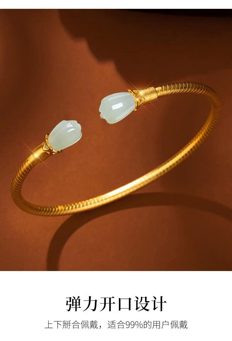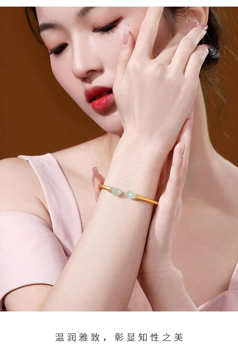Qianjun Hotan Jade Bracelet Women's Silver Bracelet Ancient Gold Bracelet Jewelry Memorial Day Valentine's Day Birthday Gift for Wife Hotan Jade Golden Branch Magnolia Bracelet Necklace