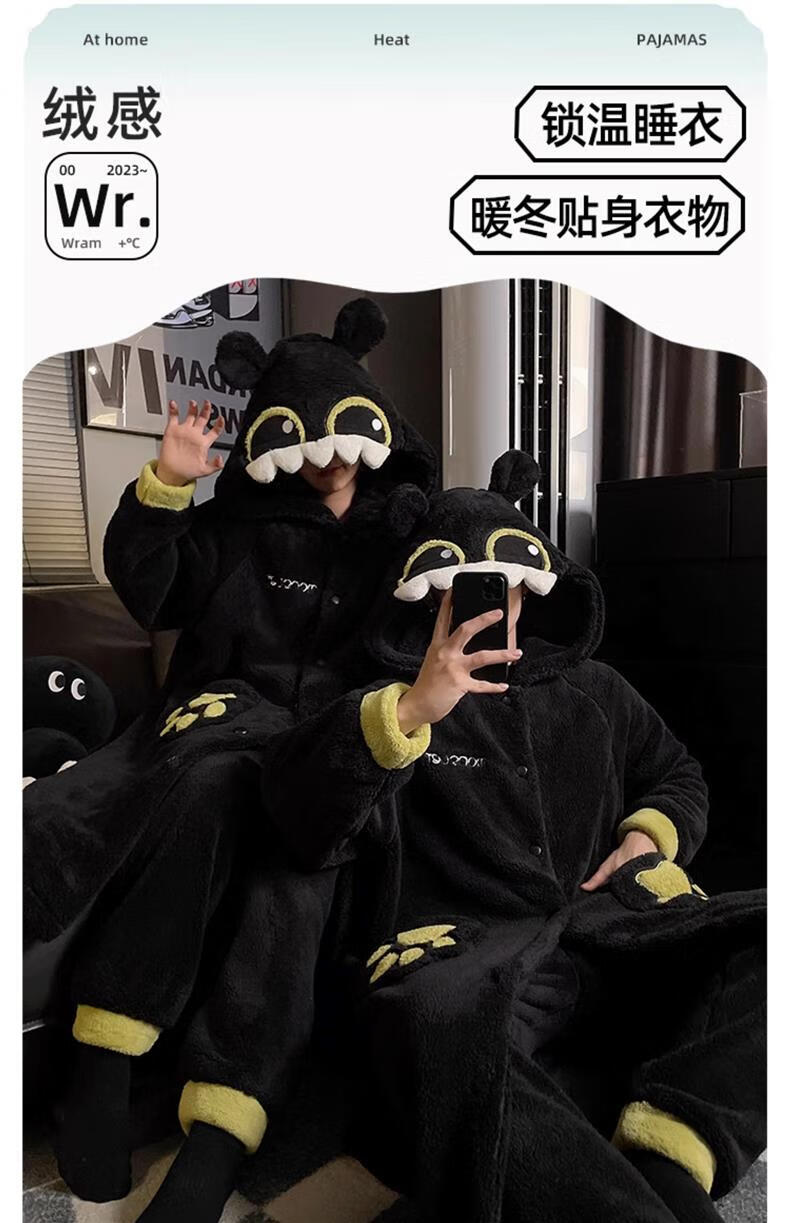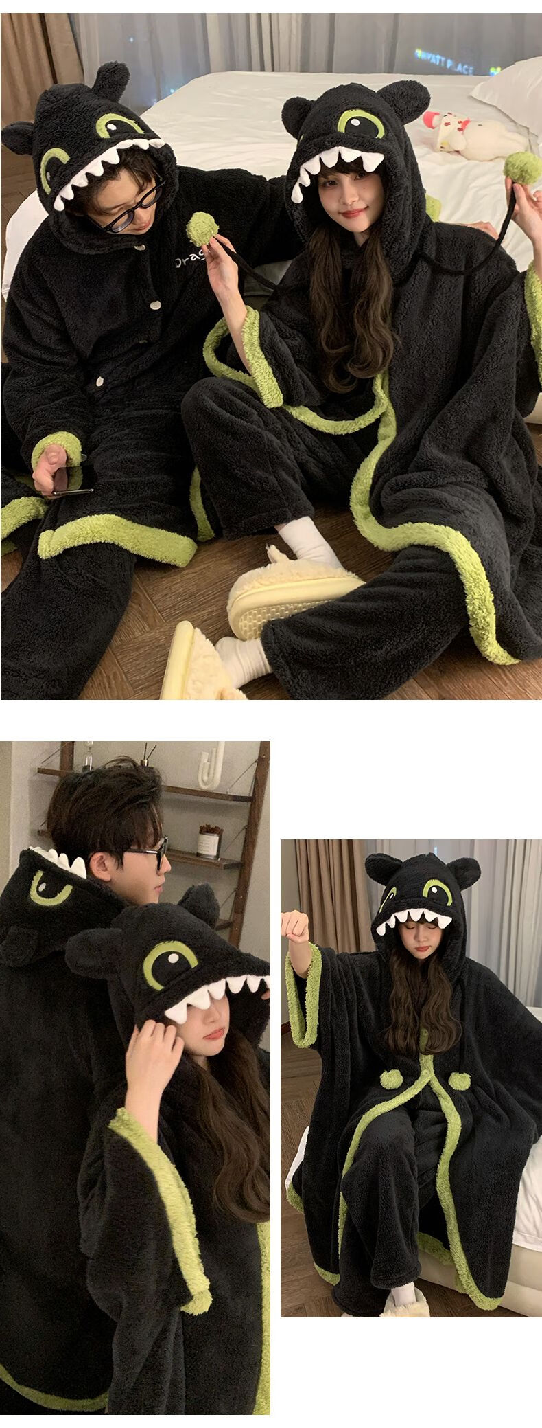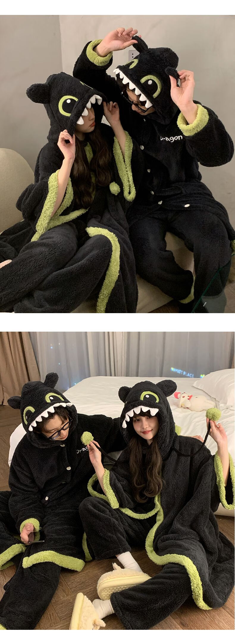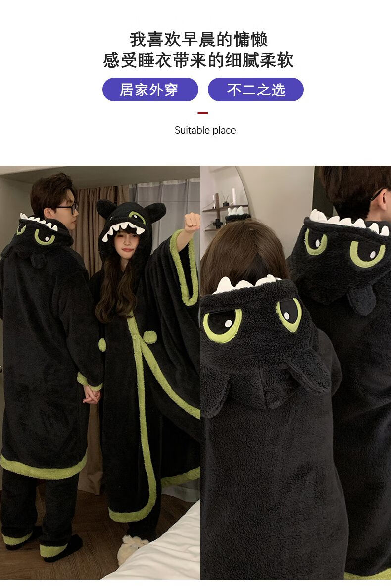 Toothless pajamas couple's pajamas women's autumn and winter coral velvet thickened flannel men's black home clothes winter nightgown + pants #66745 (girls are the wide-sleeved version) 66319 2XL male (weight 145-170